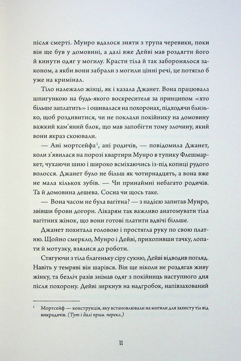 Гейзел — наречена майбутнього віконта, якій кортить стати хірургом більше, ніж вдало вийти заміж. Джек — викрадач трупів, який просто намагається вижити в місті, де так легко померти. Їхня випадкова зустріч відкриває для Гейзел нові можливості: вивчати анатомію не за підручниками, а на практиці й нарешті потрапити на курс до найвидатнішого хірурга країни, доктора Бічема.