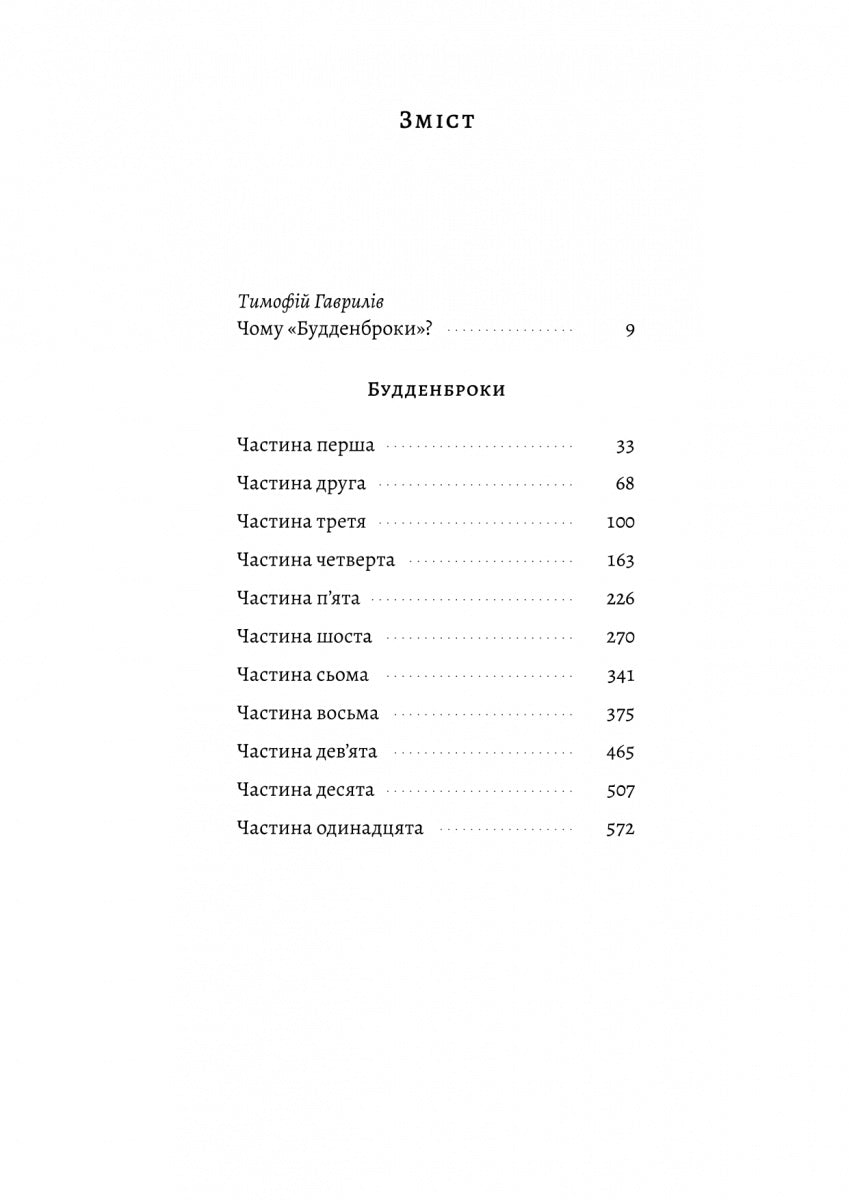 Легендарна сага, удостоєна Нобелівської премії з літератури, майстерний і філігранно виписаний портрет сім’ї на фоні історичної епохи. Ця фамілія мала втілювати німецькі чесноти, однак вони народилися Будденброками — життя заборгувало їм від початку. Кохання і зради, боротьба і заздрощі, несамовита пристрасть і пекуча ненависть трьох поколінь клану — від владного патріарха Йоганна Будденброка до його онуків, не здатних втриматися від спокуси забороненого плоду, який їм пропонує світ.