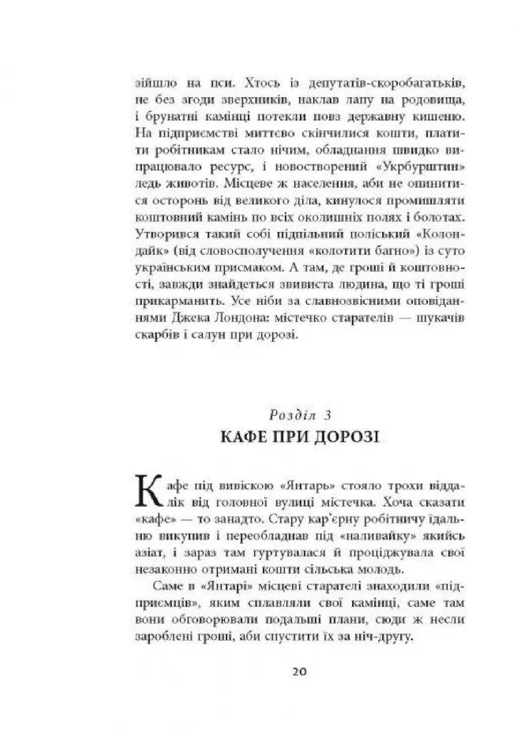У книзі йдеться про те, як бурштинова лихоманка впливає на людей, як матері забувають про дітей, чоловіки – про дружин, і всі забувають про людське у собі, підгодовуючи своїх внутрішніх демонів. Автор вважає, що без містики тут не обійшлося та розповідає про стародавніх українських духів, які мешкають у лісах і понині та ваблять людей “сонячним каменем” та затягують у свої тенета... Але є у книзі і жорстока реальність. Продажні копи, небезпечна мафія і звичайні чоловіки на грані - у пошуках кращої долі й легкої копійки…. Здається, дійсність дає тріщину, і на волю рветься дещо набагато страшніше й небезпечніше за людські вади та гріхи. Чому відбувається бурштинова лихоманка на заході України? Які надприродні сили задіяні у цьому кривавому бізнесі? Та що, окрім наживи, штовхає людей до нелегального видобутку “сонячного каменя”? Що залишиться у чистому залишку, якщо відкинути від цього явища політику та гроші? У книзі “Бурштин” Василь Тибель шукає відповіді на ці та інші “бурштинові” питання і приходить неочікуваного висновку...