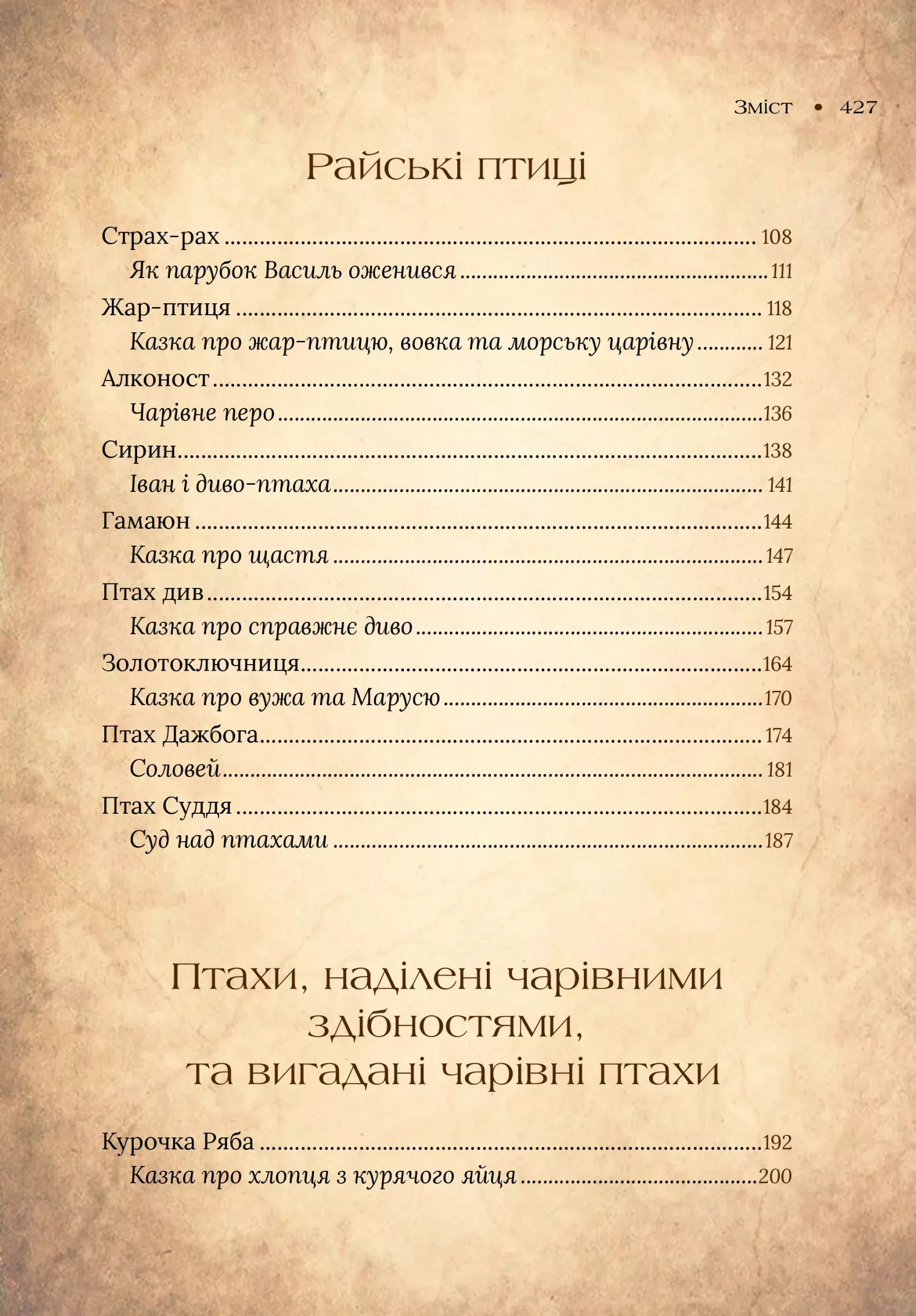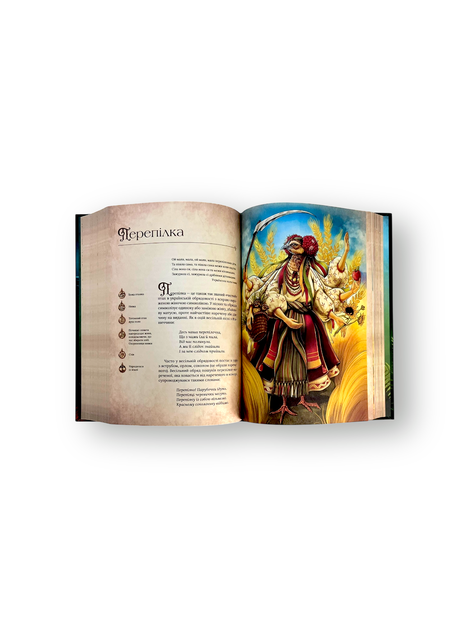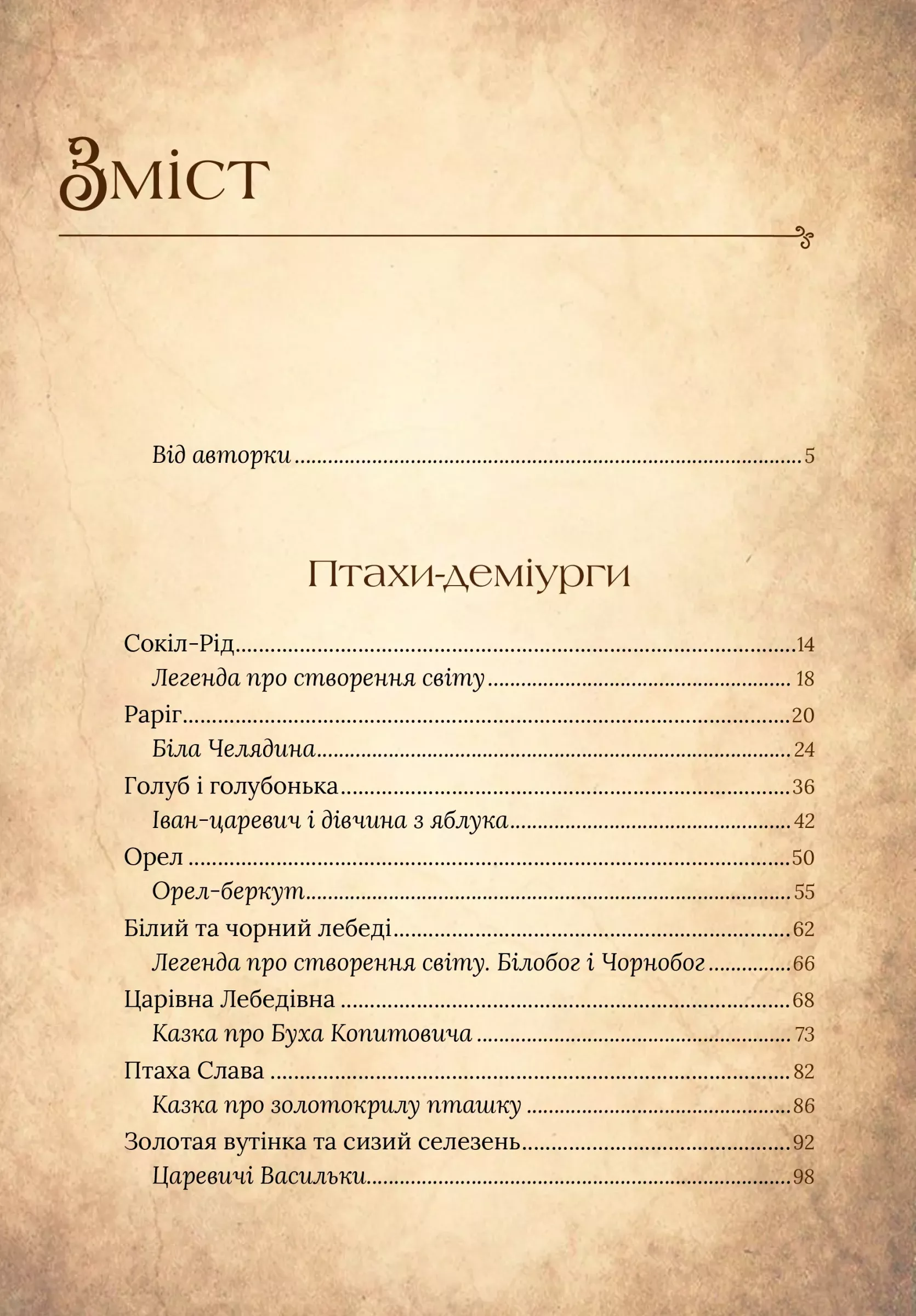 У ваших руках чарівна книжка — провідниця у світ птахів, реальних і витворених багатою уявою праукраїнців. Пернаті в’ють гнізда на липі біля хати й на горищі багатоповерхівки, у садках і парках, але передусім у казках, легендах, притчах, колядках, щедрівках і колискових. Вони можуть легко дістатися Ирію й відімкнути його ключами, постають творцями-деміургами та провісниками волі богів. Ці птахи пророкують долю цілих народів або ж просто через слова колискових і забавлянок допомагають мамі заспокоїти немовля. Зі сторінок цієї книжки до вас прилине вогняний першоптах, якого праукраїнці називали Сокіл-Рід і вважали Творцем Усесвіту. Ви завітаєте в Райський сад помилуєтеся птахами-дівами, його мешканками. Потрапите на пташиний суд і разом із птахом Суддею спробуєте чинити по справедливості. А ще дізнаєтеся багато цікавого про москальську зозулю, золотоключницю, крилатих посланців Дажбога й Велеса... Однак стережіться нечистих птиць, пов’язаних із потойбічним світом і нечистою силою. Подейкують, що вони віщують лихо і приносять біду на своїх крилах. Гортайте книжку — і перед вами постане величезний і цікавий шар культурної спадщини давніх українців, химерний звірослов, що його дослідила й опрацювала Дара Корній.