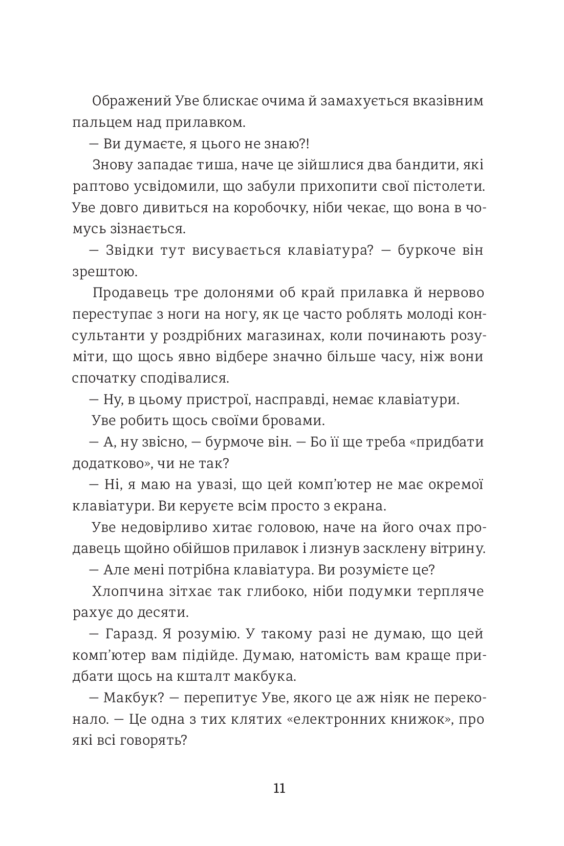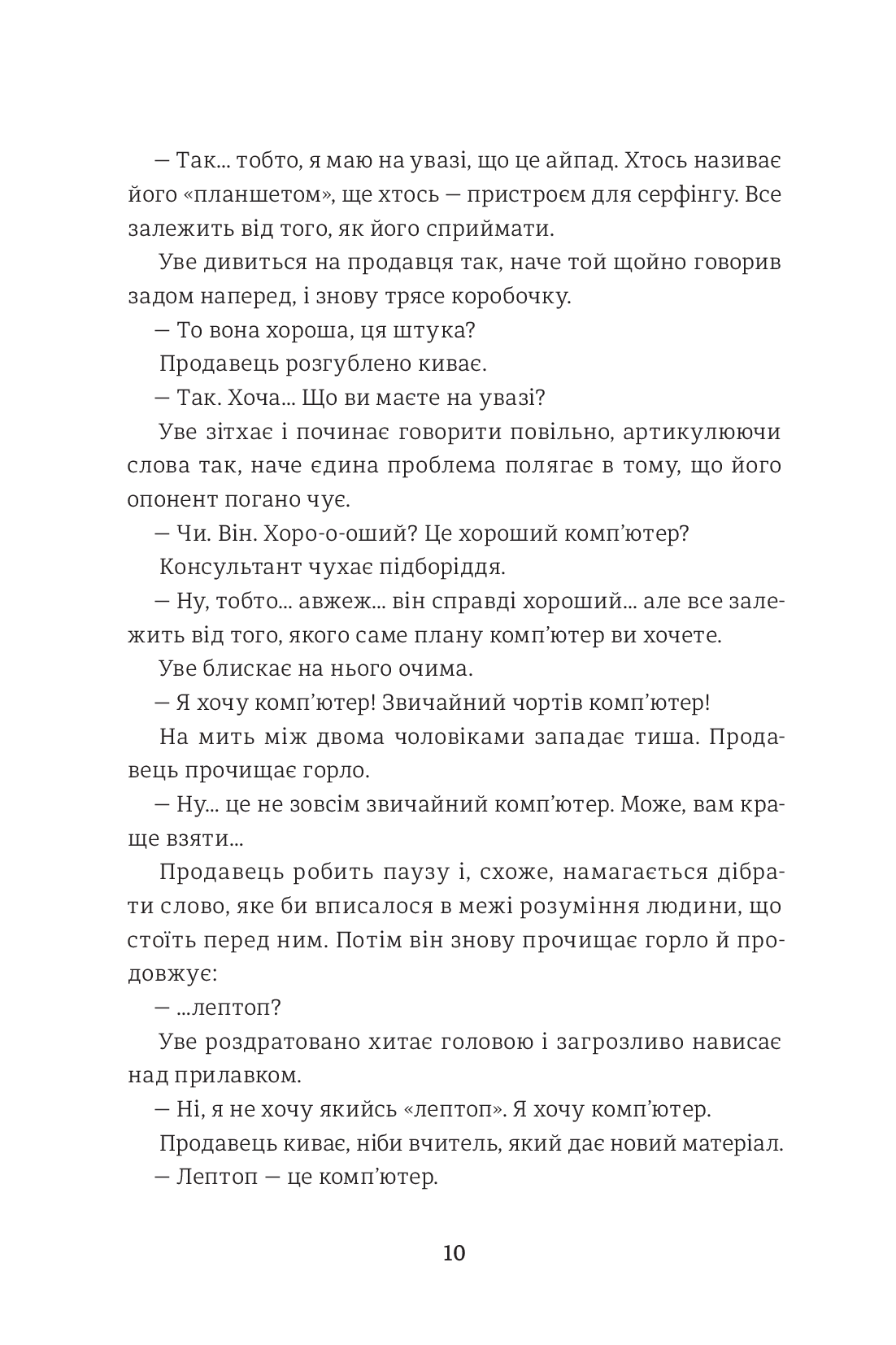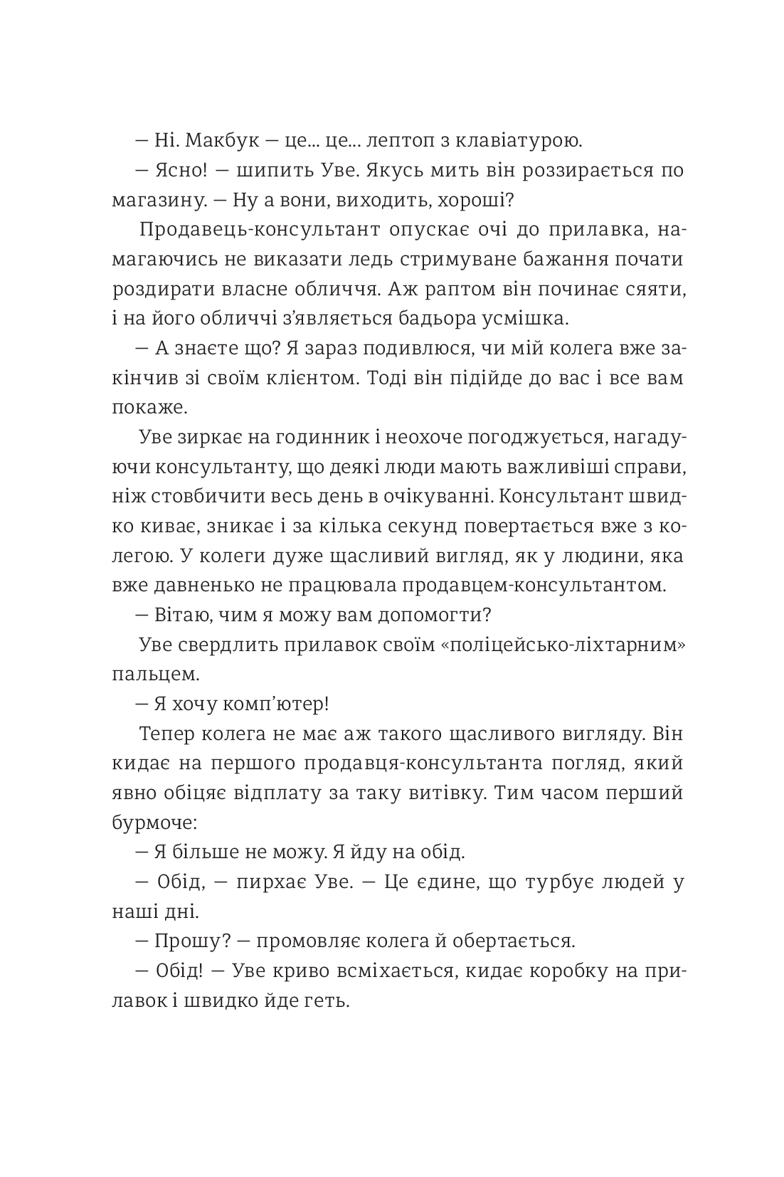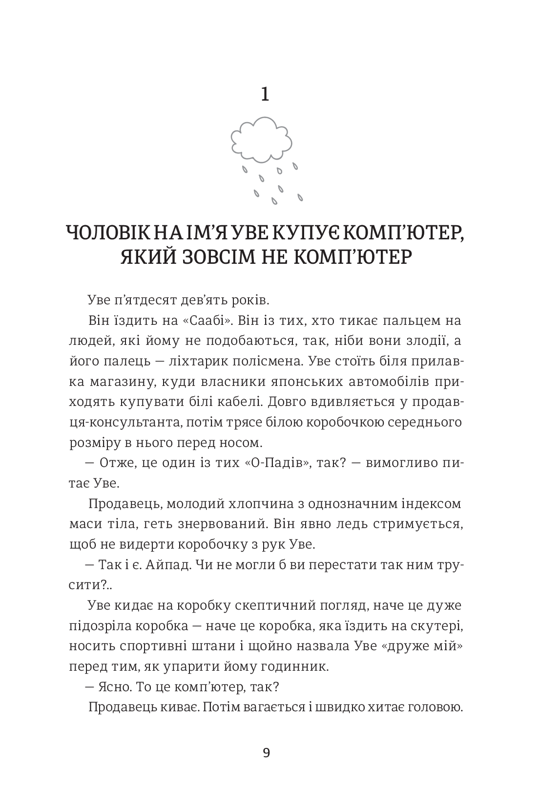 Роман «Чоловік на ім'я Уве» - літературний дебют популярного шведського журналіста, блогера Фредріка Бакмана. Книжка вийшла у 2012 році. На сьогодні продано більше п'яти мільйонів примірників. Роман «Чоловік на ім'я Уве» - смішна, іронічна, зворушлива та мудра історія про людей, які через ті чи інші причини стали непотрібні суспільству. Твір про щоденну мужність жити і бути собою.