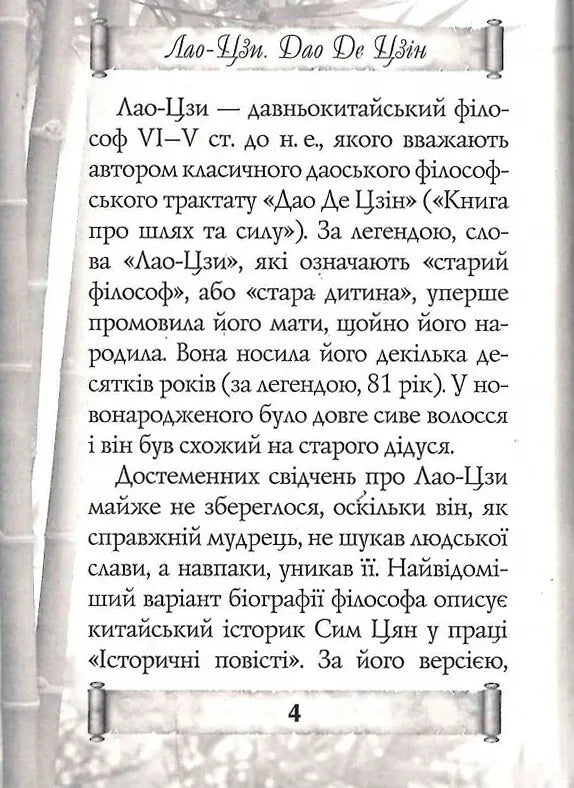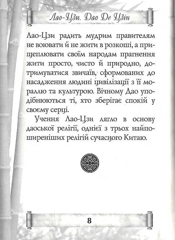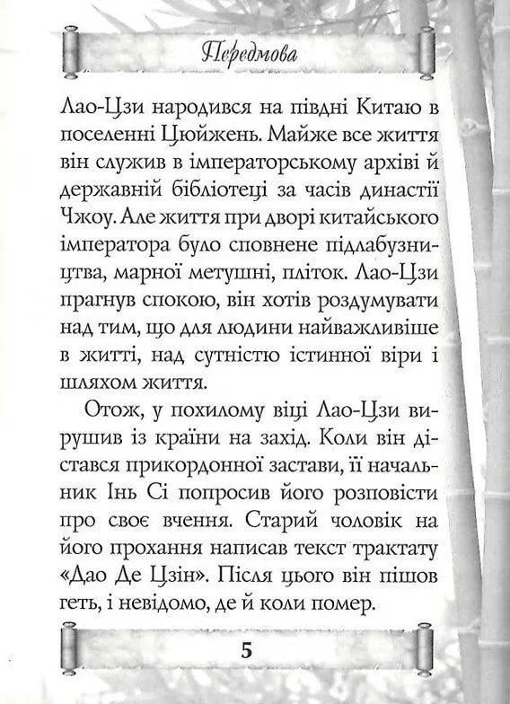 У трактаті «Дао Де Цзін» («Книга про шлях та силу») давньокитайського філософа VI–V ст. до н. е. Лао-цзи викладено думки про істинну віру та шлях життя. Автор розмірковує про те, як переходити від життя тіла до життя духу. Саме це вчення філософа становить основу даоської релігії, однієї з трьох найпоширеніших релігій сучасного Китаю.