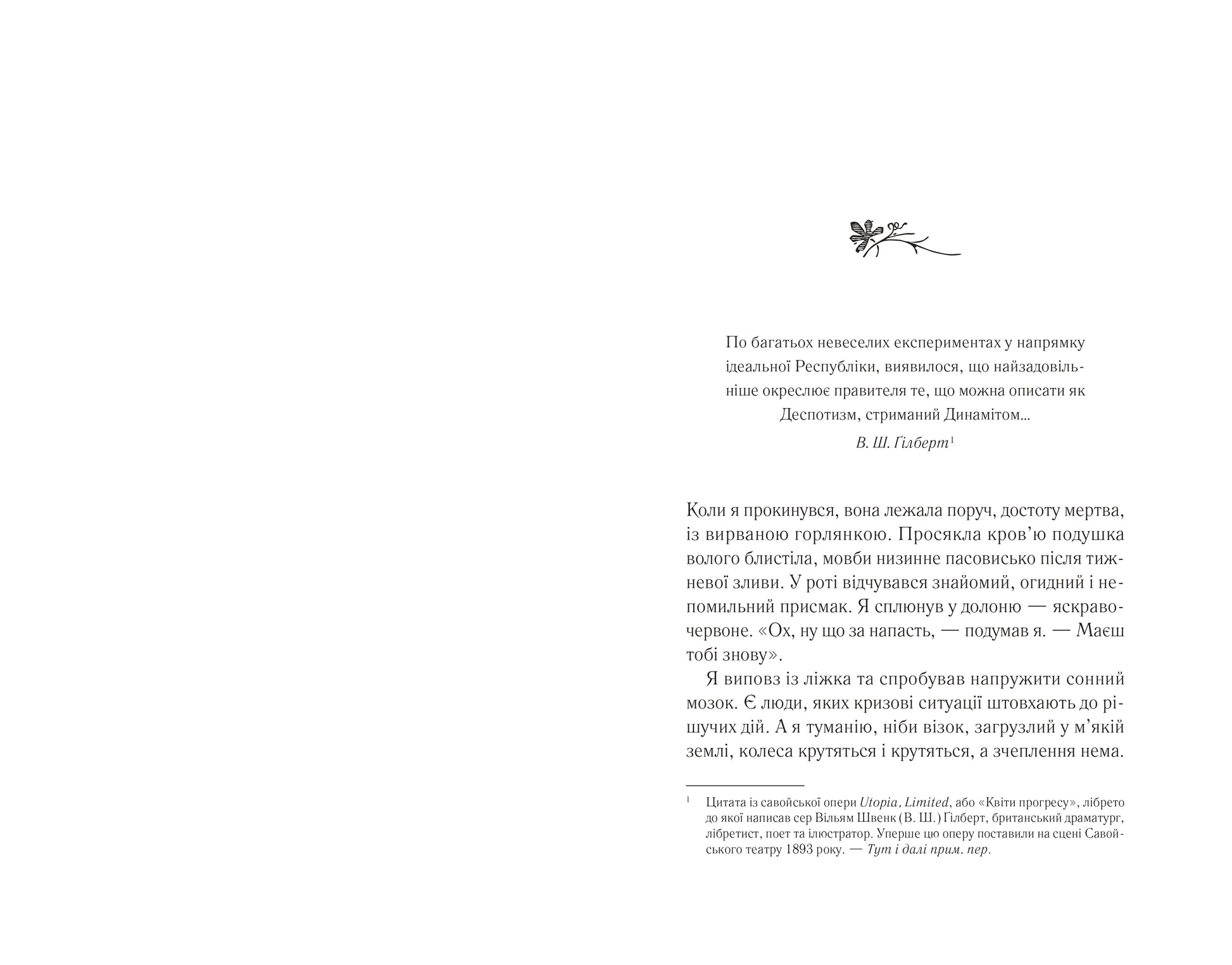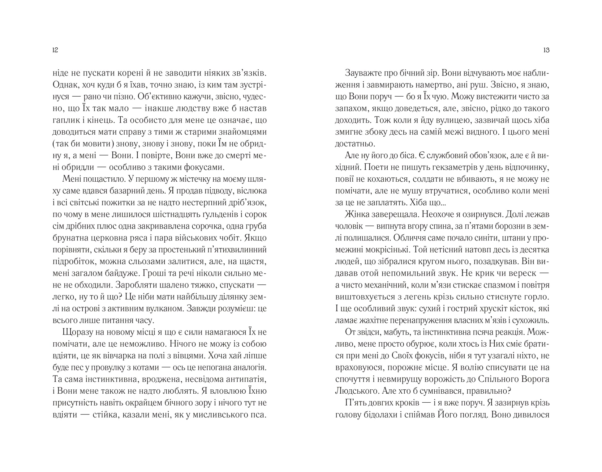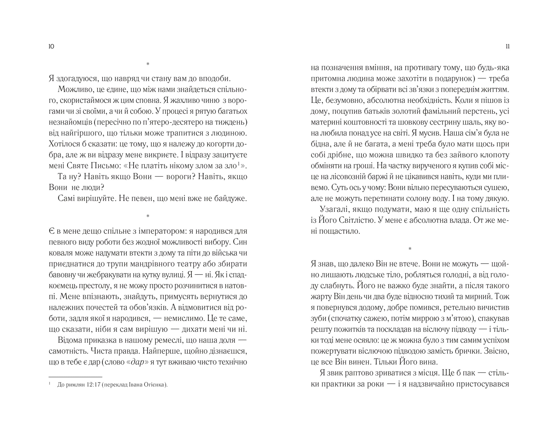 "Я — ваше найгірше жахіття, найстрашніше, що з вами може трапитися, у цьому чи іншому світі. Підвести на мене очі вам буде нестерпно — цим ми із сонцем схожі, але поки що не про це. І точно вже вам не хочеться, щоб я вліз у вашу голову — тут хоча б повірте мені на слово. Тому ви, мабуть, злегка здивуєтеся, дізнавшись, що я насправді на вашому боці…"