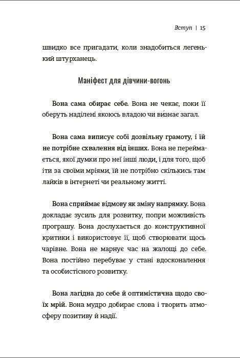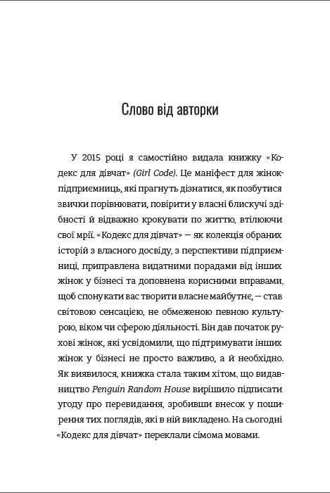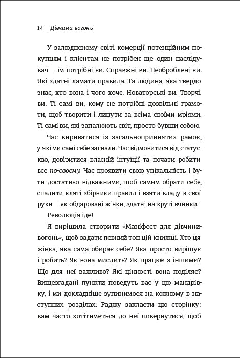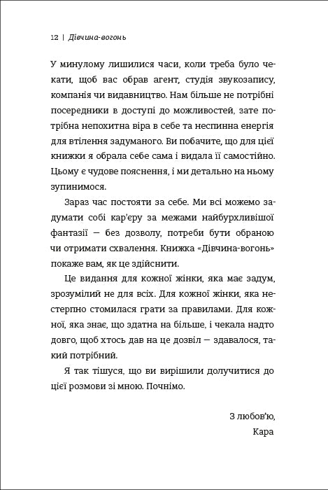 Ця книжка може бути інструкцією з того, як видати книжку або інструкцією з пошуку нового місця роботи, чи нового хобі, одним словом, вона про те, як взяти себе в руки і наважитись на зміни. Цей мотиваційний і практичний нон-фікшн допоможе дівчатам, які хочуть реалізуватись в улюбленій справі. Хто ця жінка, яка сама обирає себе, просто вирішує і робить, твердо знає, хто вона і чого хоче? Виявляється, нею може бути кожна з нас. Ця книжка – особистий путівник-посібник: він підкаже, як обрати себе, перестати виправдовуватися найпопулярнішими відмовками, вийти сам на сам із собою і стати успішною. Про авторку Кара Елвілл Лейба – бізнес-тренерка, авторка 9 книжок-бестселерів, написаних на основі її блогу «Дієта з шампанського», ведуча власного подкасту «Зміни свій розум», котрий завантажили понад 9 мільйонів разів.