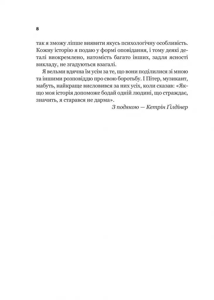 Успішний китайський музикант-іммігрант у першому поколінні, який страждає на сексуальну дисфункцію; молода жінка, яку по дев’ятій весні батько покинув з молодшими братом і сестрою в ізольованому котеджі посеред зими; гламурна трудоголічка, що її мати в дитинстві вітала словами: «Доброго ранку, потворо!», — їхні таємниці більше не заважають їм жити. Тож Кетрін Ґілдінер делікатно ділиться історіями п’ятірки героїв із різних суспільних і культурних верств, з різними темпераментами, та всіх їх ламали ті, хто мав би любити. Хтось із них уособлює відвагу, хтось вражає стійкістю і терплячістю, хтось — неймовірною здатністю прощати. Вони навчилися давати собі раду в сутужних обставинах, а їхній досвід може стати гарною стратегією для читачів, які потребують підтримки.