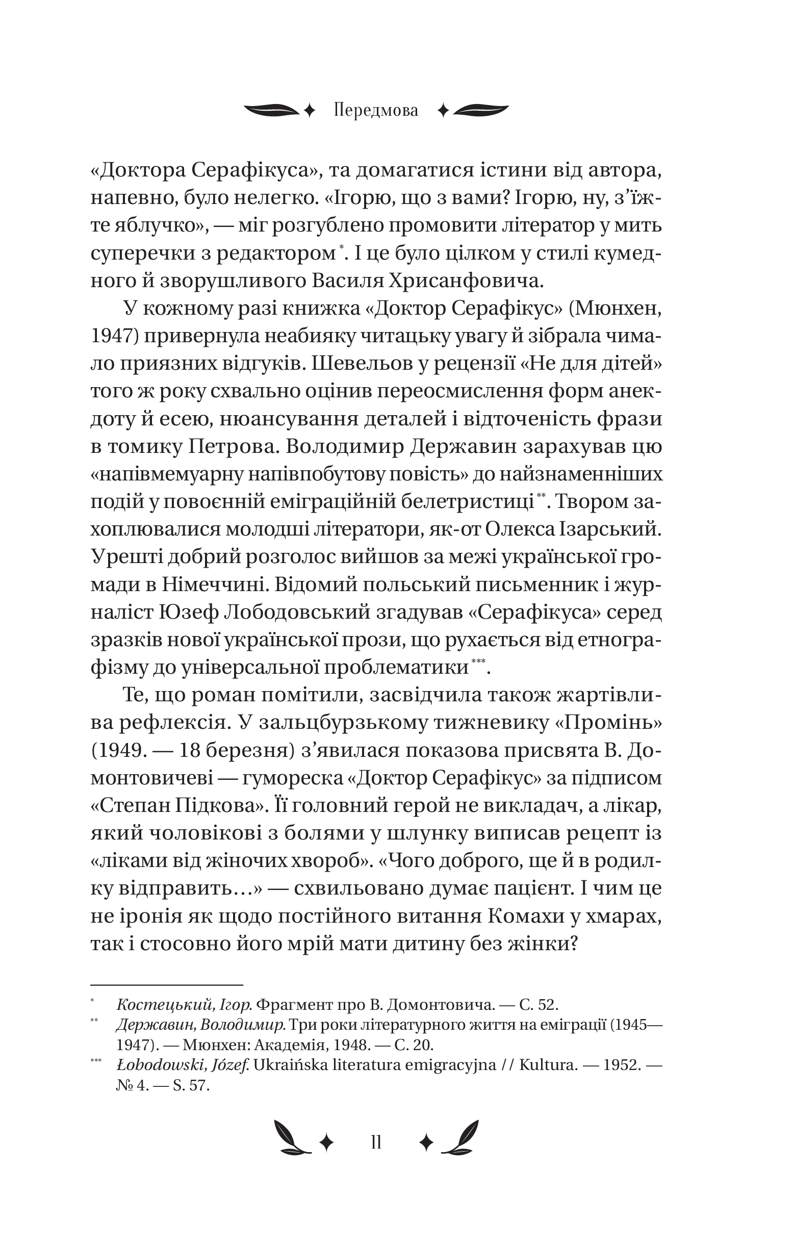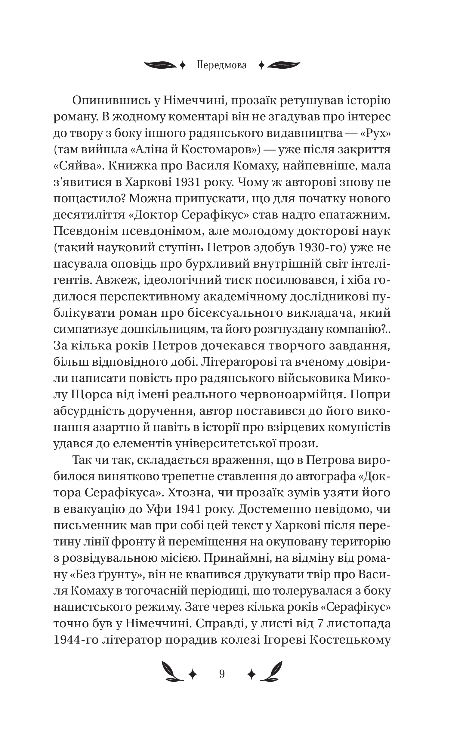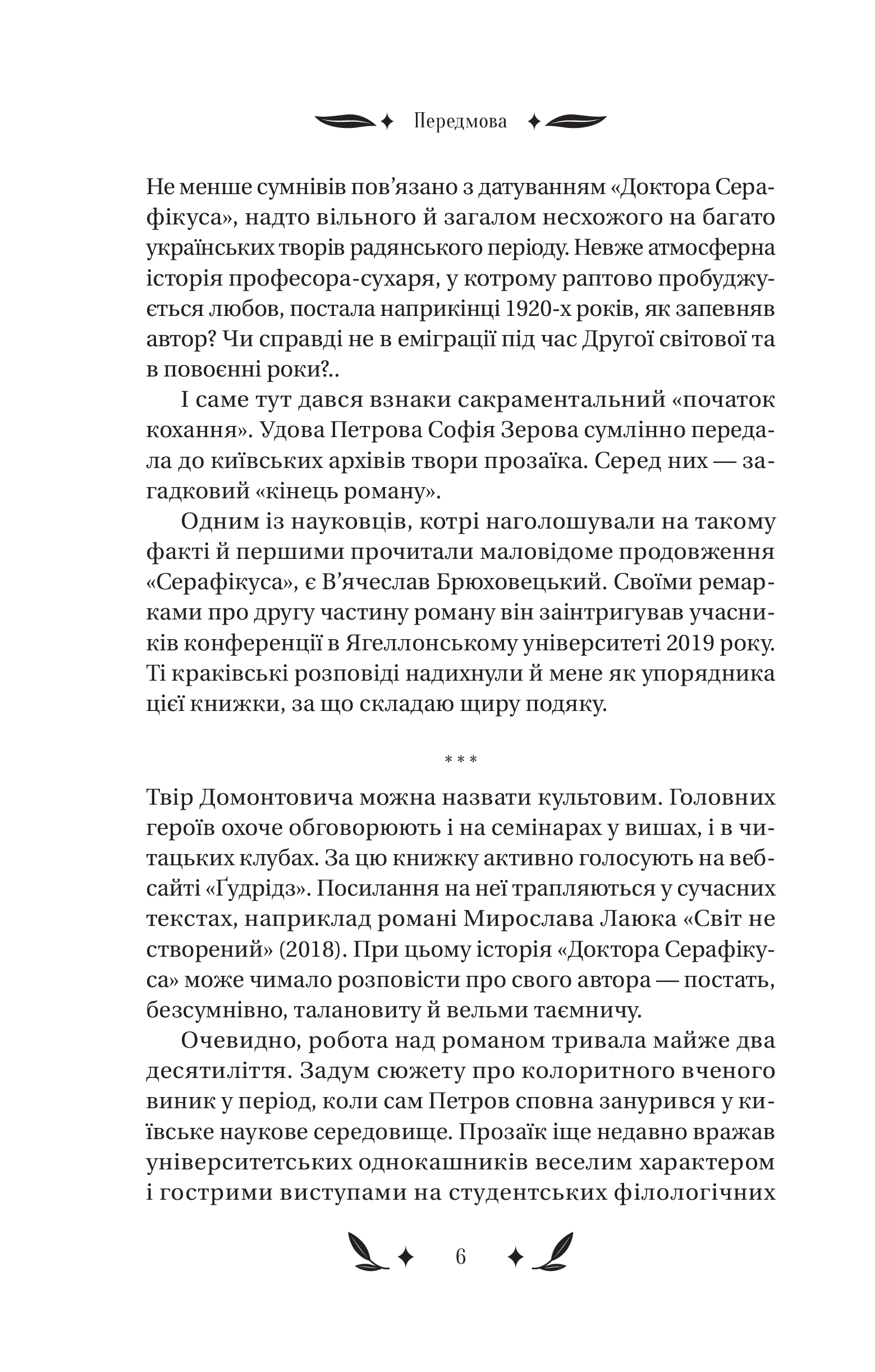 Серце професора — це енциклопедія пристрастей, прихованих за списками літератури й примітками. У «Докторі Серафікусі» воно пульсує в унісон із вибуховими хвилями історії. Воно поривається до аудиторій і бібліотек, але не може уникнути парків і модних кав’ярень, затишних ярів і диких завулків. Чи важко натрапити на хіпстерку у 1920-х роках? Що простіше — закохатися в таку дівчину чи в місто? Як залишатися українськими інтелектуалами після навали «хороших росіян»?.. Відповіді знають В. Домонтович і його химерні, зате переконливі персонажі. Один із найзагадковіших українських романів уперше друкується з розділами й фрагментами, які дивом уціліли в архіві.