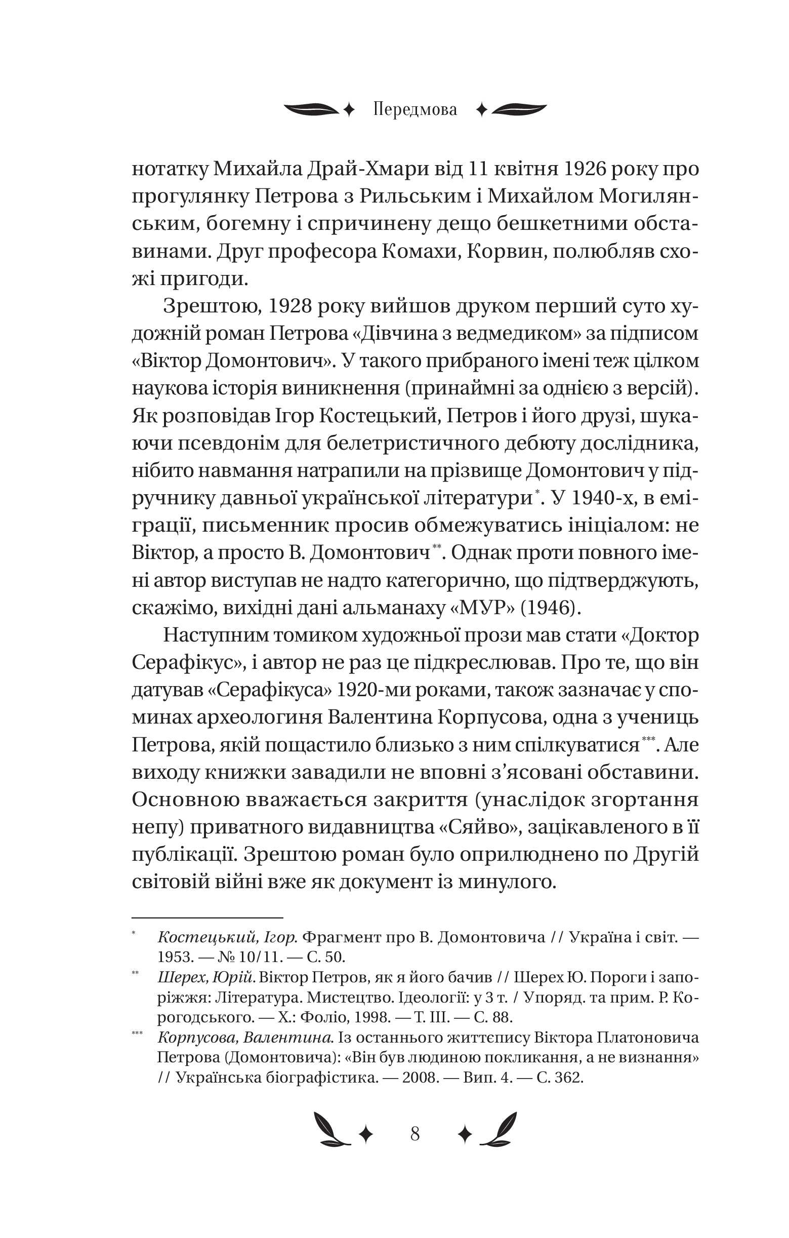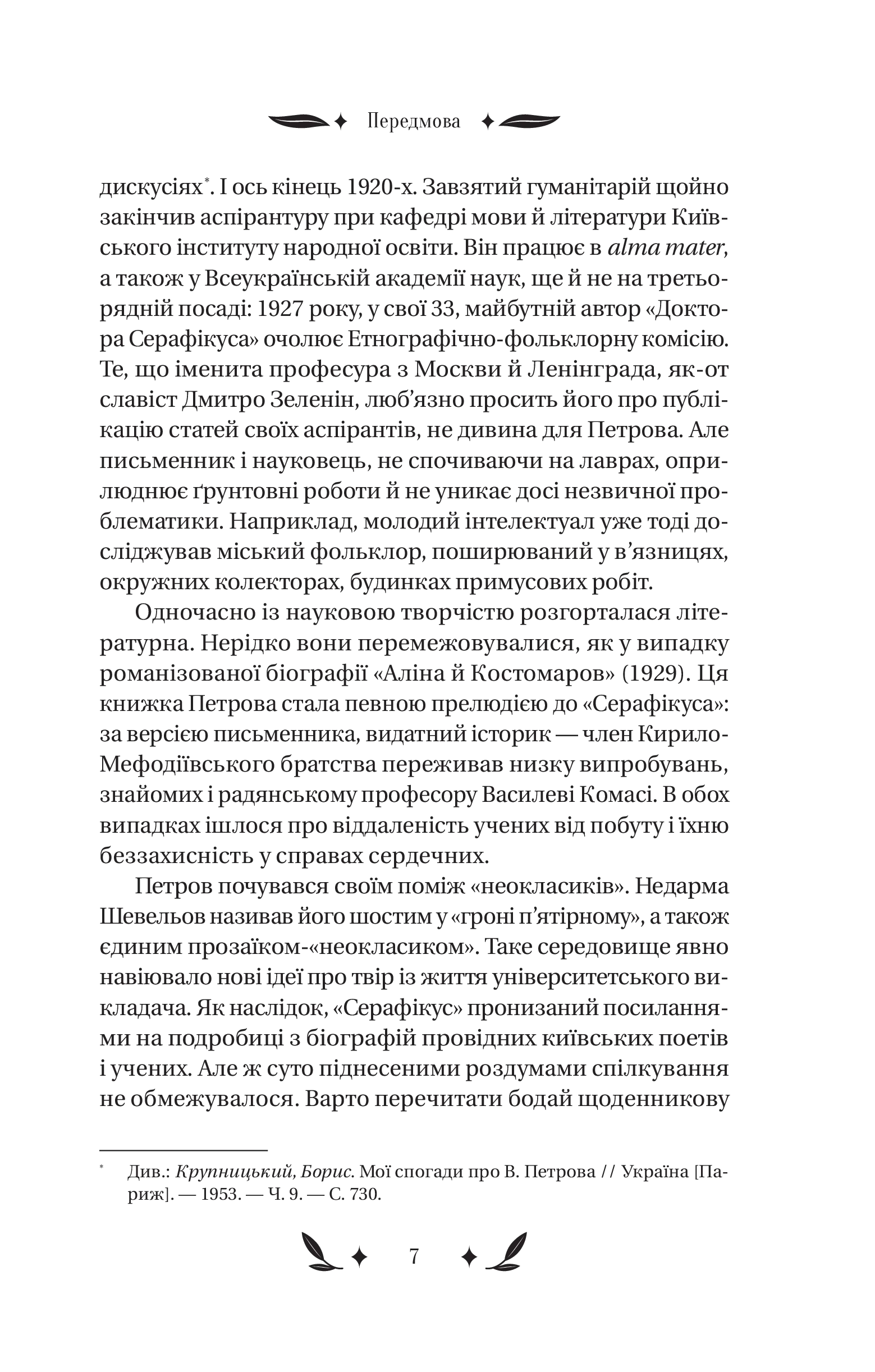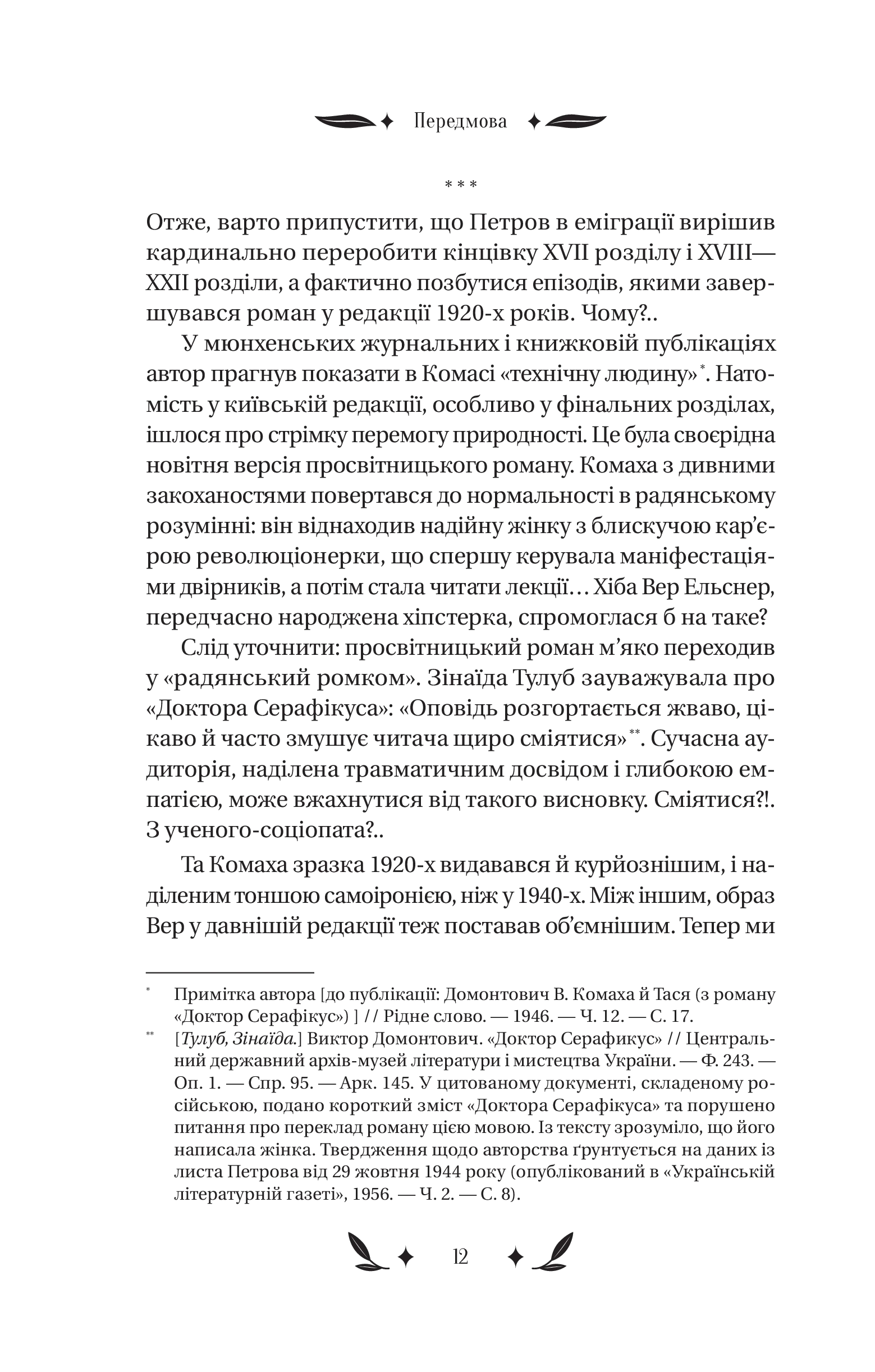 Серце професора — це енциклопедія пристрастей, прихованих за списками літератури й примітками. У «Докторі Серафікусі» воно пульсує в унісон із вибуховими хвилями історії. Воно поривається до аудиторій і бібліотек, але не може уникнути парків і модних кав’ярень, затишних ярів і диких завулків. Чи важко натрапити на хіпстерку у 1920-х роках? Що простіше — закохатися в таку дівчину чи в місто? Як залишатися українськими інтелектуалами після навали «хороших росіян»?.. Відповіді знають В. Домонтович і його химерні, зате переконливі персонажі. Один із найзагадковіших українських романів уперше друкується з розділами й фрагментами, які дивом уціліли в архіві.