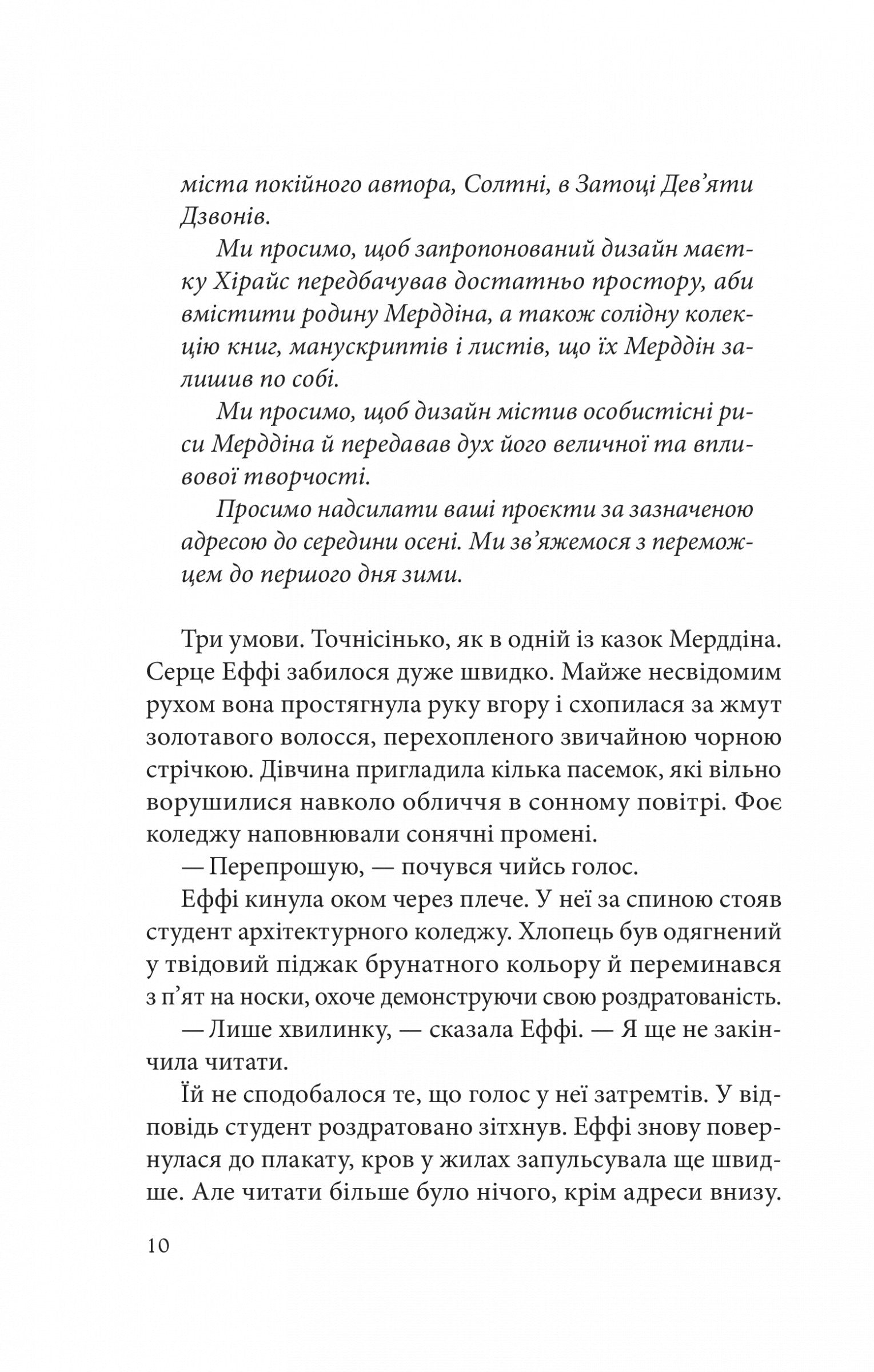 Майбутня архітекторка Еффі Сеєр завжди вірила в казки — з дитинства її переслідували видіння Короля Фейрі. На столі в неї постійно лежить пошарпаний томик «Ангхареда» — епосу Емріса Мерддіна про те, як смертна дівчина закохується в Короля Фейрі, а потім знищує його. Тож коли родина письменника оголошує конкурс на перепланування його маєтку, Еффі розуміє, що це її шанс. Однак маєток Хірайс — старий і затхлий, а його мешканці — підозріливі й непривітні. Прикрощів завдає і Престон Хілоурі, молодий літературознавець, який вирішив довести, що Мерддін шахрай. Поки суперники по крихтах збирають інформацію про спадщину загадкового письменника, темні сили змовляються проти них. Їм доведеться працювати разом, щоби відкрити таємницю Мерддіна й урятуватися. Приготуйтеся пірнути в жанр «темної академії», насичений ліризмом, казковістю й фольклором. Номінація на Goodreads Choice Awards 2023 у категорії «Найкраще юнацьке фентезі та наукова фантастика».