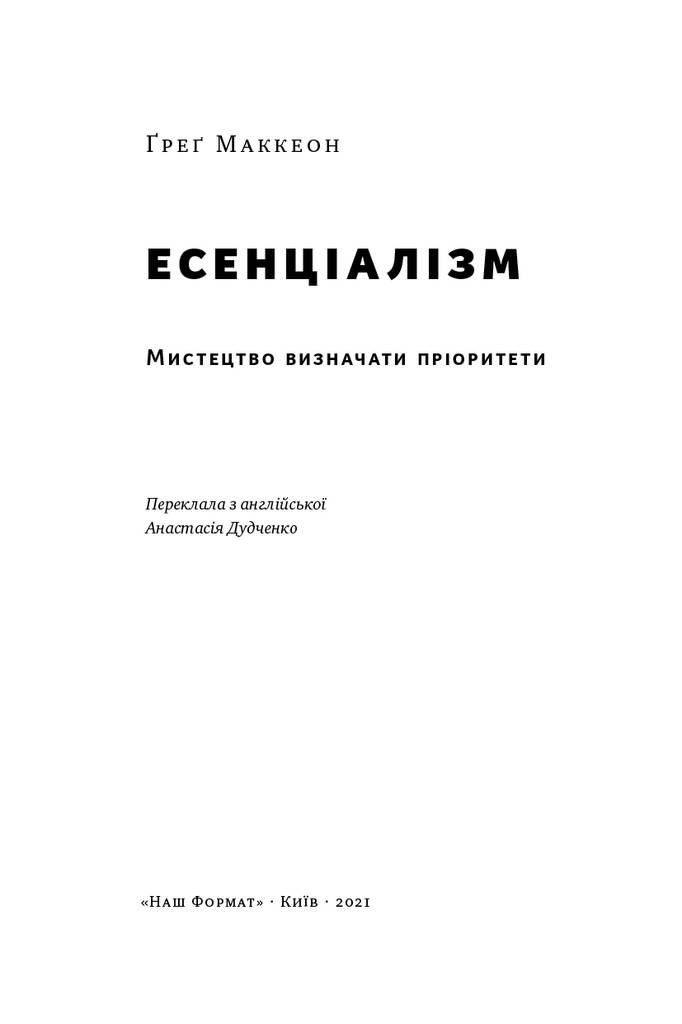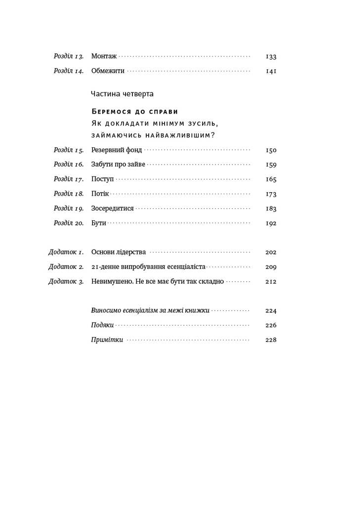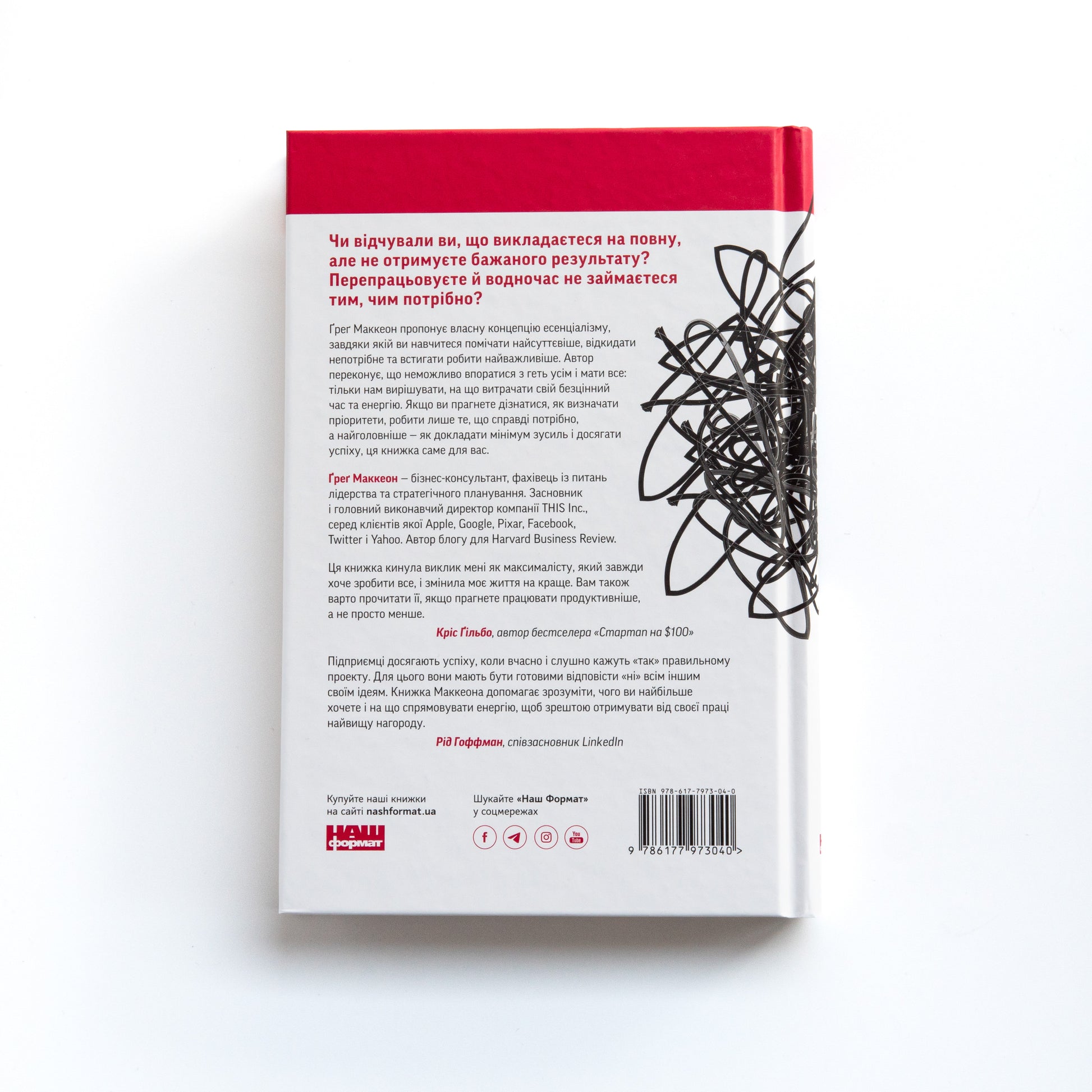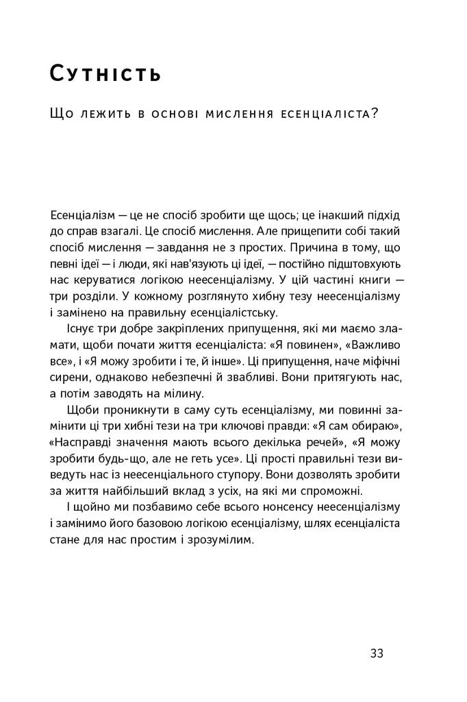 Чи відчували ви коли-небудь, що викладаєтеся на повну, але не отримуєте бажаного результату? Перепрацьовуєте й водночас не займаєтеся тим, чим потрібно?.. Ґреґ Маккеон пропонує власну концепцію Есенціалізму, завдяки якій ви навчитеся помічати найсуттєвіше, відкидати непотрібне й устигати найважливіше.