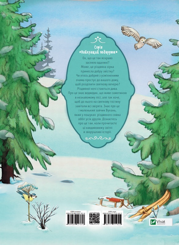 Ох, що це так яскраво засяяло вдалинi? Може, це рiздвяна зiрка принесла добру звiстку? Чи хтось добрий з усмiхненими очима простує до вашого дому,щоб роздiлити святкову вечерю? Рiздвяної ночi стаються дива.Про це знає ведмедик, що живе самотиною в незнайомому лiсi, але так хоче,щоб до нього на святкову гостину завiтали всi звiрята. Знає про це i маленький зайчик Вухань,який у пошуках рiздвяного сяйва оббiг усiх друзiв. Дiзнаєтесь про це i ви, коли прочитаєте цi навдивовижу свiтлi й зворушливi iсторiї.