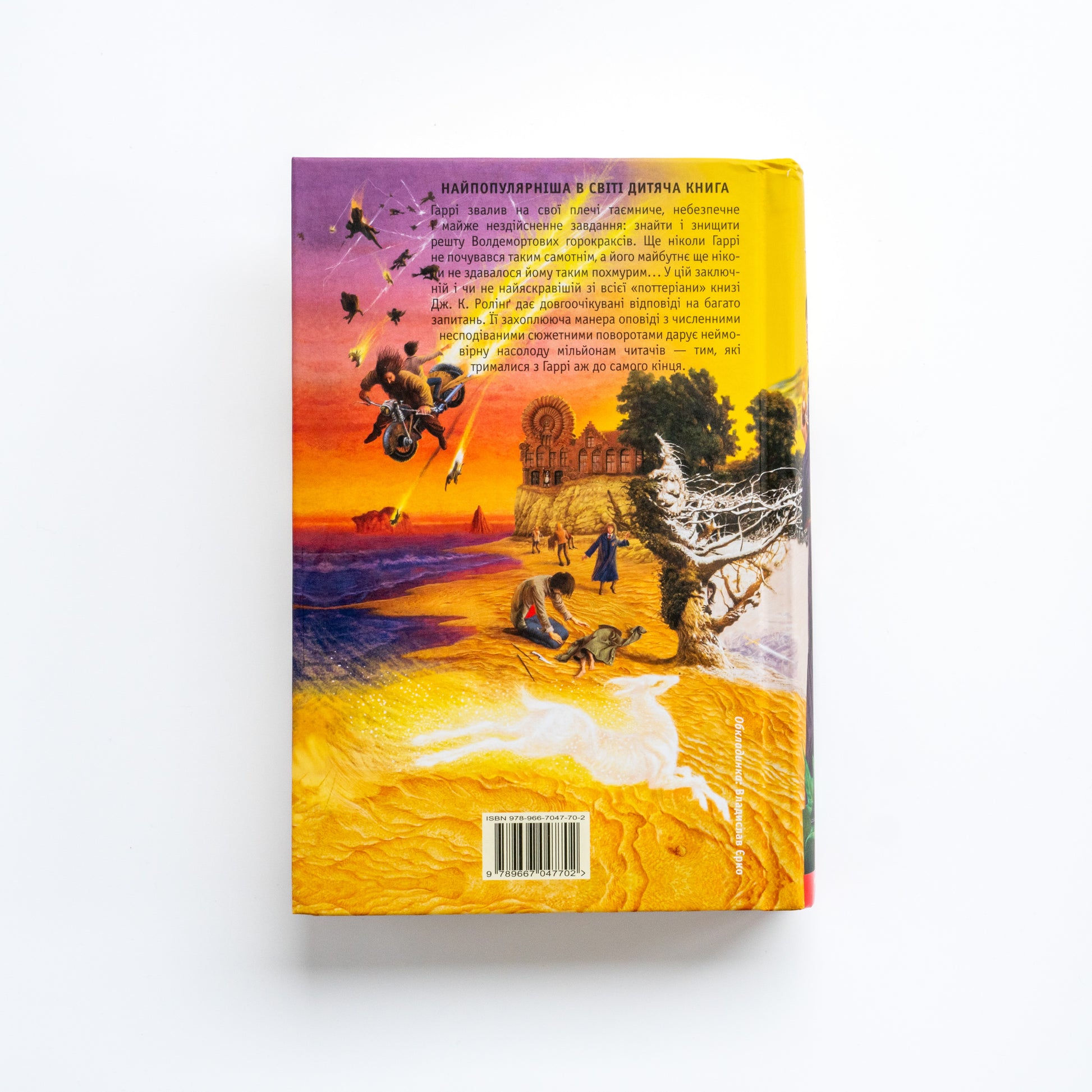 Гаррі звалив на свої плечі таємниче, небезпечне і майже нездійсненне завдання: знайти і знищити решту Волдемортових горокраксів. Ще ніколи Гаррі не почувався таким самотнім, а його майбутнє ще ніколи не здавалося йому таким похмурим... У цій заключній і чи не найяскравішій зі всієї «поттеріани» книзі Дж. К. Ролінґ дає довгоочікувані відповіді на багато запитань. Її захоплююча манера оповіді з численними несподіваними сюжетними поворотами дарує неймовірну насолоду мільйонам читачів — тим, які трималися з Гаррі аж до самого кінця.