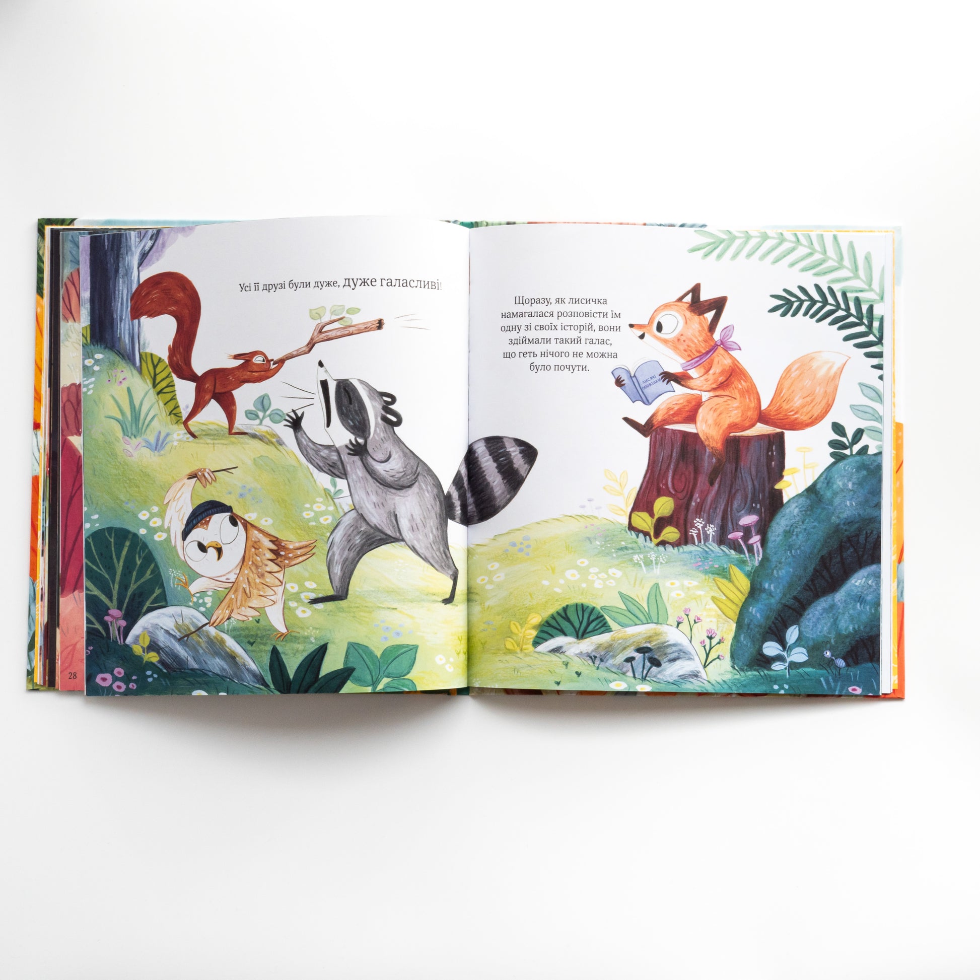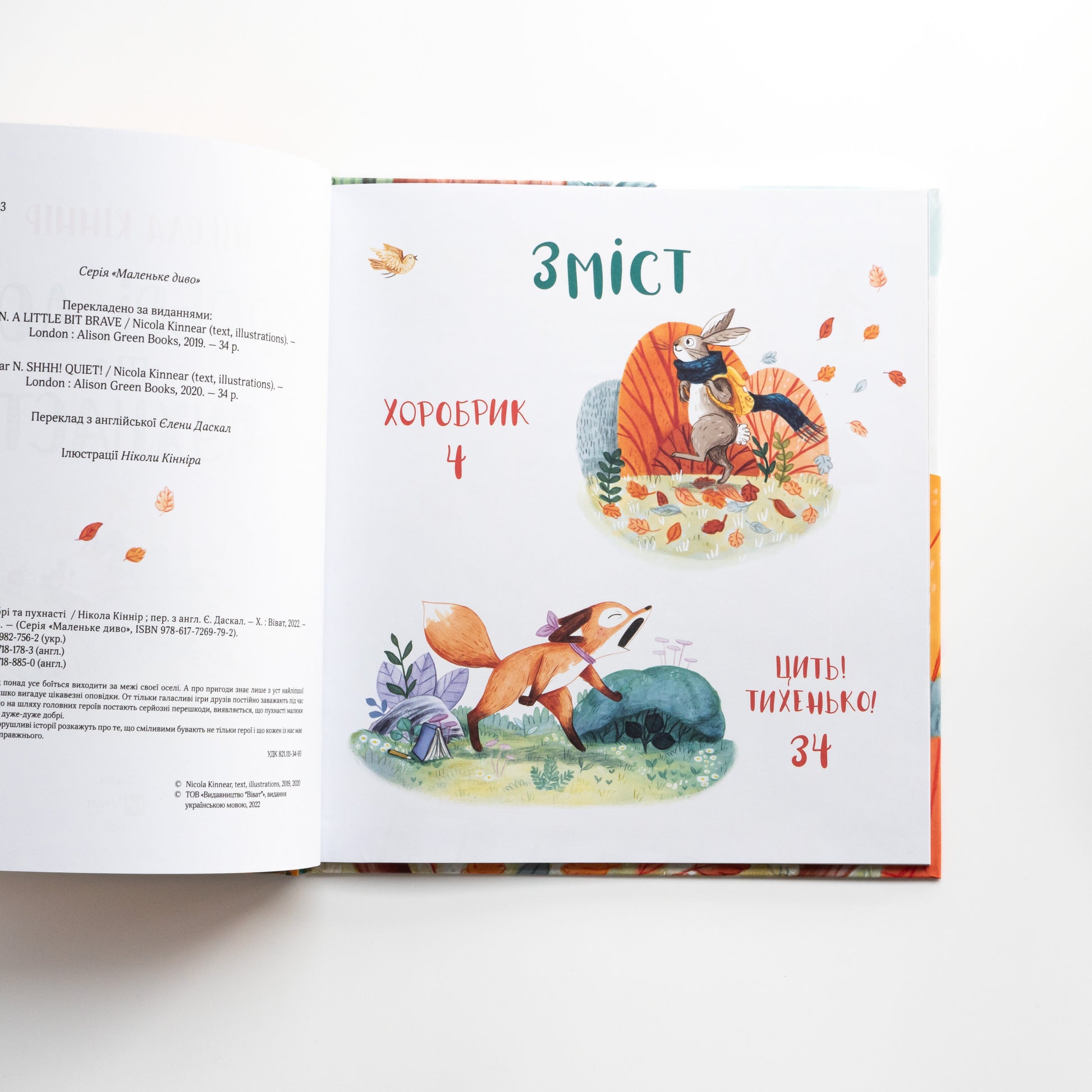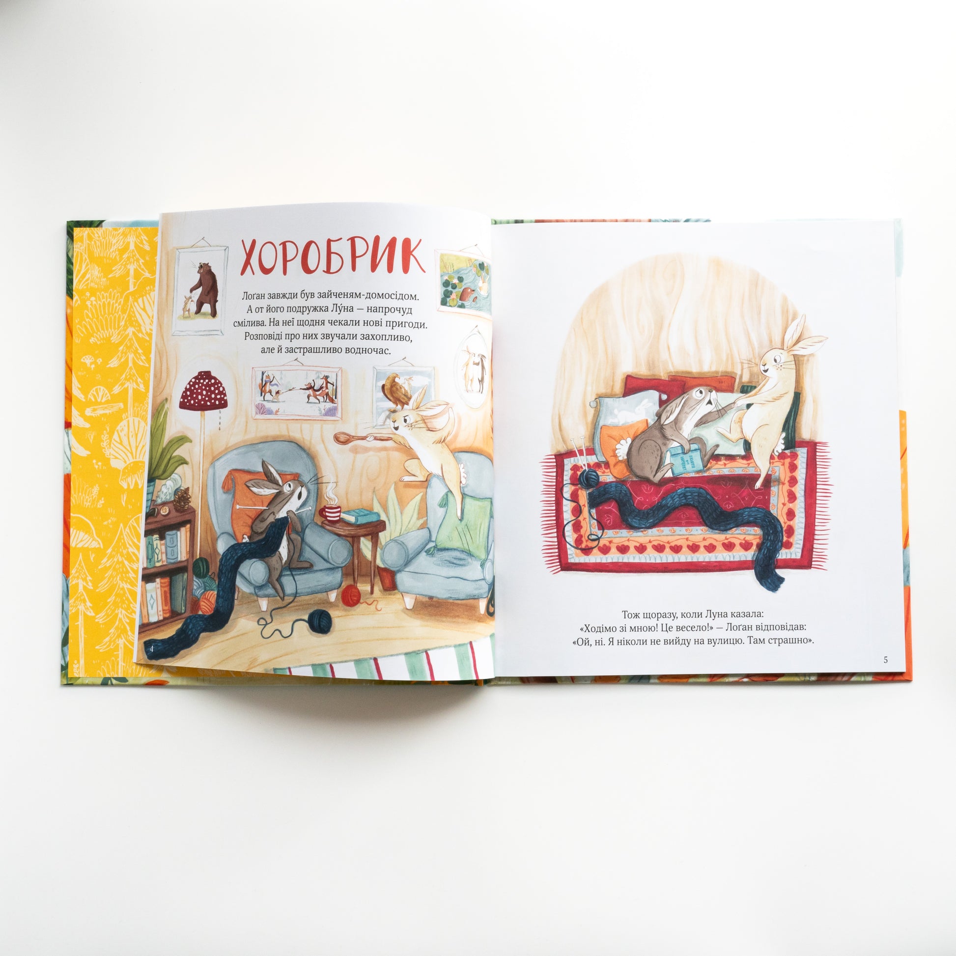Зайченя-домосід понад усе боїться виходити за межі своєї оселі. А про пригоди знає лише з уст найліпшої подружки. Лисеня-тишко вигадує цікавезні оповідки. От тільки галасливі ігри друзів постійно заважають під час читання! Однак щойно на шляху головних героїв постають серйозні перешкоди, виявляється, що пухнасті малюки страшенно хоробрі та дуже-дуже добрі.