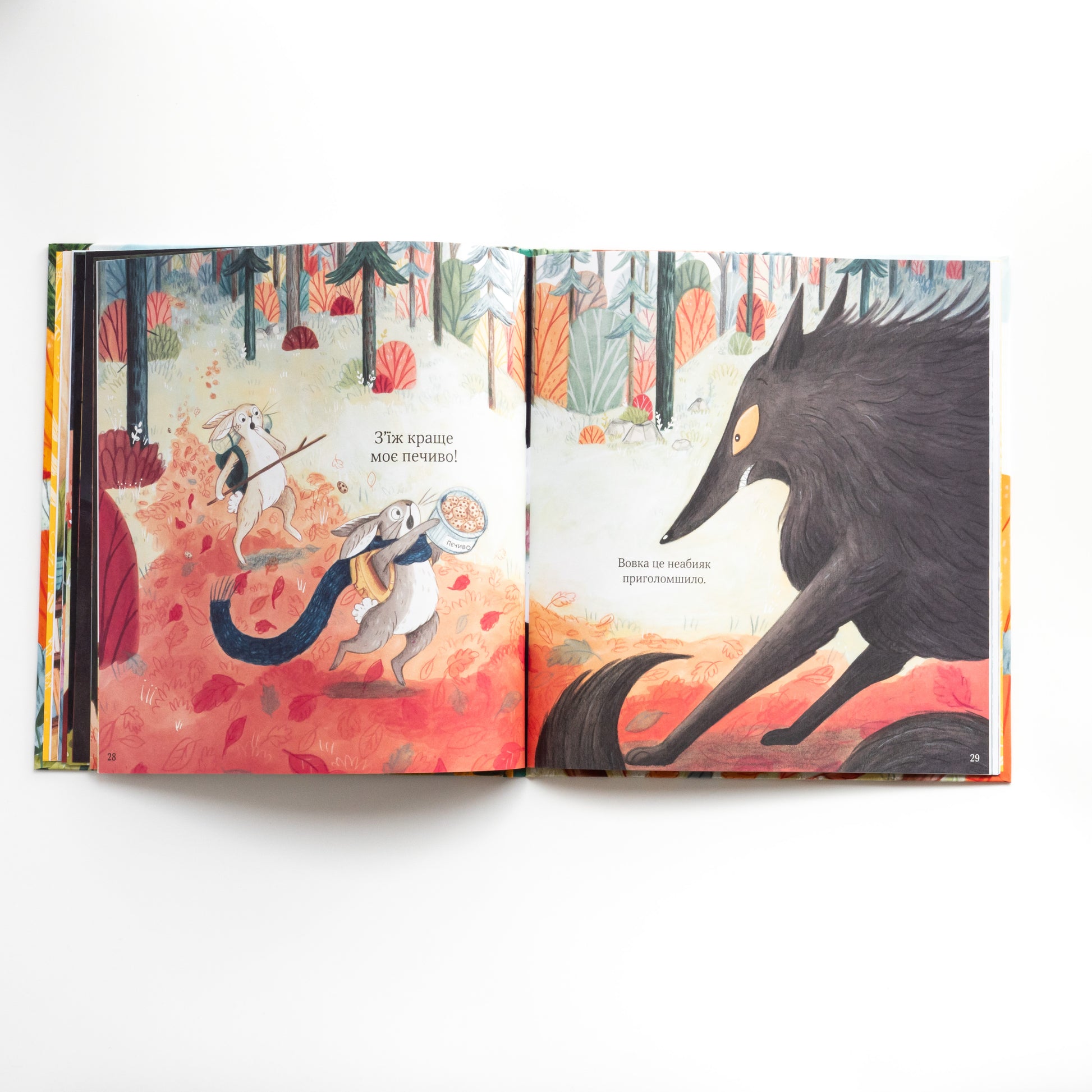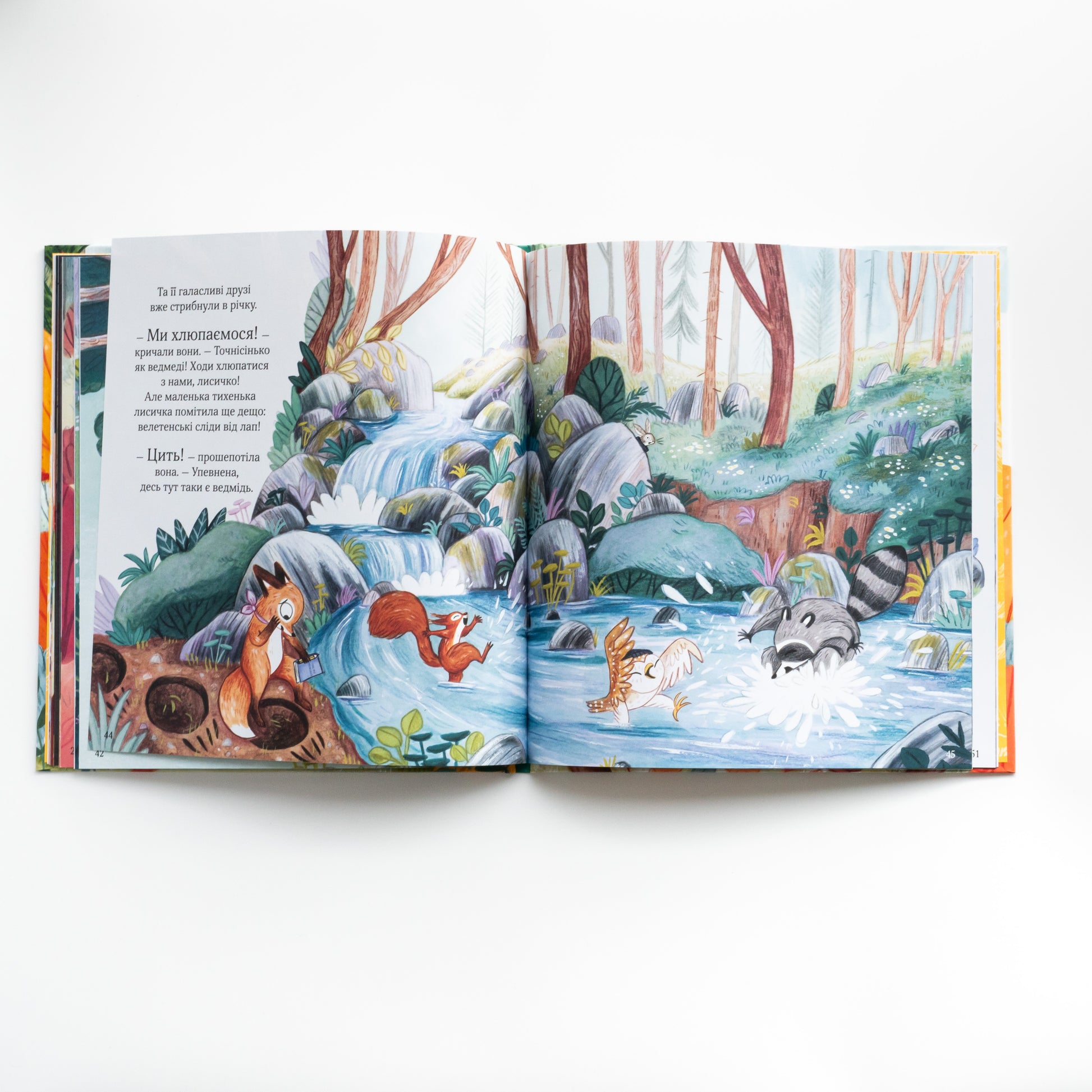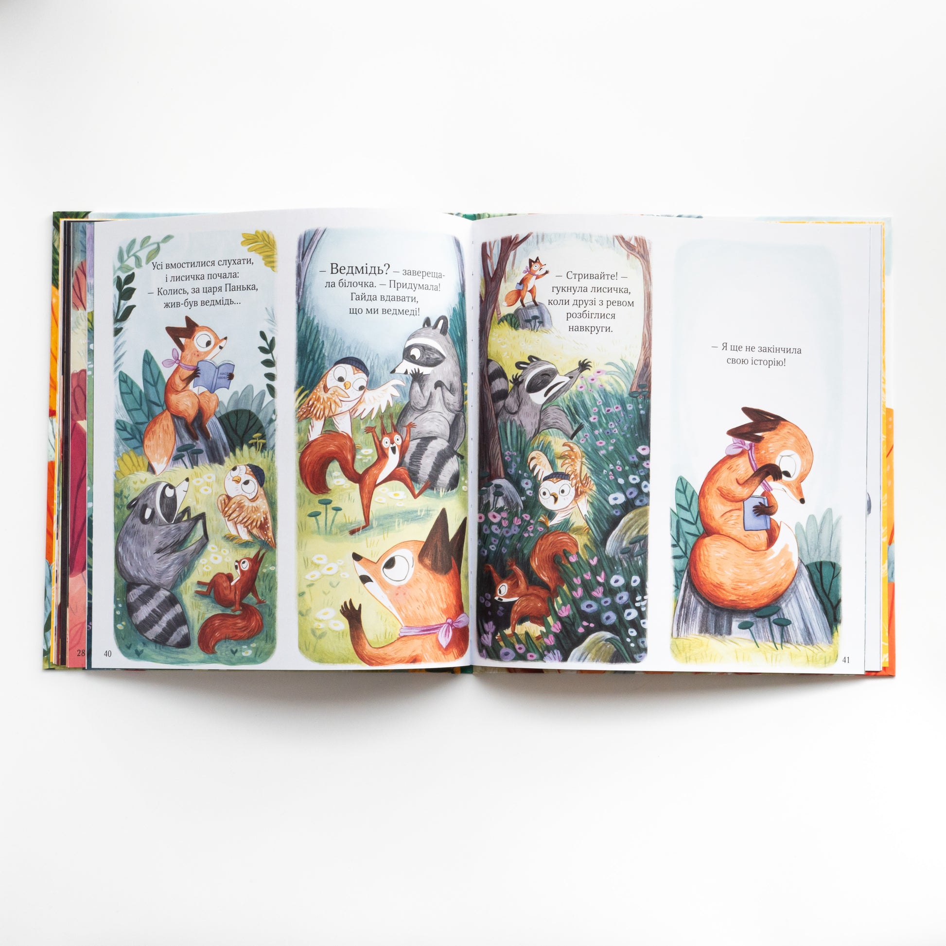 Зайченя-домосід понад усе боїться виходити за межі своєї оселі. А про пригоди знає лише з уст найліпшої подружки. Лисеня-тишко вигадує цікавезні оповідки. От тільки галасливі ігри друзів постійно заважають під час читання! Однак щойно на шляху головних героїв постають серйозні перешкоди, виявляється, що пухнасті малюки страшенно хоробрі та дуже-дуже добрі.