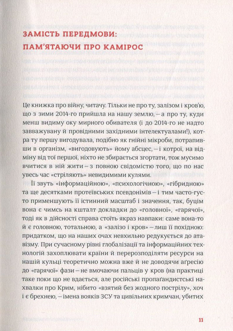 Нова збірка актуальної публіцистики відомої письменниці - це книга для тих, хто не уникає чесних відповідей на нагальні питання і переймається викликами, які ставить перед українцями сьогодення. Тут ідеться про химери «поневоленого розуму» та про нові маски й форми, яких набуває в епоху мас-медіа давня війна, про пошук героїв, про знакові постаті й тексти, а зрештою про те, як гідність і спротив нав’язаним правилам гри дають нову надію європейській цивілізації. Це ексклюзивний репортаж із гарячих точок інформаційного фронту, де триває боротьба з забуттям і байдужістю, які мало не коштували нам держави.
