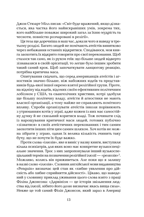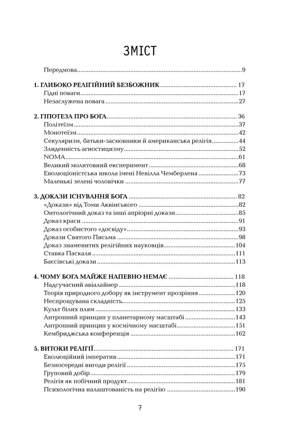 Річард Докінз спонукає читача неупереджено поглянути на сенс релігії, не нав’язуючи власної думки, а заохочуючи до самостійних роздумів і висновків. Автор розглядає особливості так званої «ейнштейнівської релігії», за якою Бог — це метафора на позначення загадковості Всесвіту, критикує «гіпотезу про Бога», осмислює, чи дійсно релігія є регулятором моральності, розкриває значення еволюції та природного добору. Кожну свою тезу науковець підкріплює цікавими історичними фактами та посиланнями на достовірні джерела.