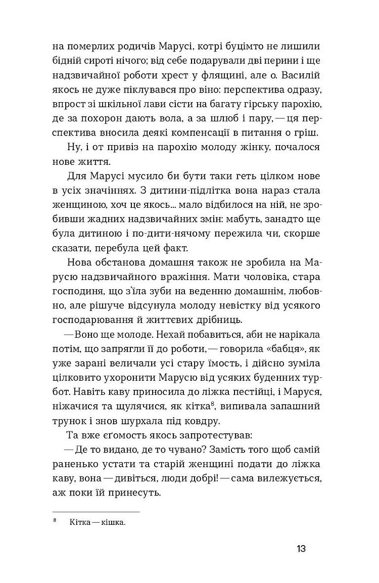 Гнат Хоткевич — бандурист, етнограф, театральний діяч, композитор і перекладач. Харків’янин, який тонко відчував гуцульську душу. У центрі одного з найвідоміших текстів автора — молода сирота Маруся, яка стає дружиною священника й переїжджає до Криворівні, де її чоловік отримує парафію. Вона швидко завойовує любов гуцулів, але в прісному шлюбі не знаходить щастя. Її серце захоплює харизматичний ватажок опришків Дмитро Марусяк. Та чи зможе вона з ним віднайти омріяну любов? Чи не стане на заваді лиха вдача опришка? «Камінна душа» — атмосферна, пристрасна й психологічна повість із непростими героями та неймовірними описами побуту й життя серед гір.