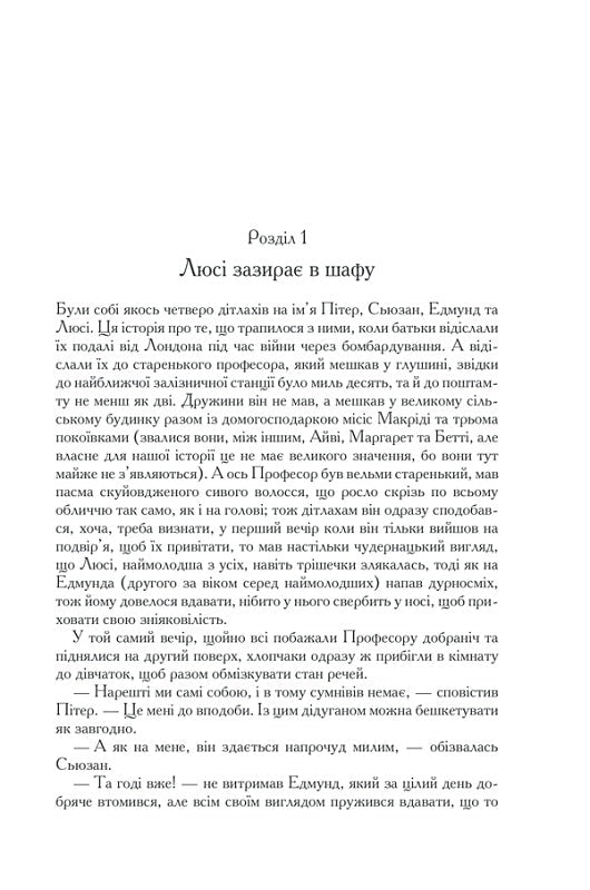 Найулюбленіша книжка читачів кількох поколінь, у якій письменник та філософ Клайв Стейплз Льюїс гармонійно поєднав героїв давніх англійських казок, античних міфів і легенд, християнські ідеї добра, прощення та милосердя із захопливою, барвистою, чарівною фантазією про величезний світ.