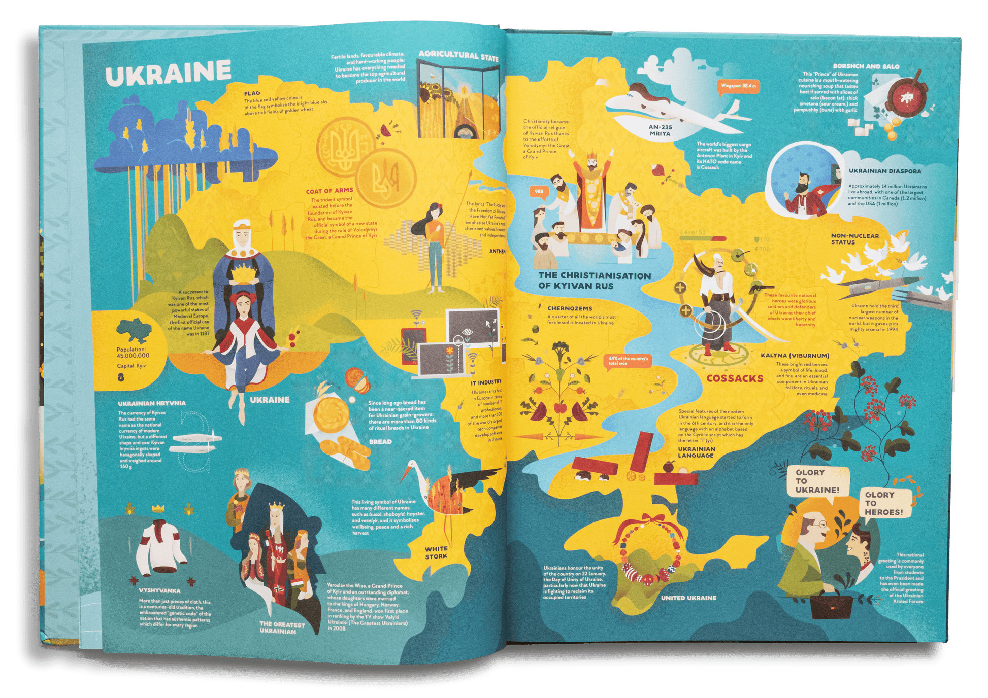 Формат книги-мандрівки особливий — це не довідник і не підручник. Це карта-розповідь у форматі «едьютейнмент», на якій зазначені найцікавіші історико-географічні та статистичні факти про країну в авторських ілюстраціях.