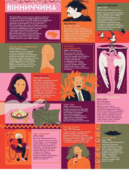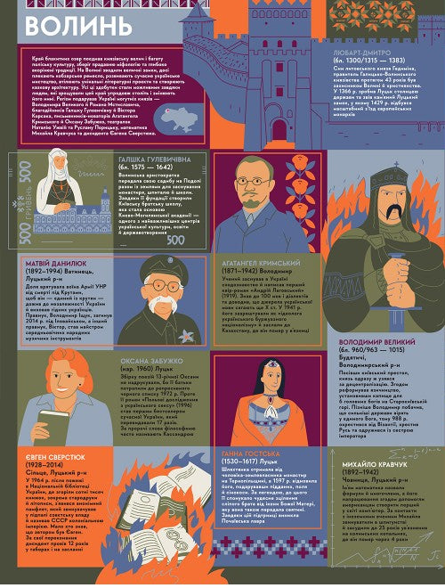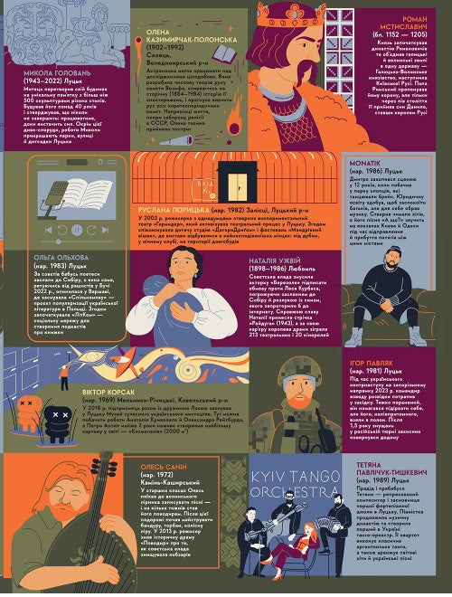 Попри всі труднощі, випробування, війни, еміграцію й заборони, українці залишилися вірними своїй справі та батьківщині. Вони творили, відкривали, досліджували, боролися, лікували, навчали, захищали, мріяли. роблять це донині. У цій книзі немає другорядних постатей. Кожен герой — окрема історія сили, таланту й наполегливої праці. Ми свідомо розширили географію: розповіли про тих, хто народився в певному регіоні, хто приїхав і залишив там слід, а також про тих, хто покинув рідну землю, але назавжди зберіг її в серці. Серед героїв є не лише уродженці України, а й ті, хто зʼявився на світ за її межами, та серцем і справами належить до українського народу. І, звісно, ми не забули про наших чотирилапих героїв — тих, хто розміновує території, стає обличчям екоініціатив, зачаровує незворушним поглядом і... сміливо кусає рашистів за пальці. «Книга-мандрівка. Українці» — це наша подяка всім, хто творив…