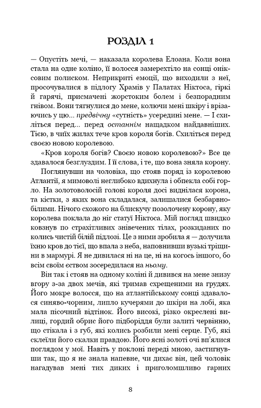 Маківка — законна спадкоємиця престолу Атлантії. За законами королівства там уже давно мала б відбутися зміна влади, та дівчина зовсім не поспішає посісти трон королеви країни, якої геть не знає. Та й як їй правити королівством, у якому не всі готові змиритися з самим її існуванням? Коханий і друзі намагаються уберегти Маківку й довести, що упереджених атлантійців небагато, але вони не всемогутні. До того ж внутрішній ворог — не єдиний, що їй загрожує. Королева Солісу Ілеана, колишня опікунка і кровна родичка Маківки, досі вважає дівчину-втікачку своєю власністю, а край атлантійців — законною здобиччю. Давні таємниці, чимале військо, потужна зброя — Ілеана має чим здивувати суперників. Що Маківка зможе їй протиставити?