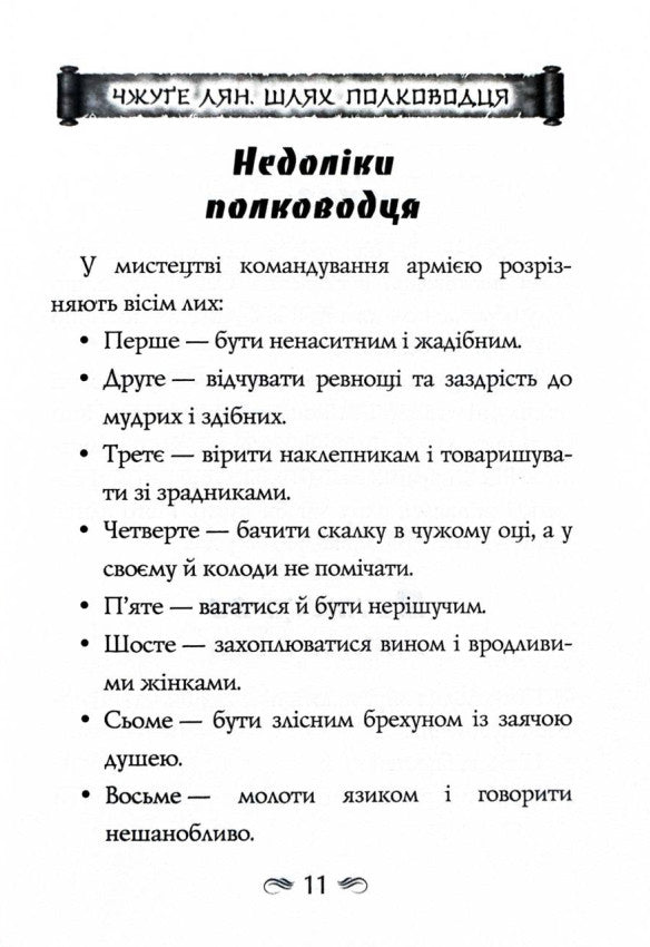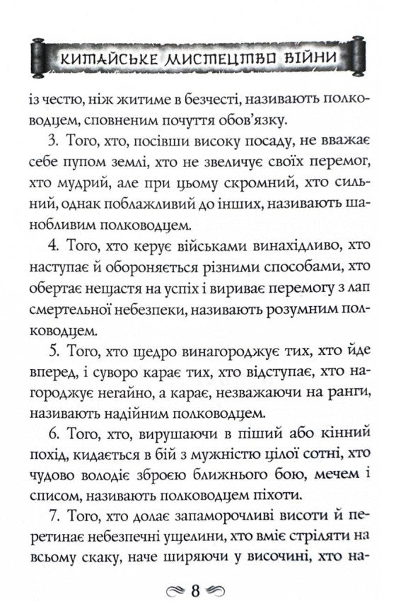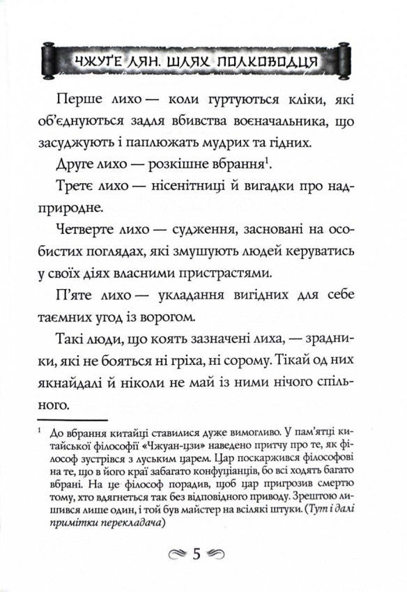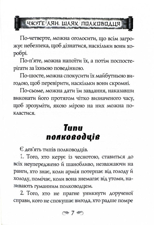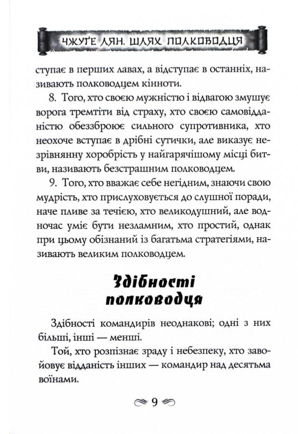 Пропоноване видання знайомить читача з воєнними трактатами видатних китайських стратегів Чжуґе Ляна та Лю Цзі. Обидва були непереможними полководцями та мудрими державними діячами, які на практиці довели своє осягнення мистецтва війни. У книзі «Шлях полководця» Чжуґе Лян аналізує як питання воєнної стратегії і тактики, так і якостей полководця та принципів самовдосконалення. Проблему війни автор розглядає через призму ідеалів справедливості та служіння народу. «Уроки війни» — найбільш відомий воєнний трактат Лю Цзі, знаного також своїми пророцтвами, тому його часто називають «китайським Нострадамусом». Власне, це збірка тактичних порад та історичних прикладів, наведених для ілюстрації окремих настанов. Книга стане в пригоді не лише військовим і діловим людям, але й усім, хто розуміє практичну цінність східної мудрості та прагне дізнатися надійні способи досягнення успіху.