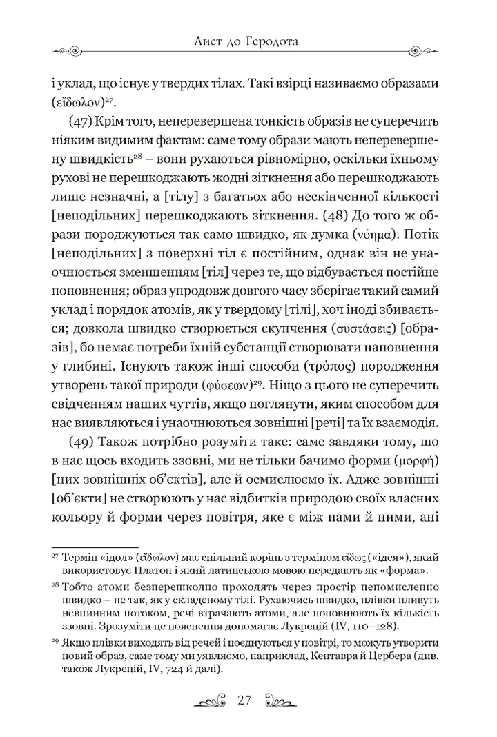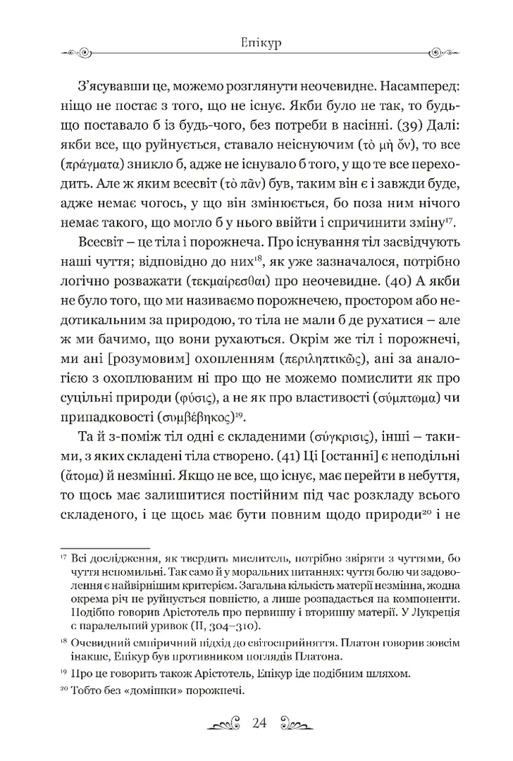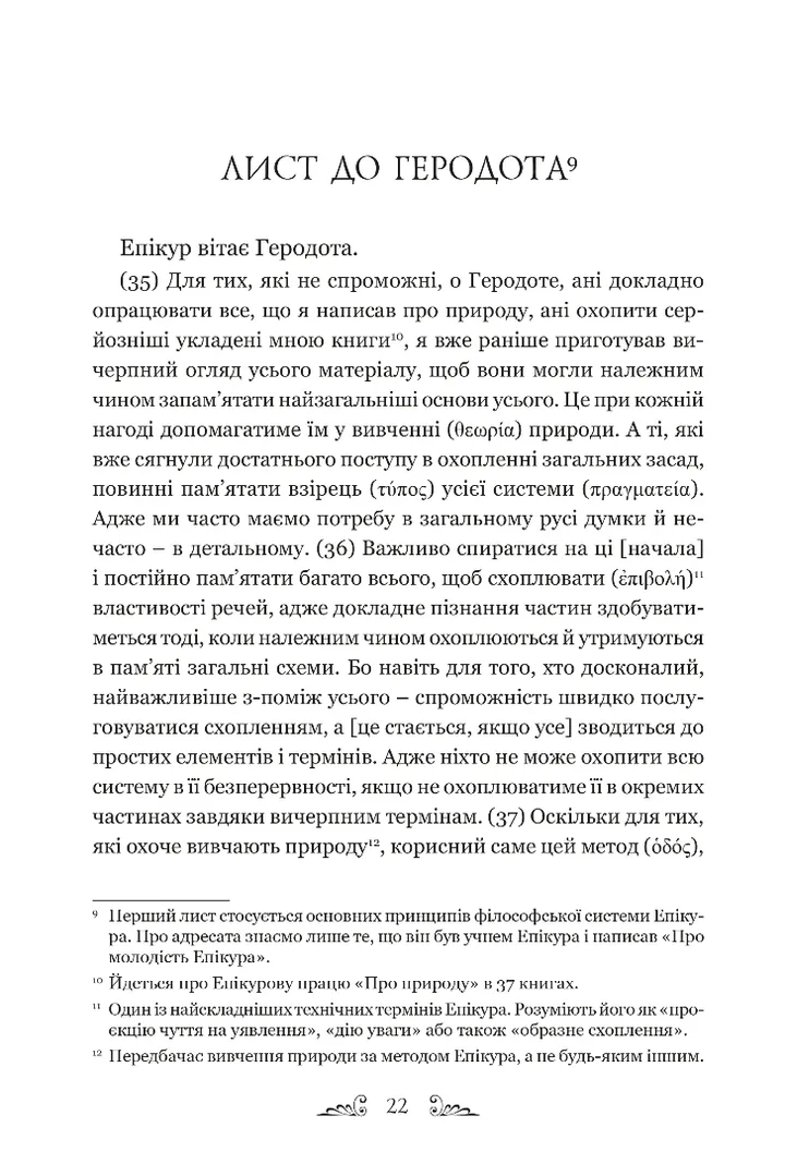 «Не вдавай, що вивчаєш філософію, а справді вивчай її: адже нам треба не вдавати, що ми здорові, а справді бути здоровими», – заохочує нас загадковий грецький філософ Епікур. Український читач уперше отримує змогу спробувати на зуб читво, яке історії вдалося врятувати і донести до наших днів. Ославлений як гедоніст, Епікур і справді найбільше дбав про те, щоб життя прожити в задоволення, ще й інших цього навчав. Однак шлях до задоволення, в його розумінні, пролягає аж ніяк не через супермаркет. Епікур виписує рецепти справжнього задоволення, хоч не завжди розбірливо, як це часто буває з рецептами. Передмова і післямова перекладача мають допомогти правильно зрозуміти ці рецепти.