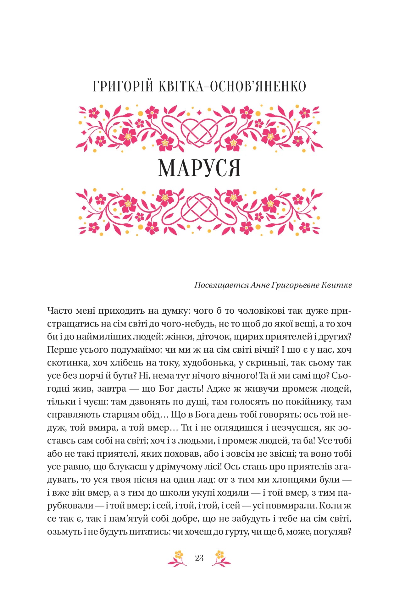Любов різна, як життя, і сильна, як смерть. У цій антології зібрано твори про любов. Про шал і пристрасть, ніжність і турботу, про еротичний потяг, дружню прихильність, відповідальне партнерство, безжурну гру, хворобливу одержимість, про жертовність і про егоїзм. Про любов по-українськи вам розкажуть 22 автори й авторки у 24 текстах: від Квітки-Основ’яненка до наших 20-х — від «Марусі» до «Марії радості».Українська любовна класика захоплює й дивує глибиною психологічного й філософічного осмислення, стильовим розмаїттям, широкою емоційною палітрою, яскравими образами персонажів і персонажок, свіжими рефлексіями, влучними афоризмами й соковитою мовою.