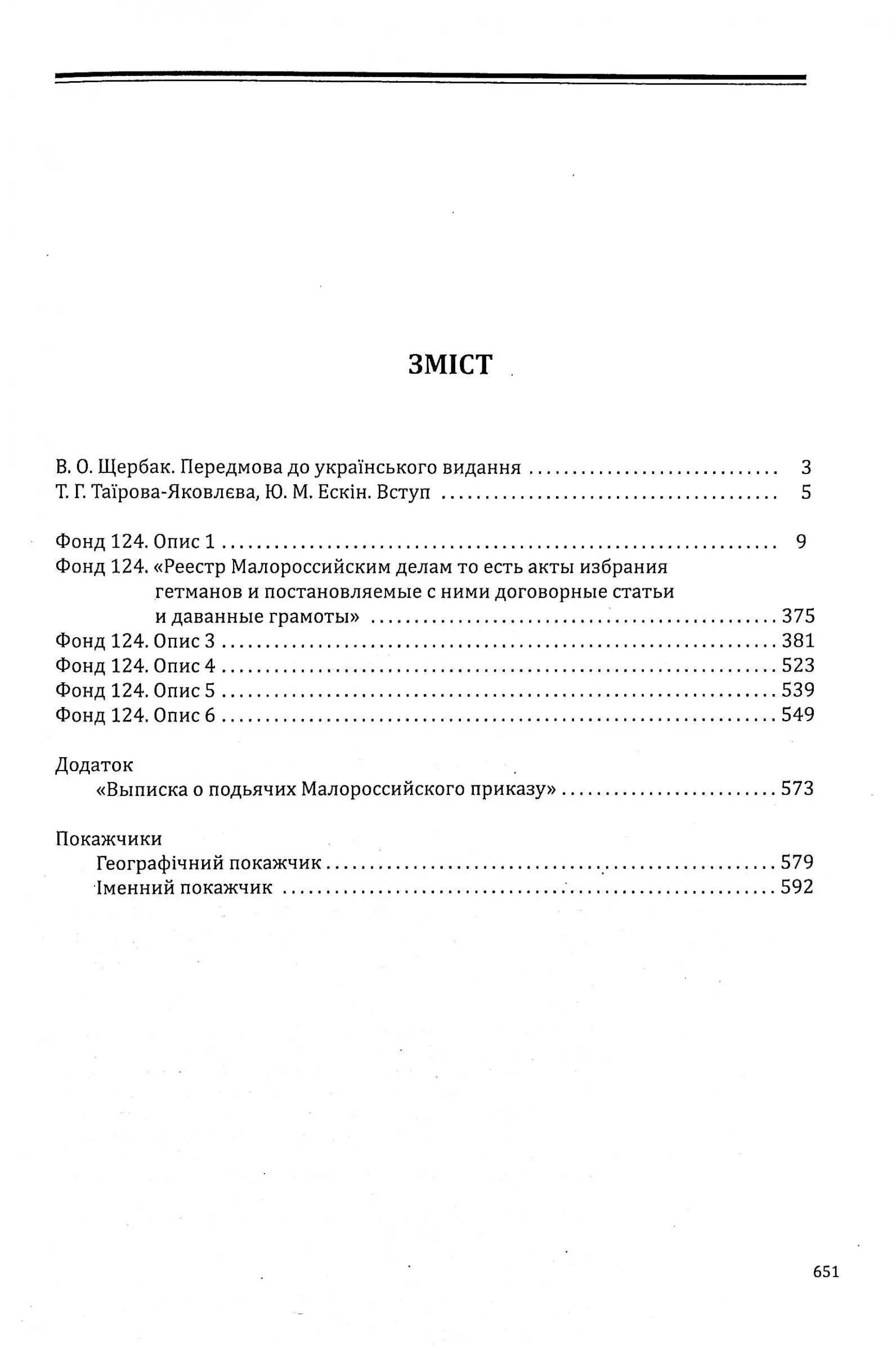 З історичних причин на сьогодні переважна більшість документів з історії України XVI–XIX ст. зберігається в архівах Росії, до яких українські дослідники не мають доступу. Тож на сьогодні стоїть нагальна потреба донести ці документальні скарби до наших фахівців та всіх, хто цікавиться українським минулим, адже їх дослідження дозволять глибше зрозуміти цей драматичний період історії Української держави та засвоїти його уроки. У книжці опубліковано описи фонду 124 «Малоросійські справи», що зберігаються у Російському державному архіві давніх актів. До нього увійшли матеріали Посольського наказу, Малоросійського наказу, Посольської канцелярії та Колегії закордонних справ. Описи дають змогу ознайомитися зі складом фонду, окреслюють хронологічні рамки, розкривають специфіку та зміст збережених документів. Видання стане у пригоді українським поціновувачам та дослідникам історії, студентам та викладачам.