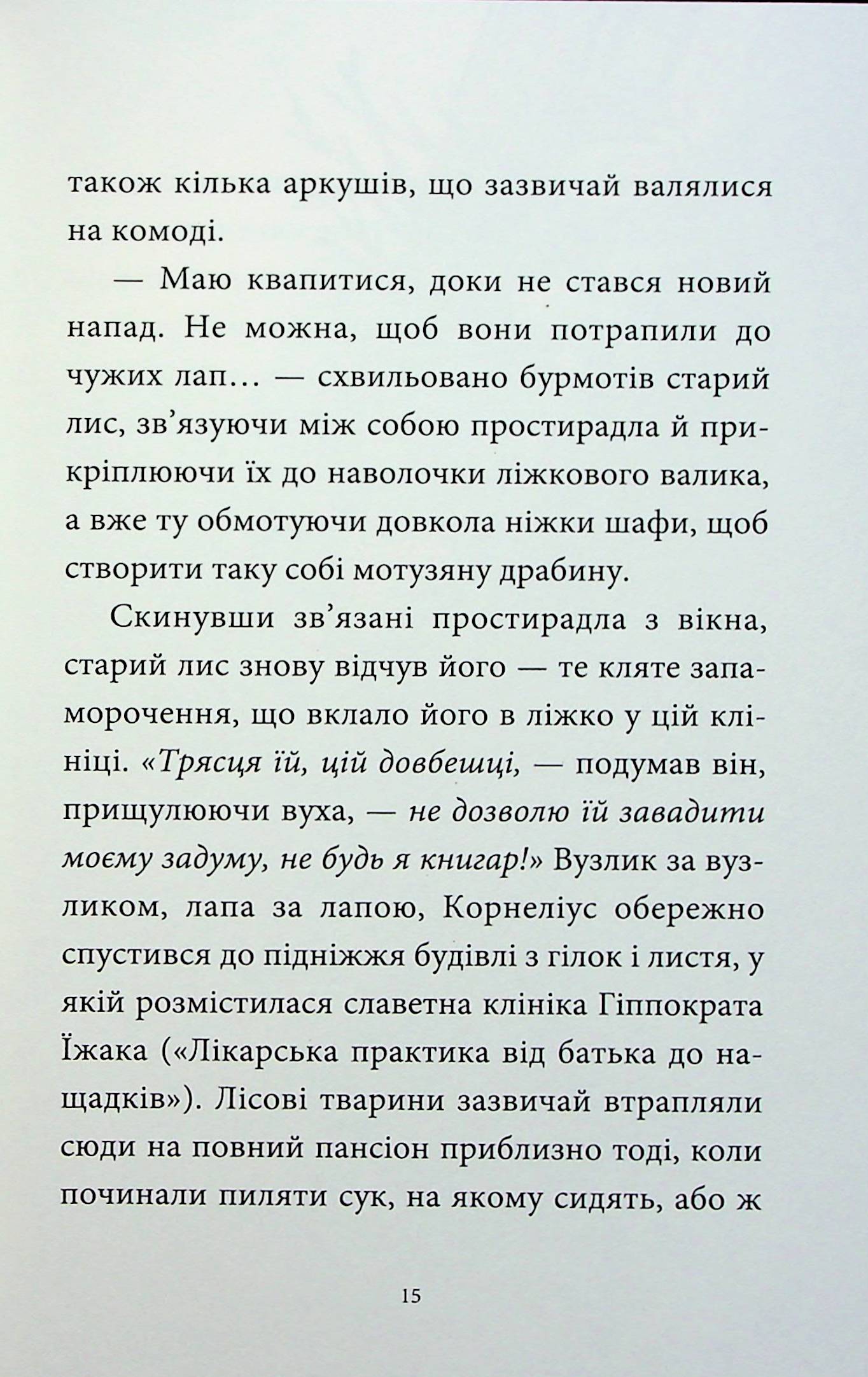 Відбувши осінні свята за бурхливою торгівлею, втомлений Арчибальд уже лагодиться повернутися до звичної книгарської рутини, аж тут мер Чарівнокорів ошелешує його новиною: мовляв, лісова книгарня насправді родині Лисів не належить. Законним власником нібито є якийсь зайда: таємничий Селестен Вовк. Розгублений Арчибальд має з’ясувати, що ж коїться. Йому беруться допомагати батько, Жерве Лис, та племінник-розумака — Бартоломе. Можливо, відповідь — у п’яти втрачених щоденниках дідуся Корнеліуса Лиса? Арчибальд рішуче налаштований їх знайти. Та сказати легше, ніж зробити. Здається, перш ніж цілковито піддатися хворобі, яка захопила його глузд, Корнеліус віддав щоденники на зберігання таємному письменницькому братству. Чи зуміє Арчибальд відшукати докази своєї правоти і повернути книгарню?