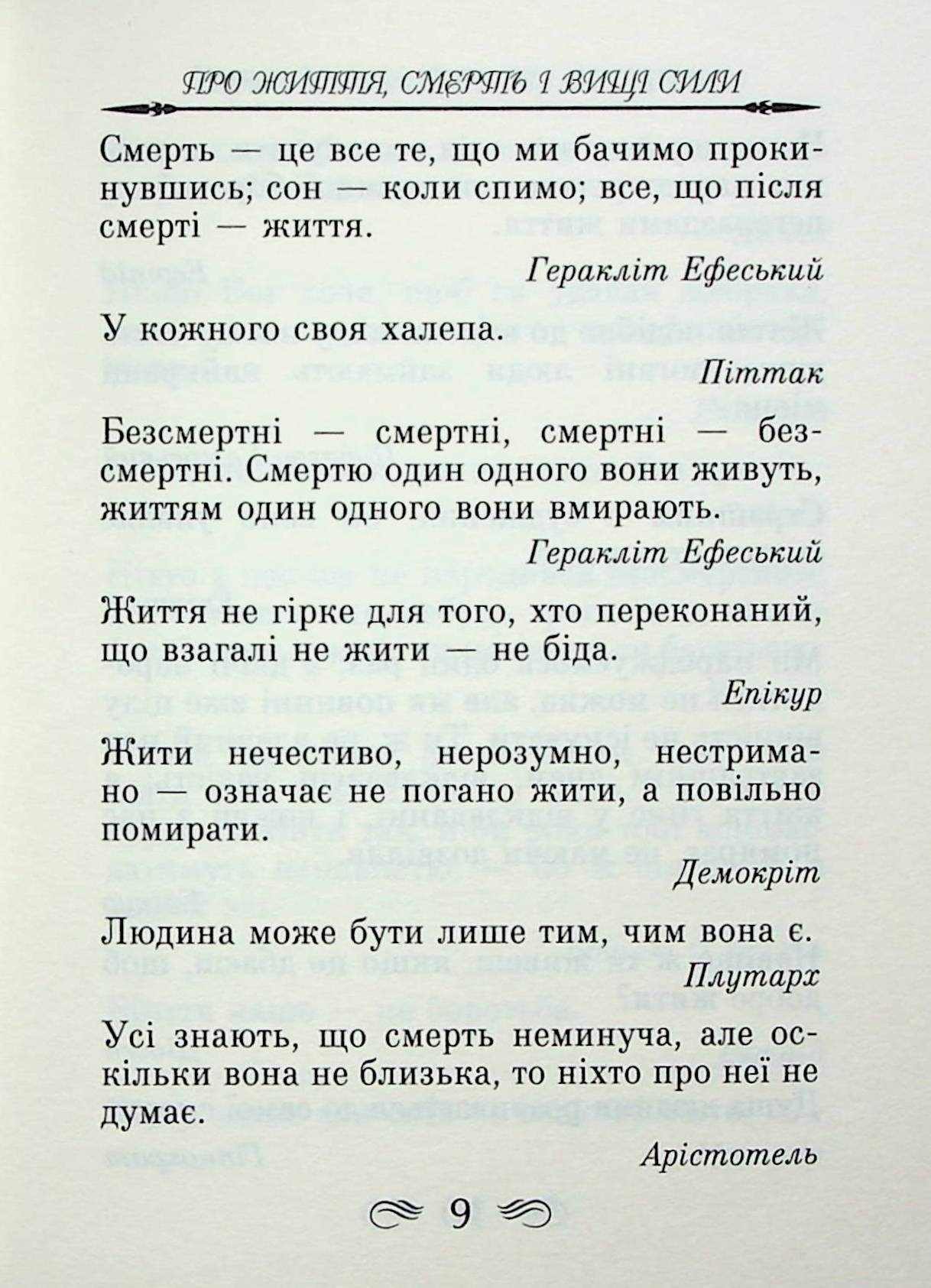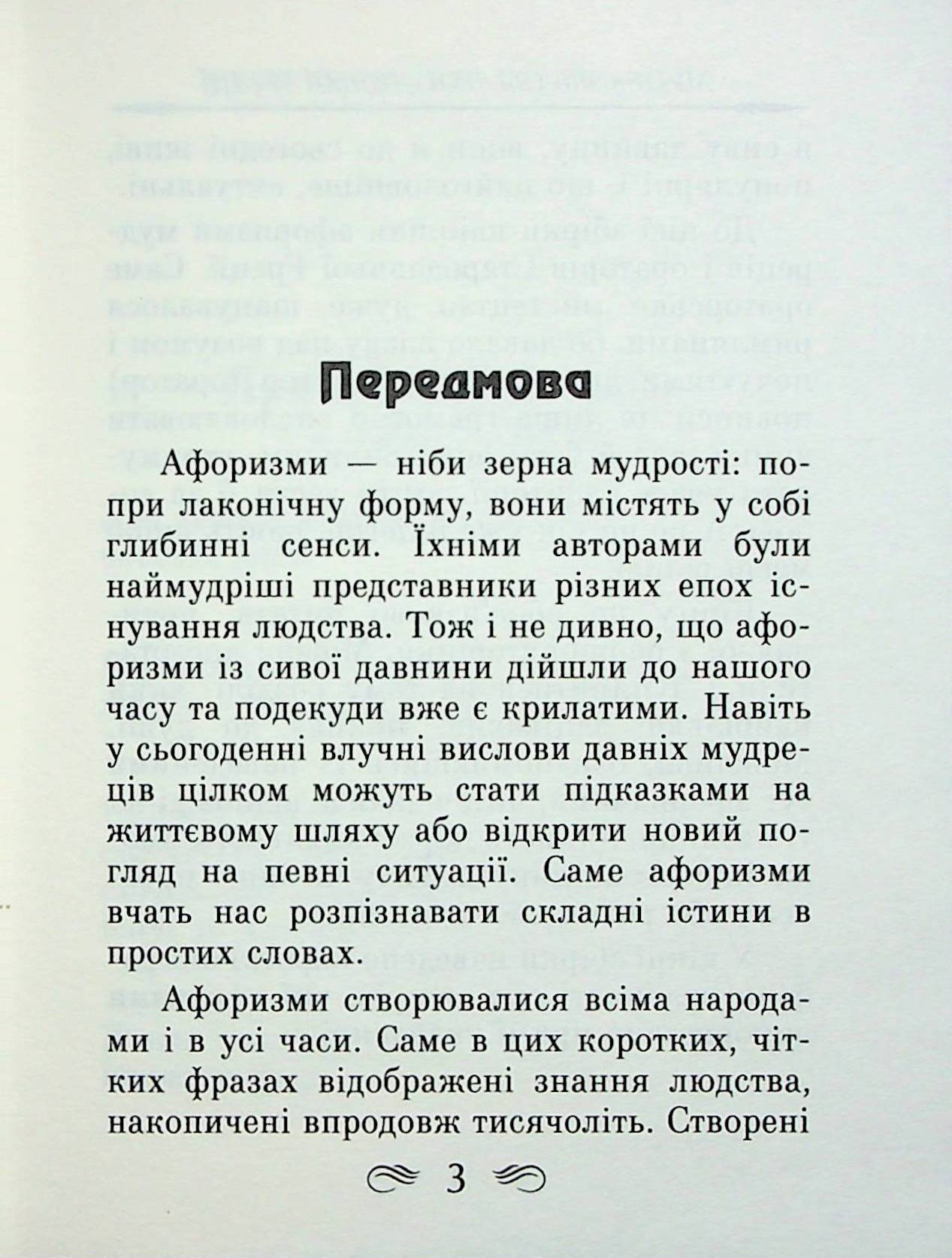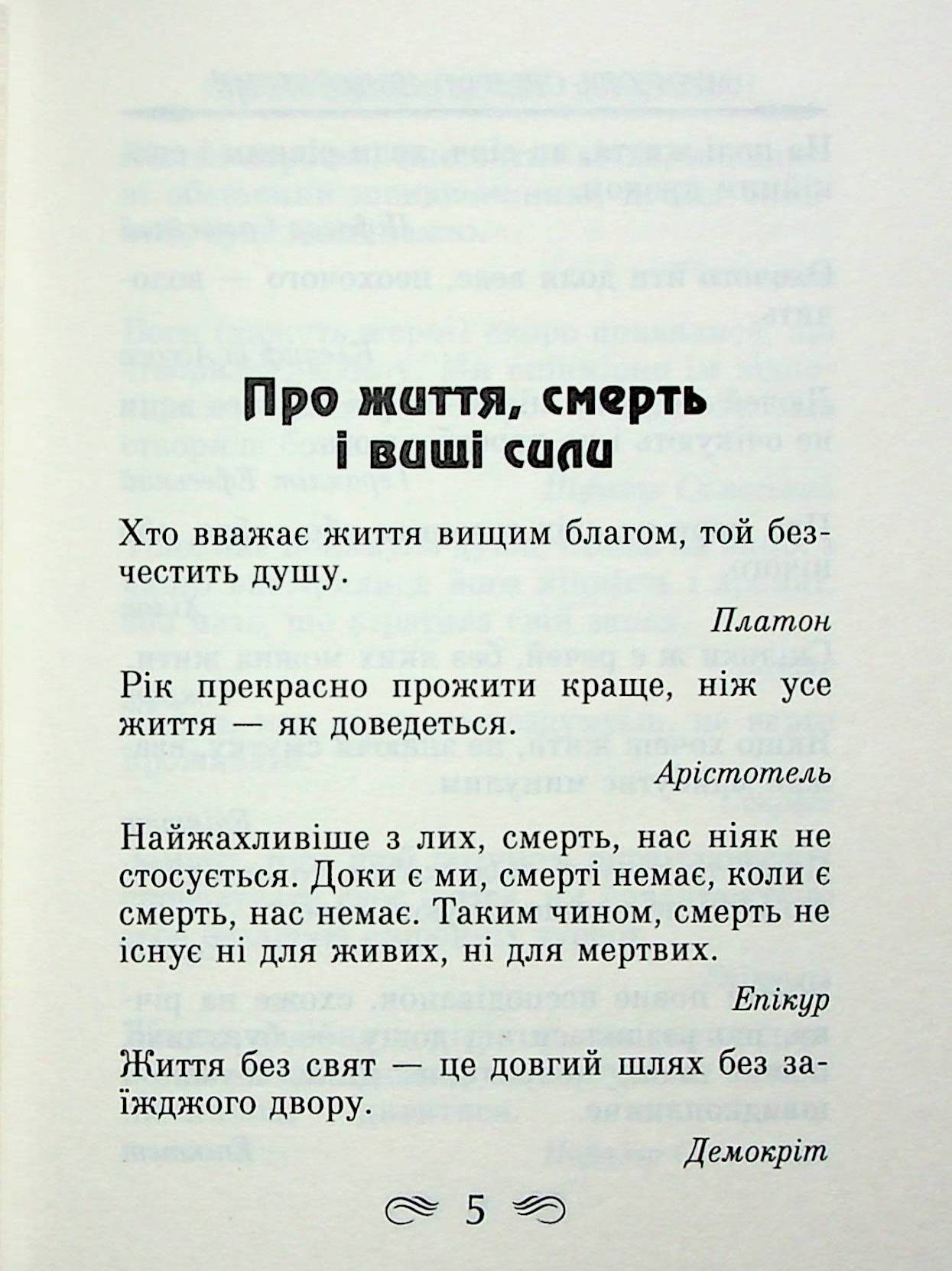 До цієї збірки ввійшли афоризми давньогрецьких філософів, письменників і політичних діячів. У цих лаконічних, але глибоких за змістом висловлюваннях відображено знання людства, накопичені впродовж тисячоліть. Створені ще за часів Стародавньої Греції, вони й сьогодні актуальні, адже допомагають вирішувати нагальні проблеми і завдання повсякденного життя. У кінці збірки подано короткі біографічні відомості про авторів наведених афоризмів. Книга призначена для широкого кола читачів.