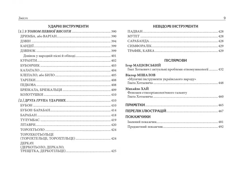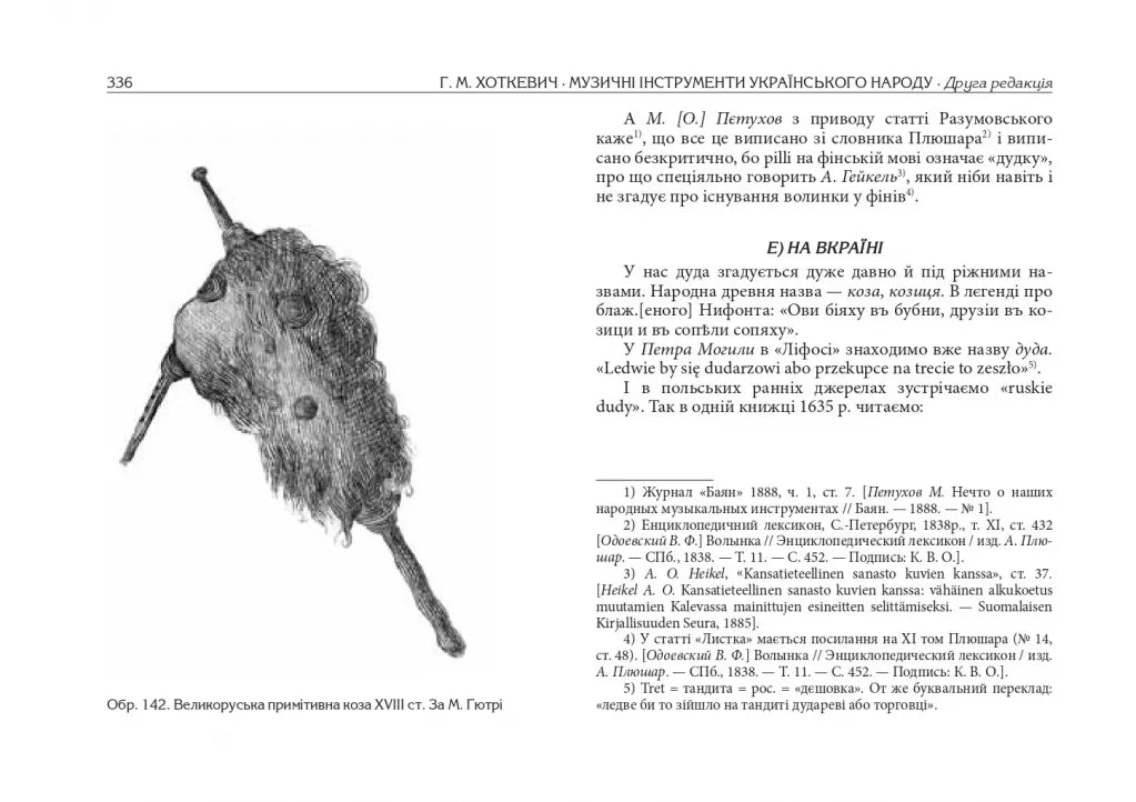 Друга редакція книги «Музичні інструменти українського народу» корифея української культури Гната Мартиновича Хоткевича (1877–1938) чекала на свою публікацію 75 років. В порівнянні із першою редакцією (Харків, 1930), друга редакція безсмертної і єдиної в своєму роді праці Гната Хоткевича не лише вдвічі більша за обсягом, а має відмінності на концептуальному й теоретичному рівнях. Книга проілюстрована раритетними зображеннями, доповнена цікавими фотобіографічними матеріалами та фаховими статтями найкращих інструментознавців сучасності.