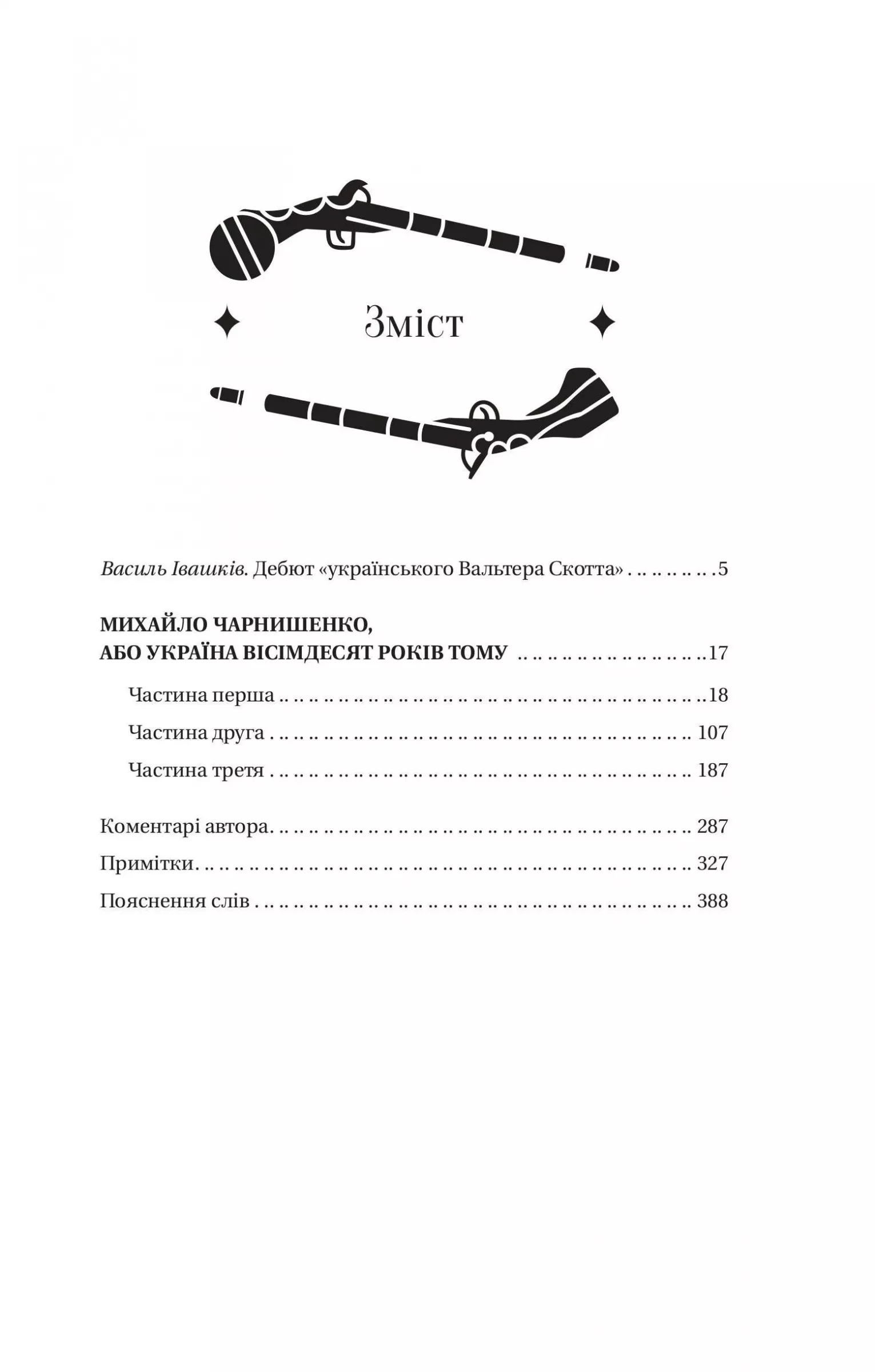Пантелеймон Куліш написав свій перший роман у 23 роки. Молодий автор саме вивчав історію України й зачитувався творами Вальтера Скотта. Тому його «Михайло Чарнишенко, або Україна вісімдесят років тому» — це ще й перший український історичний пригодницький роман. Події відбуваються в другій половині ХVІІІ століття — часи занепаду Гетьманщини. Звертання до минулого, напружена дія, гостра інтрига, романтичні пристрасті, демонічні натури, безжальний вибір, що постає перед головним героєм, і сувора доля, яка карає тих, хто не шанує історії і традицій, — усе це елементи «вальтерскоттівського» рецепта і дух романтизму, який панував у тогочасній культурі.