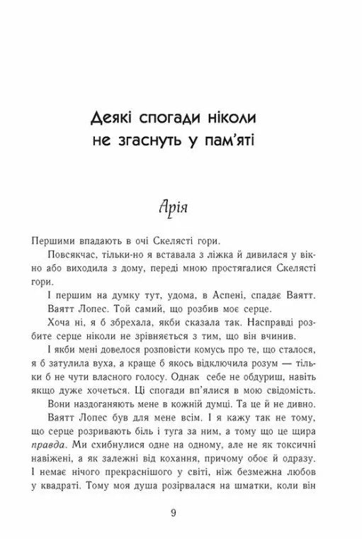 Після дворічного навчання Арія повертається додому, щоб допомогти хворій мамі у веденні сімейної справи. Проте рідні краєвиди пробуджують у пам’яті не лише приємні спогади з дитинства, а й огиді сцени зради, що два роки тому і змусила дівчину втекти подалі від дому. Та коли Арія знову зустрічає Ваятта — того, хто і став причиною її страждань, — то усвідомлює, що досі кохає його.Перспективний гравець НХЛ, зухвалий і впевнений у собі Ваятт звик брати від життя все — допоки не зробив помилку, що все перекреслила. Він зрадив Арії, хоч ніколи не хотів її втратити. Разом із коханою він утратив і себе. Та коли Арія повертається до Аспена, в серці хлопця з’являється надія. Чи зможе він повернути довіру дівчини, яку колись так бездумно знехтував?