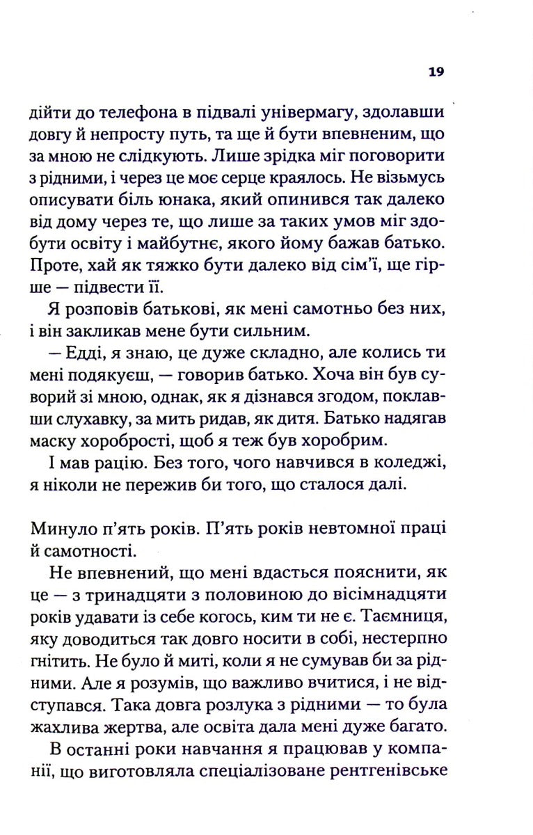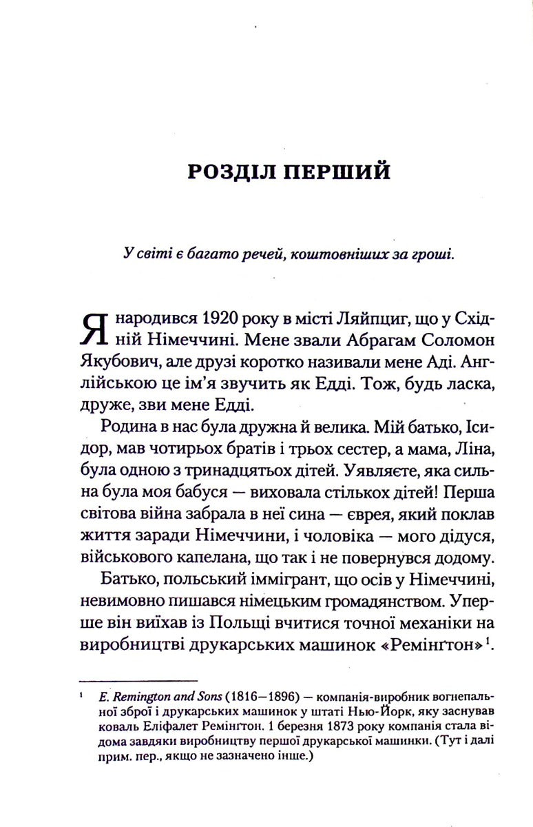 Друзі коротко називали мене Аді. Англійською це ім’я звучить як Едді. Тож, будь ласка, друже, зви мене Едді… Я прожив сто років і знаю, як це — дивитися злу в очі. Я бачив найгірше в історії людства: жахи концентраційних таборів, зусилля нацистів знівечити моє життя та життя дорогих мені людей. Але тепер вважаю себе найщасливішим у світі. За всі ці роки я зрозумів одне: життя може бути прекрасним, якщо зробити його прекрасним. Я розповім тобі свою історію. Подекуди вона сумна, у ній багато мороку й чимало горя. Проте зрештою це щаслива історія, адже щастя — це наш вибір. Вибирати тобі. Я розкажу як.