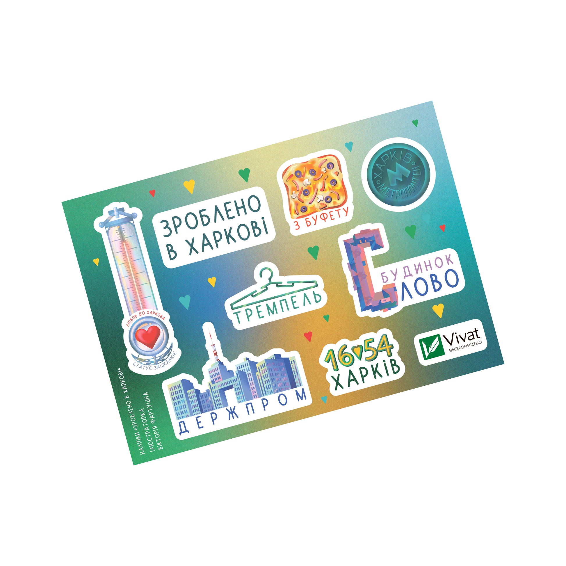 Стикерпак «Зроблено в Харкові» — це яскравий набір наліпок, що втілюють дух та унікальність міста, рідного для видавництва Vivat.У стикерах відтворено найвиразніші символи Харкова: від народженої тут лексичної родзинки, що прикрасила слобожанську говірку, й будинку «Слово» як образу творчої епохи до піци з «Буфету», яка багатьом нагадує про студентські часи, та історичного жетона харківської підземки.Ламіновані глянцеві стикери прикрасять ваш нотатник, телефон чи ноутбук згадкою про Харків — сучасний, але з багатою історією, стильний, творчий, такий, яким ми його любимо💚
