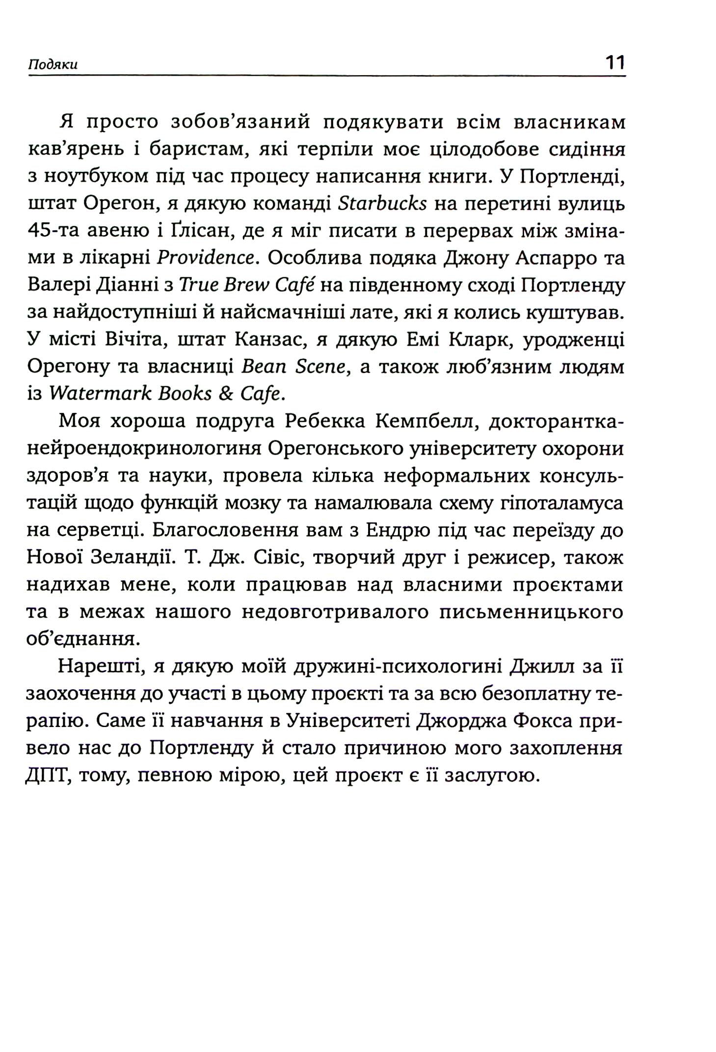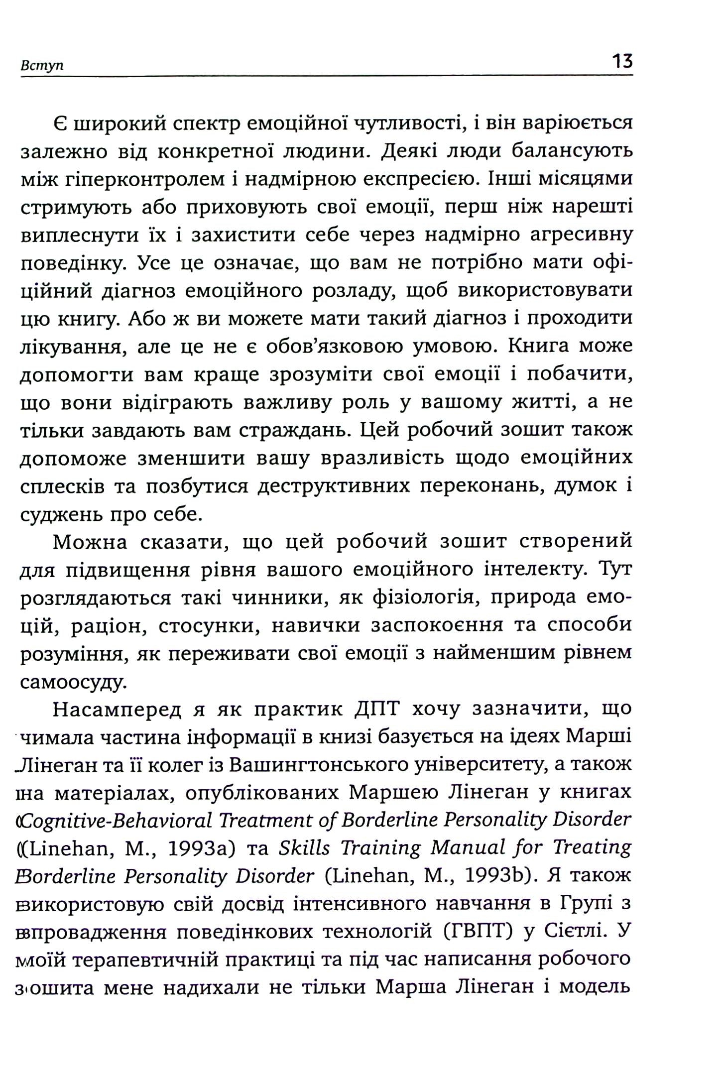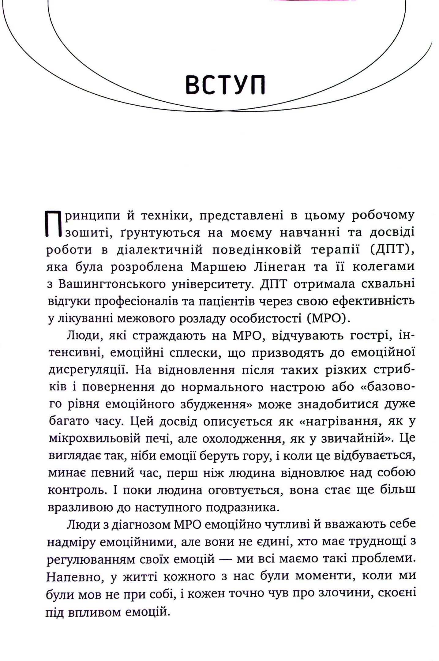 Робочий зошит Скотта Е. Спрадліна «Не дозволяйте емоціям керувати вашим життям. Як діалектична поведінкова терапія допоможе контролювати себе» являє собою посібник з опанування власних емоцій за допомогою діалектичної поведінкової терапії (ДПТ). Він буде корисний кожному, хто хоче зменшити свою вразливість до емоційних сплесків та позбутися деструктивних переконань, думок і суджень про себе. Завдяки ньому ви дізнаєтеся: - Як проживати смуток, злість і страх. - Як розуміти свої почуття. - Як розплутати клубок емоцій. - Як посилити позитивні емоції. - Як навчитися заспокоювати себе. - Як чітко виражати свої почуття. - Як розірвати коло депресії та тривоги. Скотт Е. Спрадлін — магістр, фахівець із діалектичної поведінкової терапії.