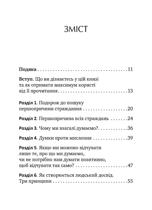 Дізнайтеся, як подолати тривогу, невпевненість у собі та самосаботаж, не покладаючись на мотивацію чи силу волі. У цій книжці ви дізнаєтеся про першопричину всіх психологічних та емоційних страждань і про те, як досягти свободи розуму, щоб без зусиль творити життя, про яке ви завжди мріяли. Хоча біль неминучий, страждання необов'язкове. Ця книга пропонує абсолютно нову парадигму і розуміння того, звідки береться наш людський досвід, що дозволяє нам покласти край власним стражданням і творити те, що ми хочемо відчувати в будь-який момент.