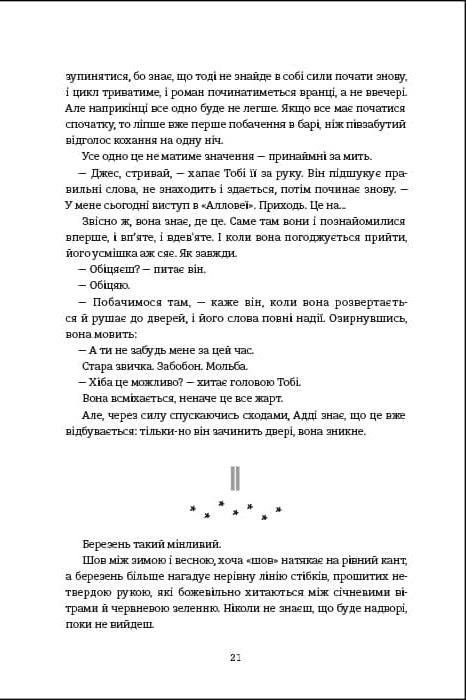 Проте одного дня, триста років по тому, все змінюється, коли Адді в одній непримітній книгарні натрапляє на юнака, який пам’ятає її ім’я.