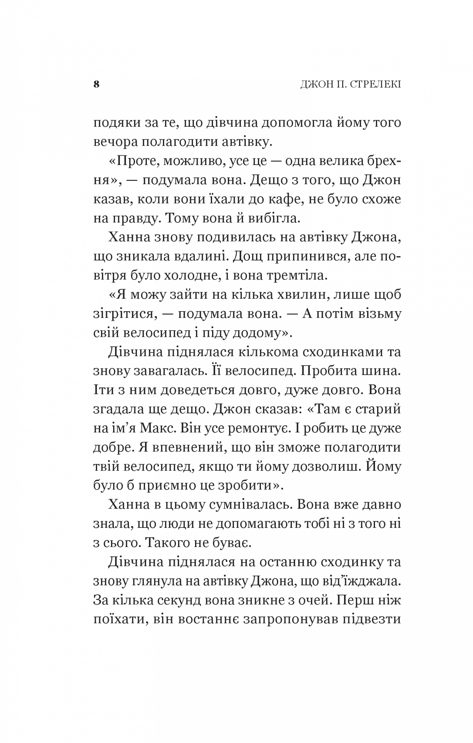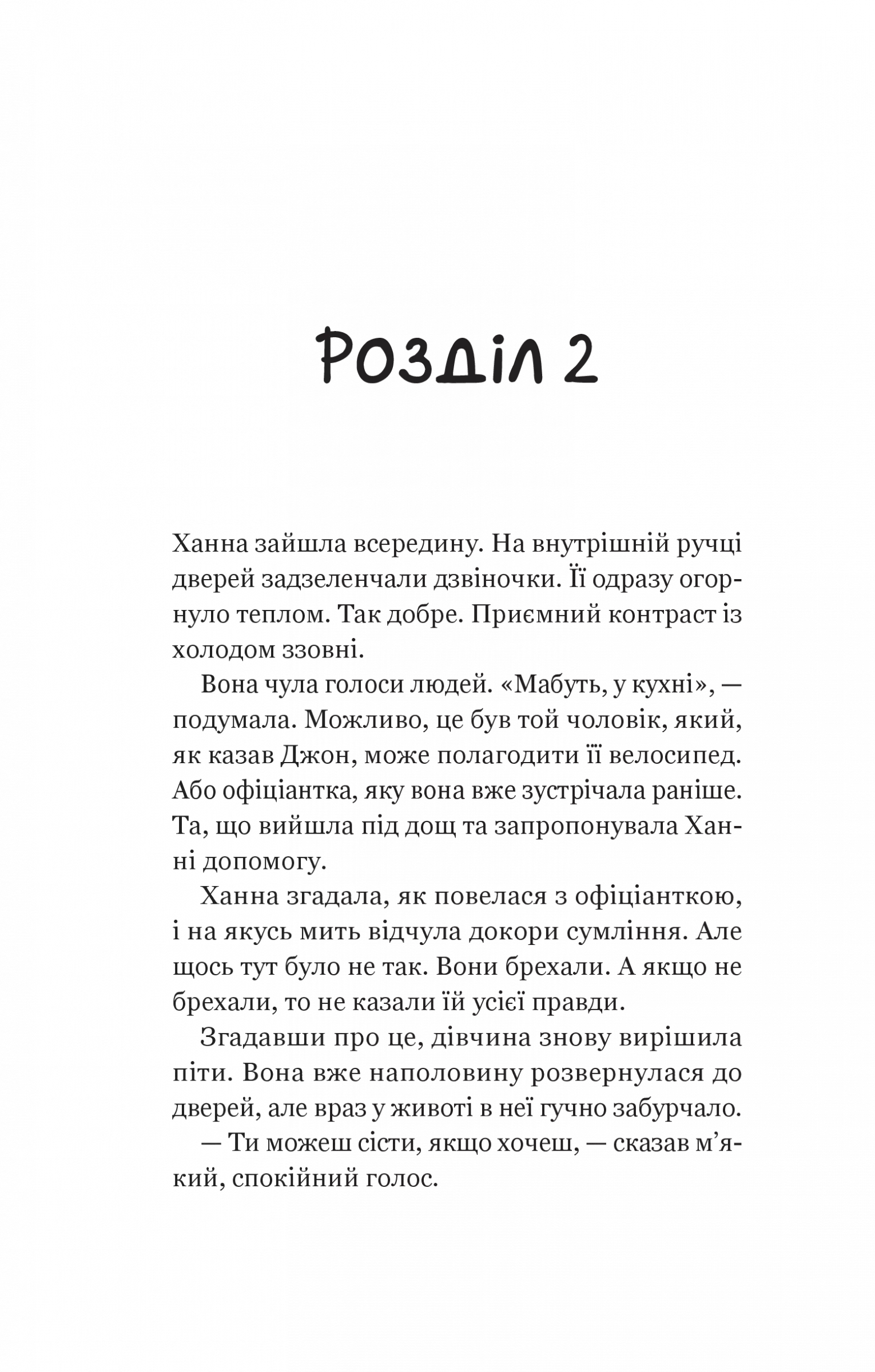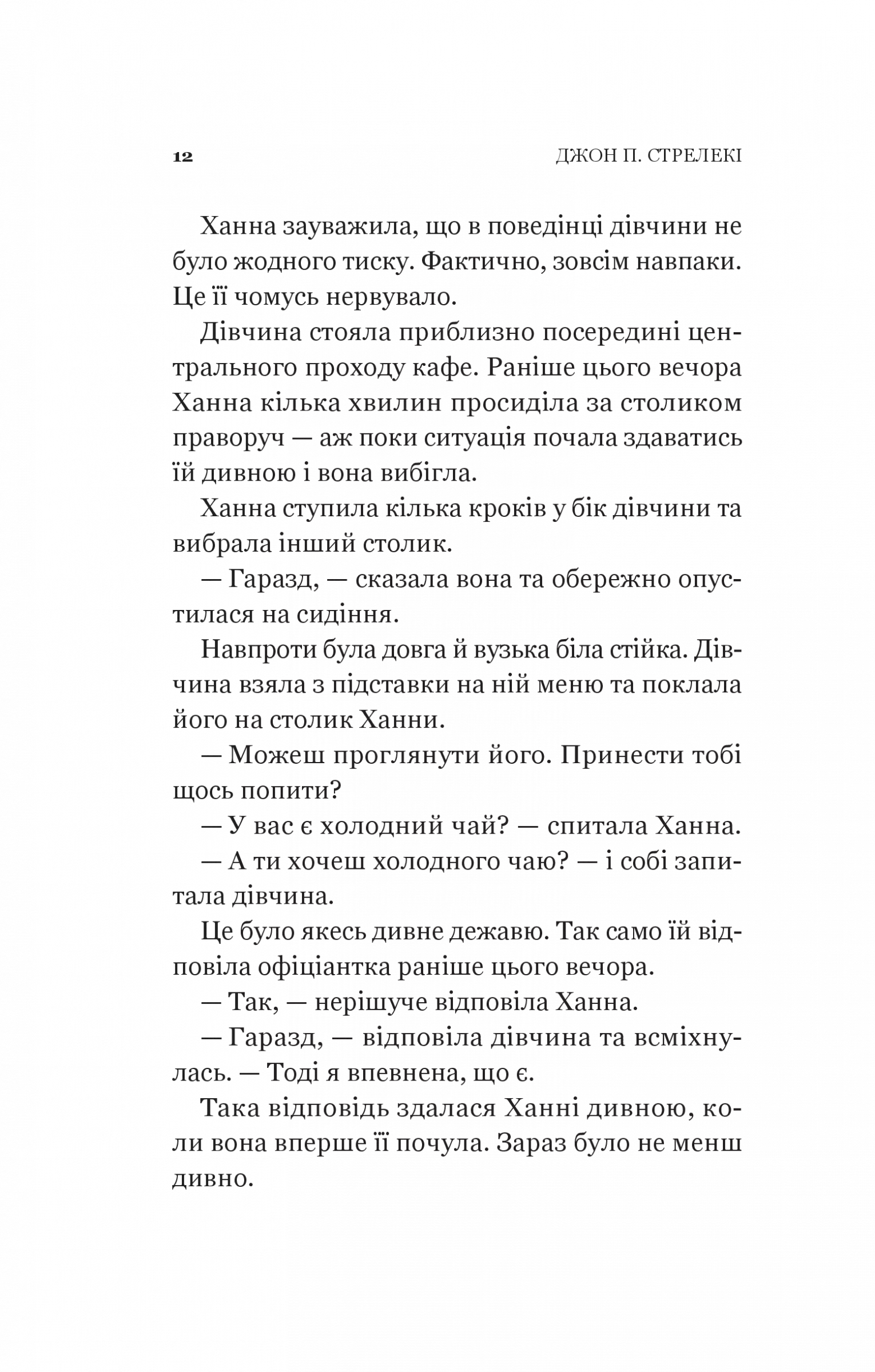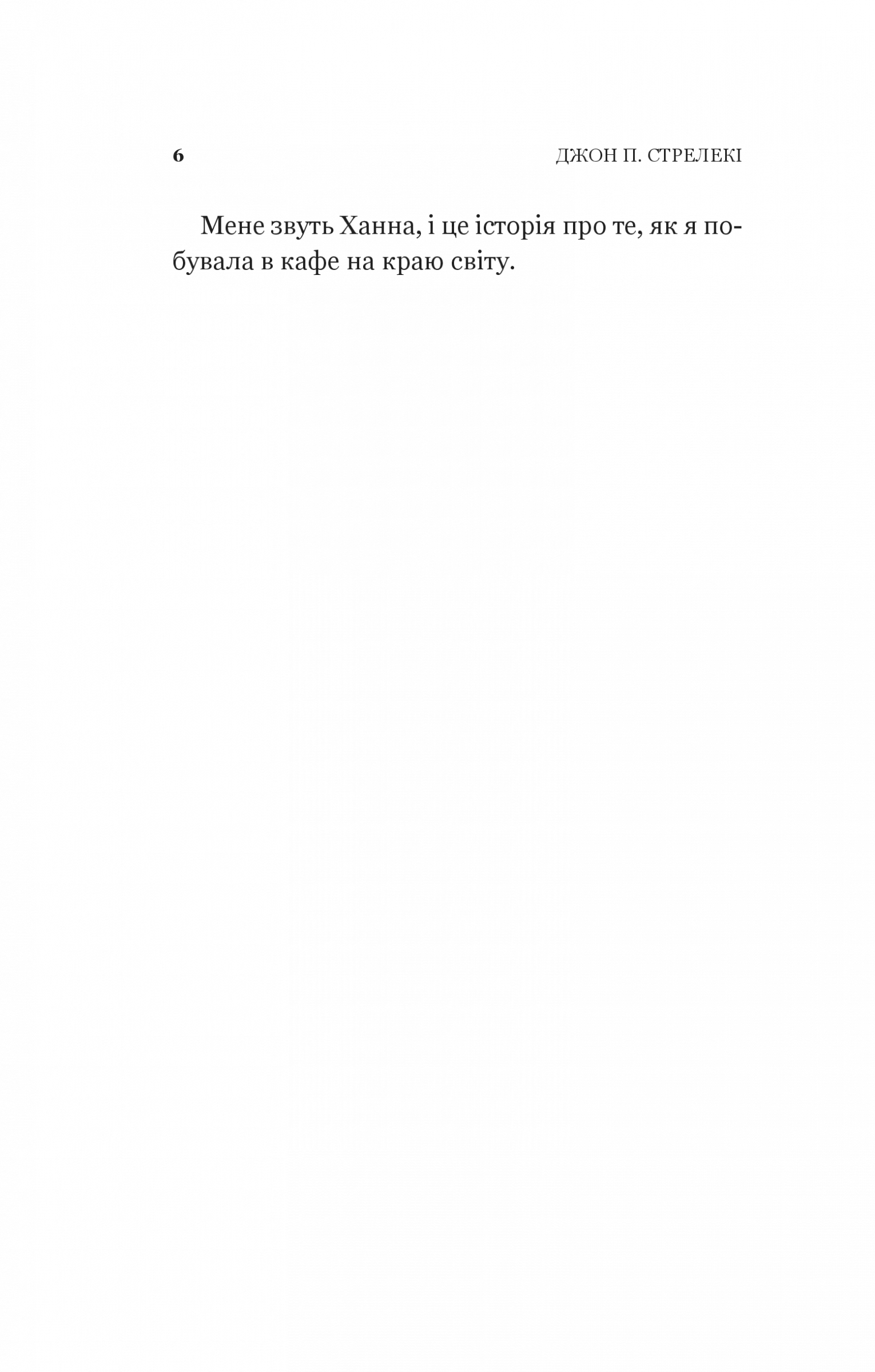 Ханні п’ятнадцять, але вона вже багато пережила. Їй завжди бракувало батьківської уваги, тож мусила піклуватися про себе самотужки. Дівчина почувалася непотрібною. Була переконана, що світ — небезпечний і недобрий. Чимало речей у цьому кафе видалися їй дивними, а питання на звороті меню схвилювали: Хто ви? Звідки ви будете? Чому ви тут? Ханна почала обговорювати їх із привітним персоналом і відкрила для себе світ нових можливостей. Так, ніби вона потребувала окулярів, щоб побачити те, про що навіть не підозрювала. Хай як складається життя, ми завжди маємо вибір і вирішуємо, яким воно буде. А ви готові замовити власну реальність?