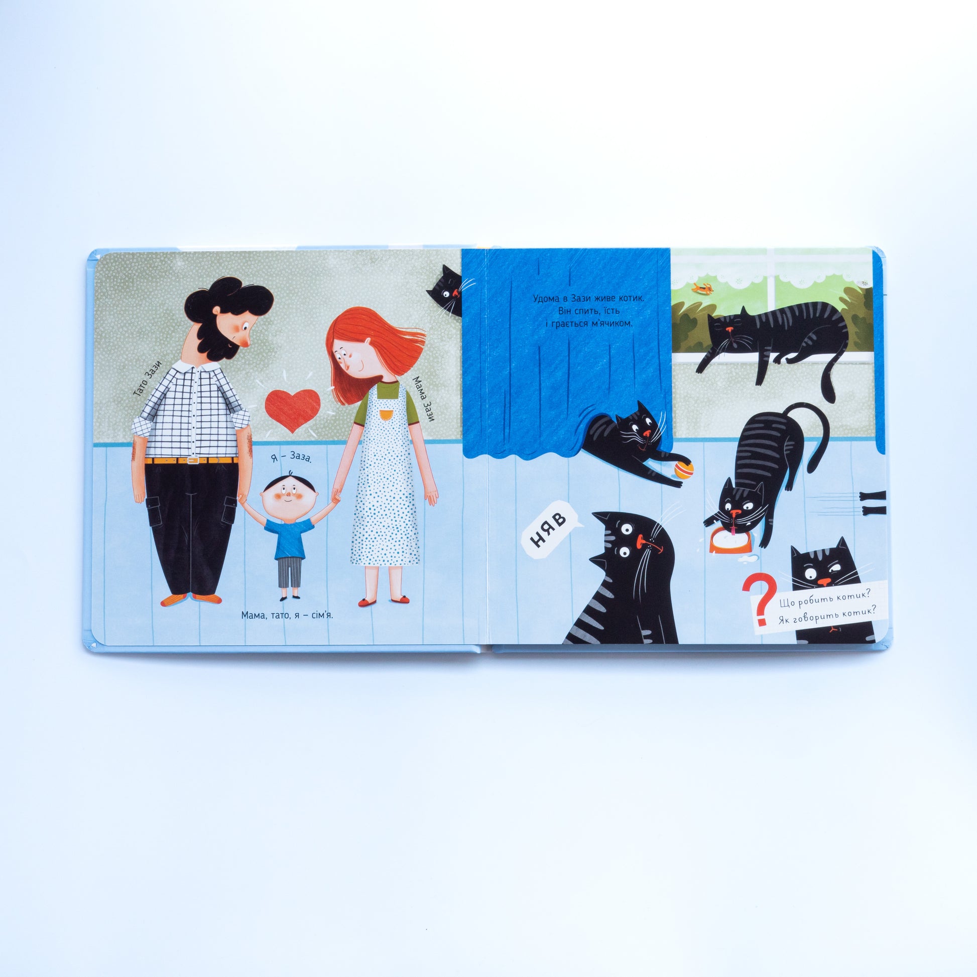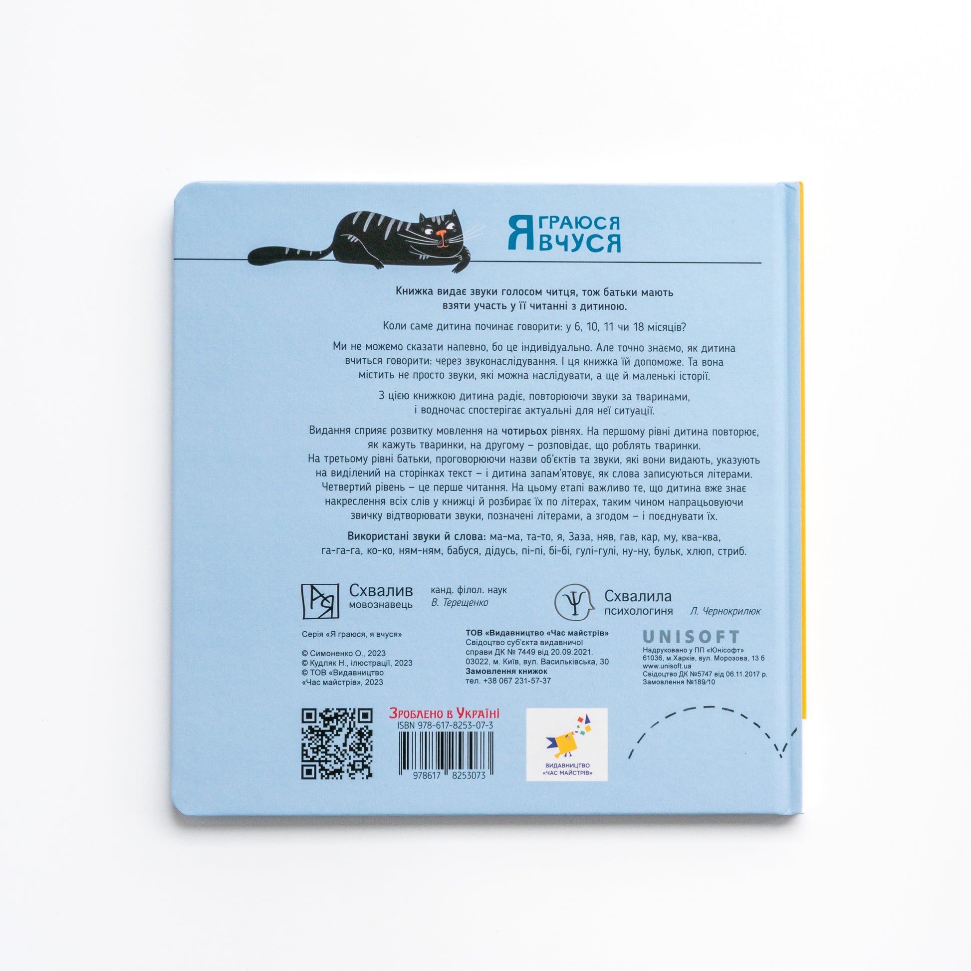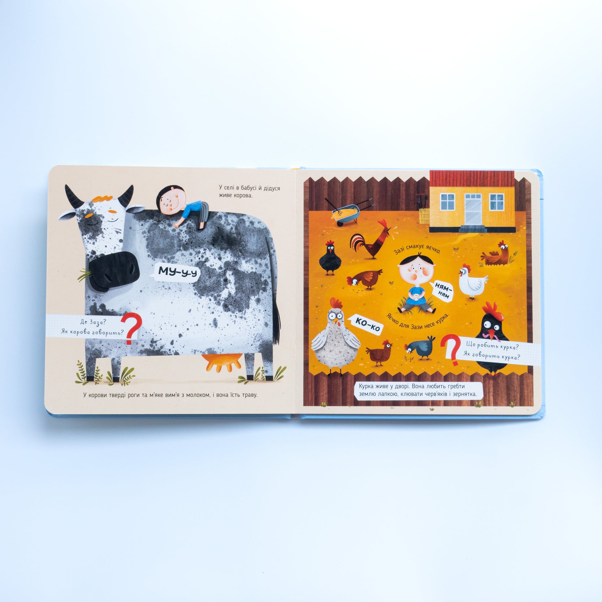 З цією книжкою дитина радіє, повторюючи звуки за тваринами, і водночас спостерігає актуальні для неї ситуації.