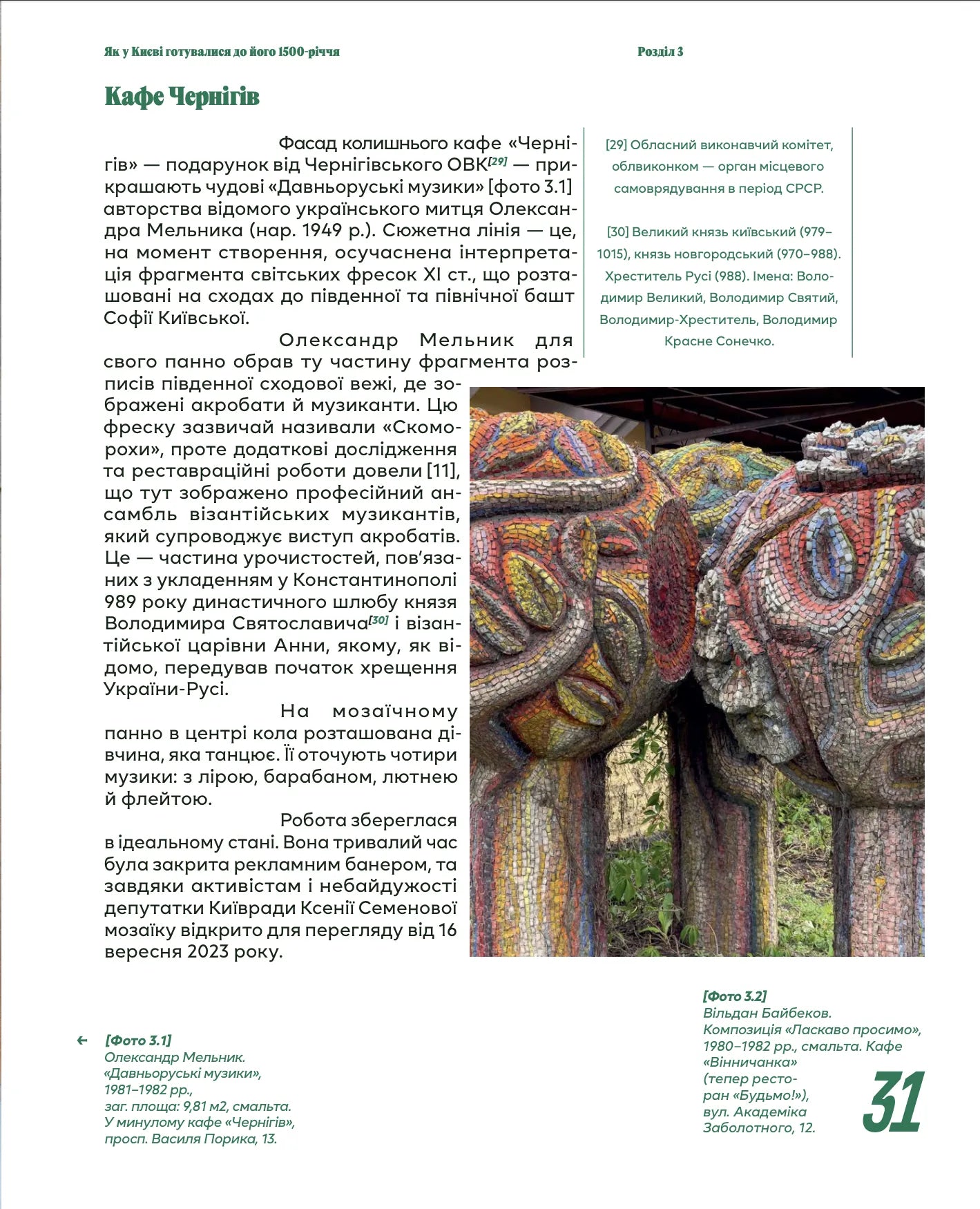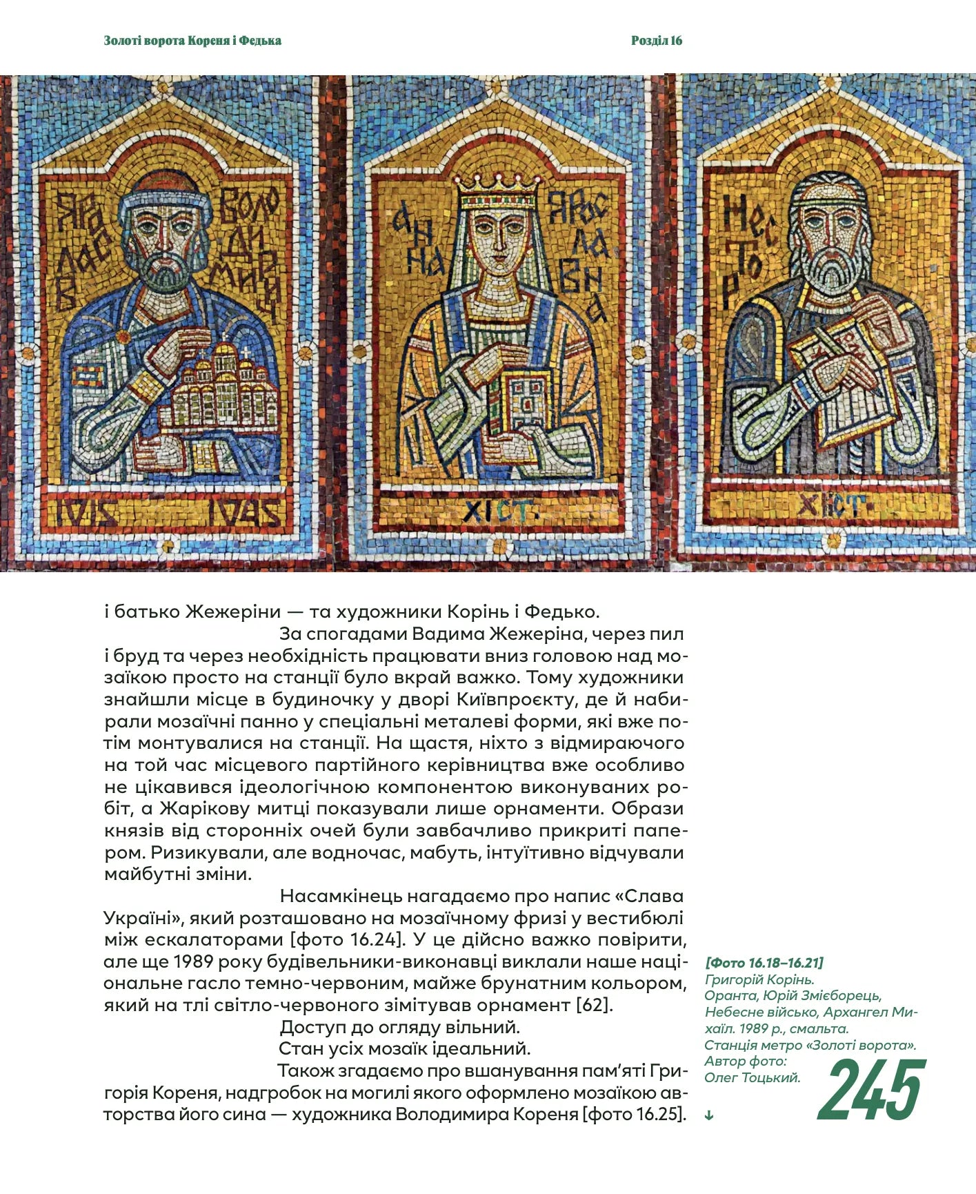 Ця книга є результатом багаторічної дослідницької та архівної роботи, розпочатої у 2019 році з фотофіксації київських монументально-декоративних творів та пошуку їхніх авторів і історії створення. У центрі уваги — мистецтво 1960–1980-х років, яке, попри ідеологічну заангажованість і функцію пропаганди, стало одним із найяскравіших явищ української культури другої половини ХХ століття.Попри ідеологічні рамки, монументалістика цього періоду зуміла поєднати глибину давньоруських іконописних традицій, символіку народного мистецтва та сміливі новаторські прийоми. Саме тому ці твори — не лише «пропаганда в камені та склі», а живий літопис епохи, що вартий збереження й нового прочитання.Ця книга стане відкриттям для тих, хто цікавиться мистецтвом й культурною спадщиною Києва, та запрошенням побачити знайомі міські пейзажі в іншому світлі — як галерею просто неба, сповнену сенсів і візуальної сили.