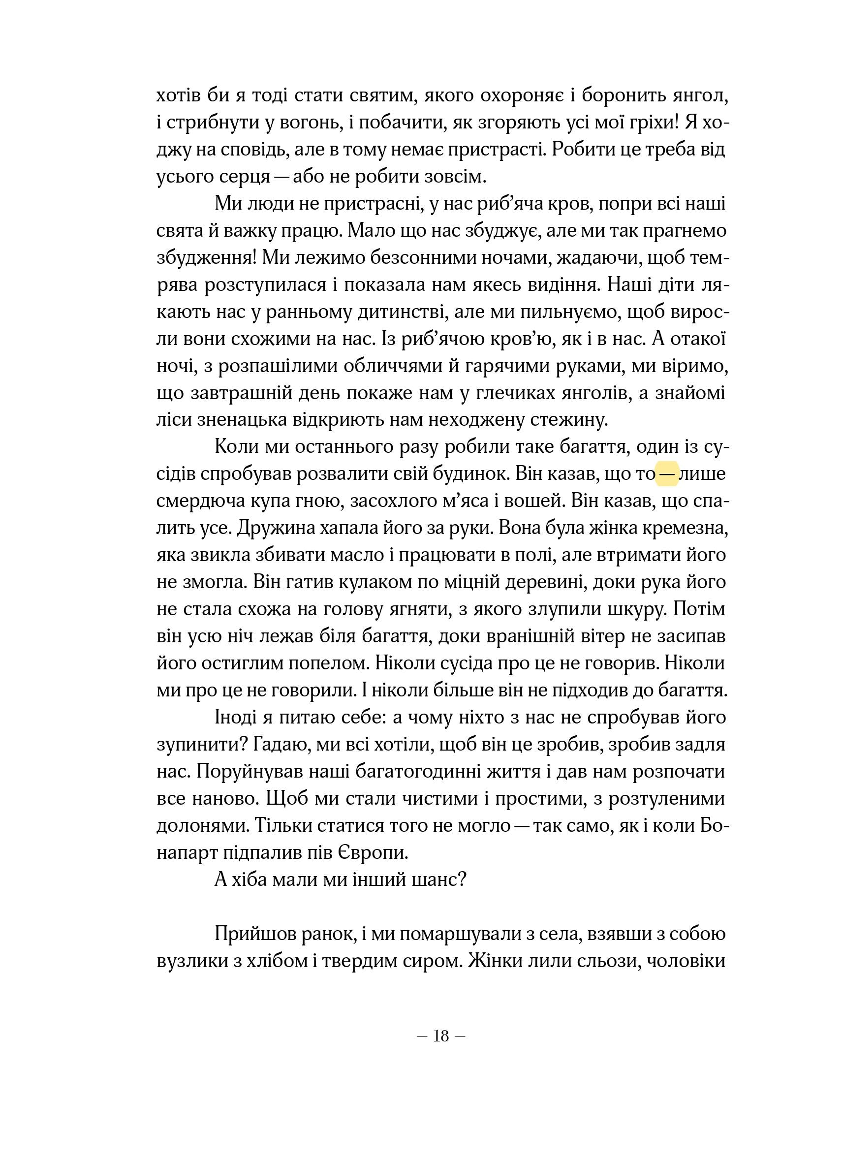 Роман «Пристрасть» входить в список БіБіСі «100 романів, які створили сучасний світ».У цій захопливій, вишуканій книжці Європа часів наполеонівських війн стає місцем дії зворушливого любовного роману. Анрі — наївний французький солдат, який працює на кухні Бонапарта й обожнює цього завойовника, доки його зголодніла й недужна армія починає розпадатися. Втративши ілюзії, прагнучи дезертирувати з безлюдних позицій у сувору російську зиму, юний Анрі зустрічає Віланель, загадкову венеціанку, й закохується в неї. Пристрасть штовхає Анрі на безрозсудні пошуки пригод, де він втрачає свої вірування і переконання й опиняється в емоційному лабіринті, з якого йому, можливо, не вдасться вибратися.Сюжет роману розчиняється в дивовижній суміші міфу, факту й модернізму, а неповторний, заворожливий голос Джанет Вінтерсон сполучає реальність із фантазією, мрією та уявою, створюючи гіпнотичну і приголомшливу оповідь.Переклад та публікацію цієї книжки підтримав Європейський Союз за програмою «Дім Європи».
