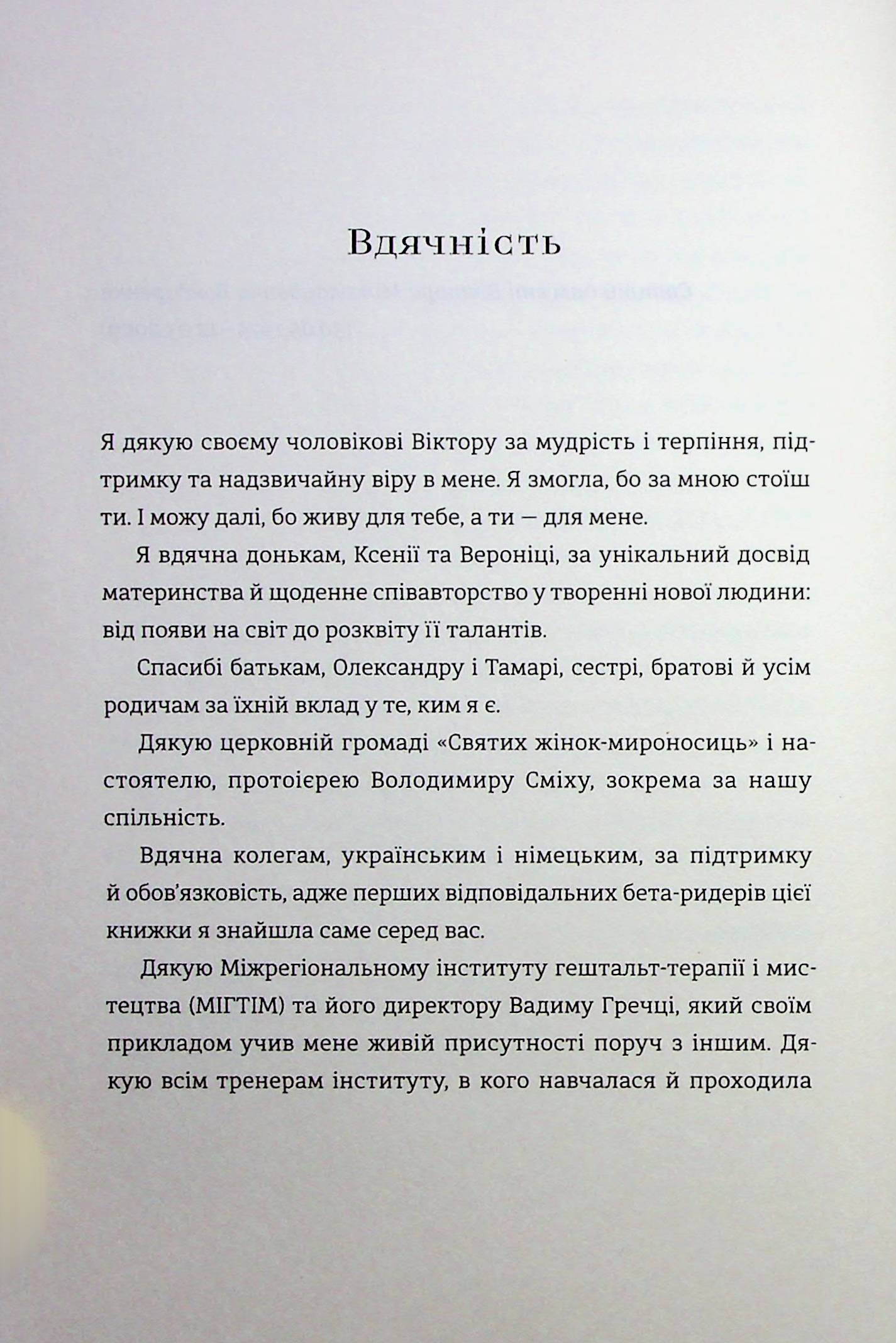Ця книжка від сертифікованої гештальт-терапевтки та письменниці Ганни Крицької про вітальність: життя як найвищу цінність. Вона про те, як прийняти втрату, віднайти себе і масштабувати цей людинотворчий досвід: я — сім’я — Україна — світ. Це автобіографія крізь призму сучасної психології. Чесна і відверта розмова про смерть і життя, втрати і надбання, зневіру і віру, любов умовну і безумовну, еміграцію і повернення додому. На сторінках книжки ви знайдете і авторські психологічні розробки, як-от новий (а насправді відновлений) ракурс нарцисичної травми, а також рецепти, як зарадити тривозі. Книжка про життєдайну силу прийняття і водночас рішучий вибір, якому необхідно навчитися, аби вчасно відкидати шкідливе.