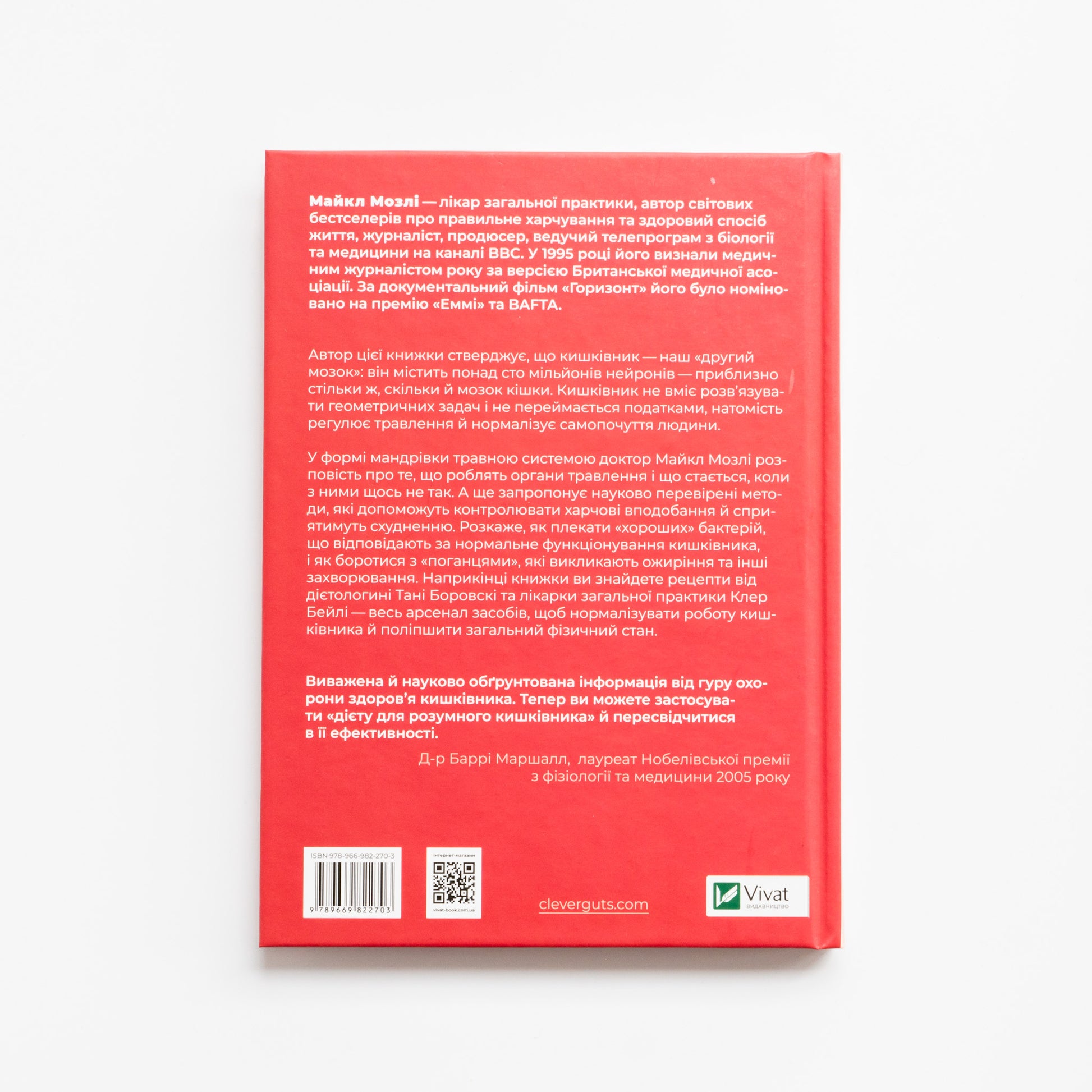 Автор цієї книжки стверджує, що кишківник — наш «другий мозок»: він містить понад сто мільйонів нейронів — приблизно стільки ж, скільки й мозок кішки. Кишківник не вміє розв’язувати геометричних задач і не переймається податками, натомість регулює травлення й нормалізує самопочуття людини. У формі мандрівки травною системою доктор Майкл Мозлі розповість про те, що роблять органи травлення і що стається, коли з ними щось не так. А ще запропонує науково перевірені методи, які допоможуть контролювати харчові вподобання й сприятимуть схудненню. Розкаже, як плекати «хороших» бактерій, що відповідають за нормальне функціонування кишківника, і як боротися з «поганцями», які викликають ожиріння та інші захворювання. Наприкінці книжки ви знайдете рецепти від дієтологині Тані Боровскі та лікарки загальної практики Клер Бейлі — весь арсенал засобів, щоб нормалізувати роботу кишківника й поліпшити загальний фізичний стан.