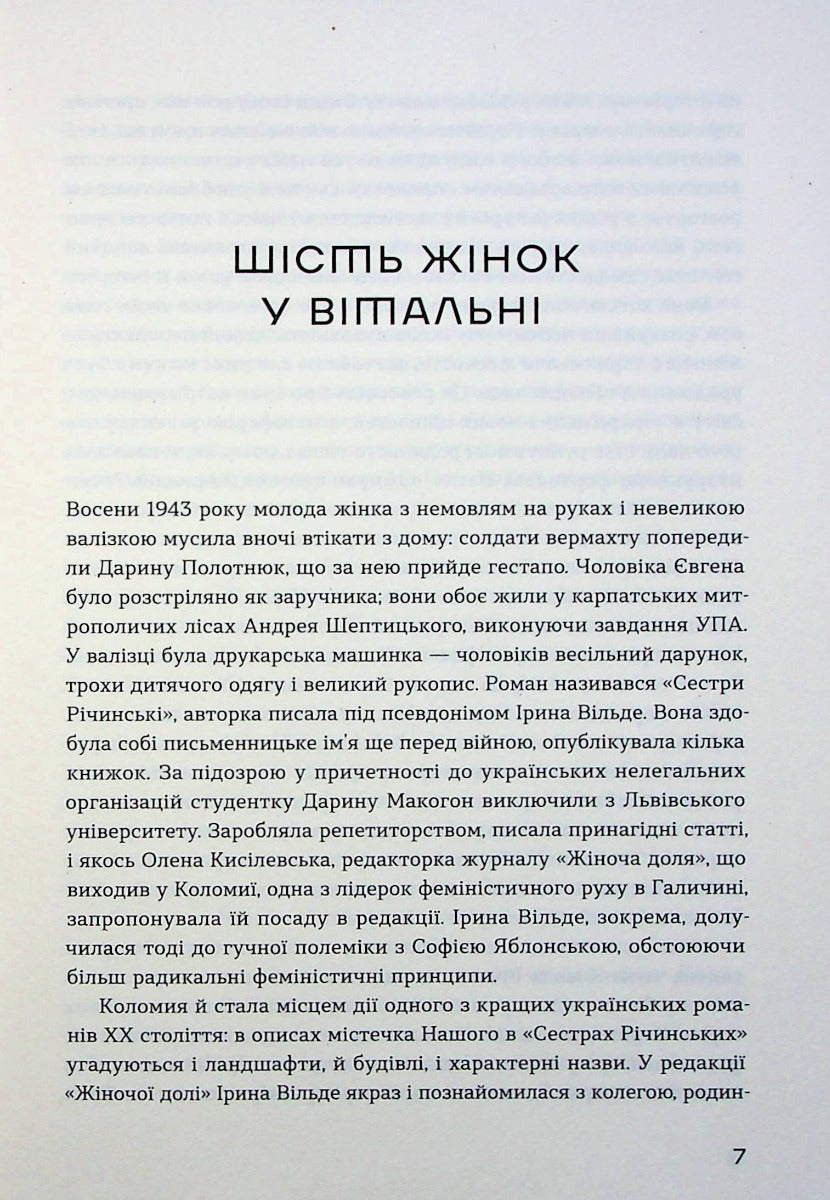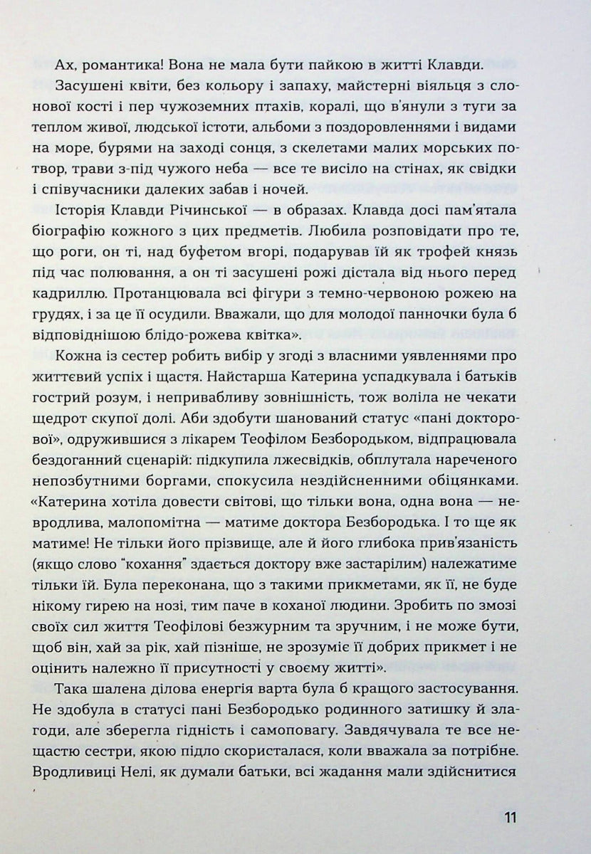 Роман «Сестри Річинські» — це історичний зріз першої половини ХХ століття, показаний очима жінок, які більше не хочуть жити в патріархальному світі й виходять з тісного домашнього простору в широкий світ.