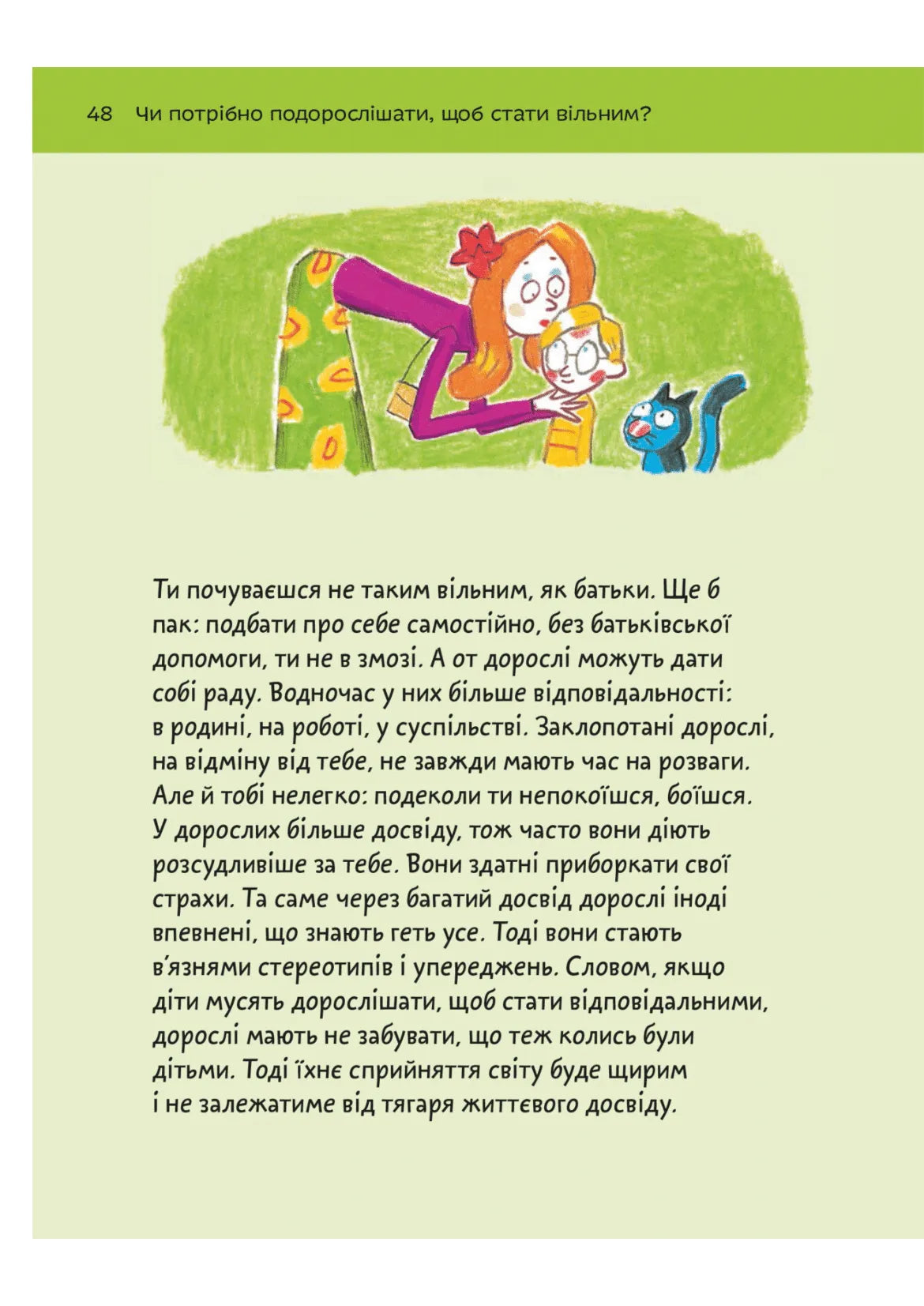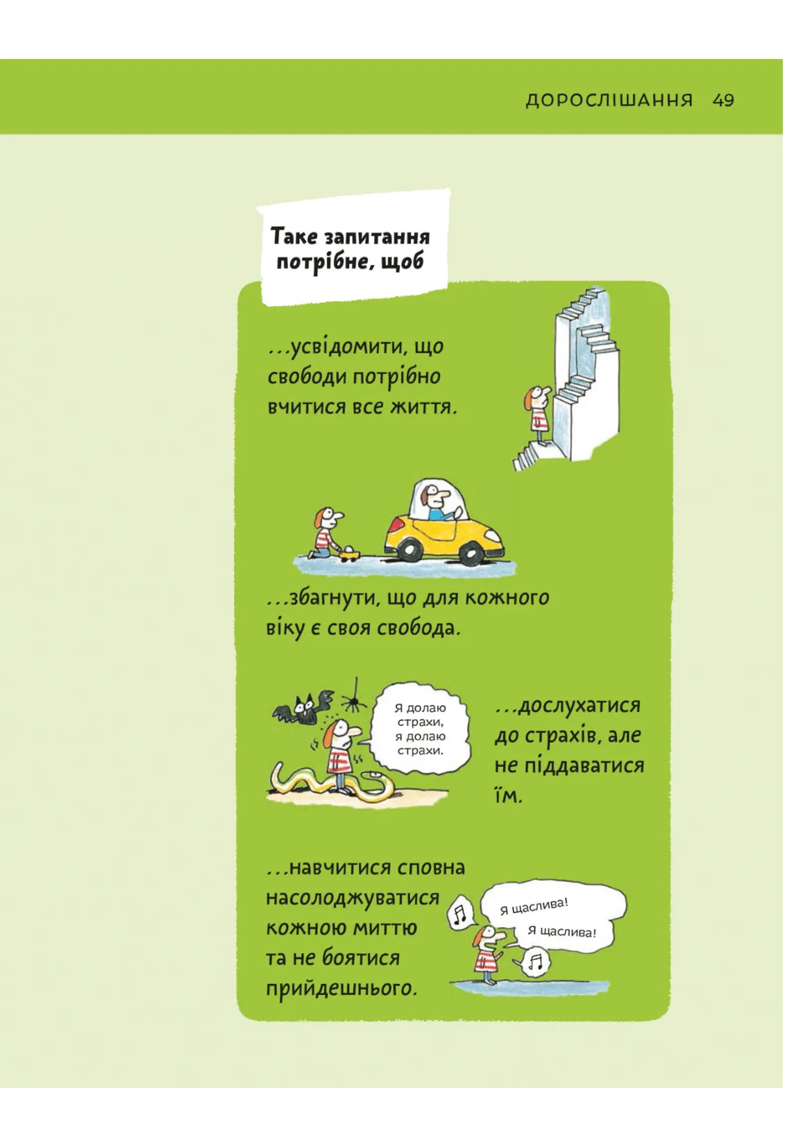 Чи можна робити все, що заманеться? Ні, наприклад, з’їсти за раз кілограм цукерок точно не можна. Та якщо я точно знаю, чого хочу, і мені стане сили й сміливості, то можна зробити будь-що! Але хіба не помиляємося ми іноді, навіть коли певні у своїй правоті? Усі прагнуть свободи, але не кожен до кінця розуміє, що це таке.Книжка французького філософа-практика Оскара Бреніф’є допоможе батькам і дітям поговорити про свободу й обмеження так, щоб кожен почувався вільним у своєму виборі.
