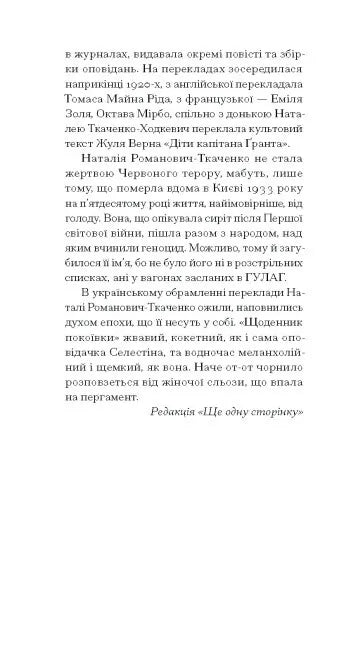 Завдяки роману «Щоденник покоївки» Октав Мірбо здобув славу майстра епатажу. Головна героїня, покоївка Селестіна викриває брудні реалії життя французьких вельмож кінця ХІХ століття. Вона прислуговує панам ледь не з дитинства, а отже, знає безліч чужих таємниць. І хоч цей роман називають скандальним та еротичним, сторінки його пронизані глибокими роздумами наймички, страхами жінки, почуттями чесної з собою людини. Селестіна не стоїть осторонь бурхливого цинічного життя, про яке пише в щоденнику, — вона вільно пливе його водами, намагаючись не розчинитися.