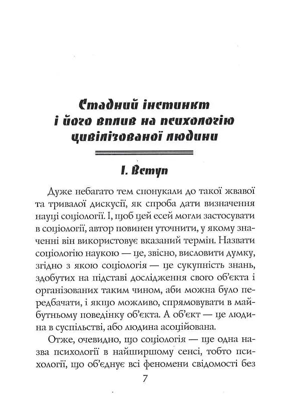 Видання знайомить читача з книгою Вілфреда Баттена Льюїса Троттера (1872–1939) — англійського хірурга, зачинателя нейрохірургії, опублікованої в 1916 році. Вона ґрунтується на ідеях Ґюстава Лебона і мала великий вплив на розвиток групової динаміки та психології натовпу.Автор вводить концепцію «стадного інстинкту» стосовно людської поведінки та досліджує фундаментальну важливість стадності як серед тварин, так і серед людей, а також описує, як інстинкти впливають на прийняття рішень і соціальну взаємодію.Книга закладає основу для поглибленої дискусії про значення стадного інстинкту у формуванні індивідуальної поведінки та національної моралі. Троттер стверджує, що індивідуальні дії часто керуються силами соціальної згуртованості та колективних настроїв, які необхідно розуміти, щоб орієнтуватися в складнощах управління, особливо під час війни.