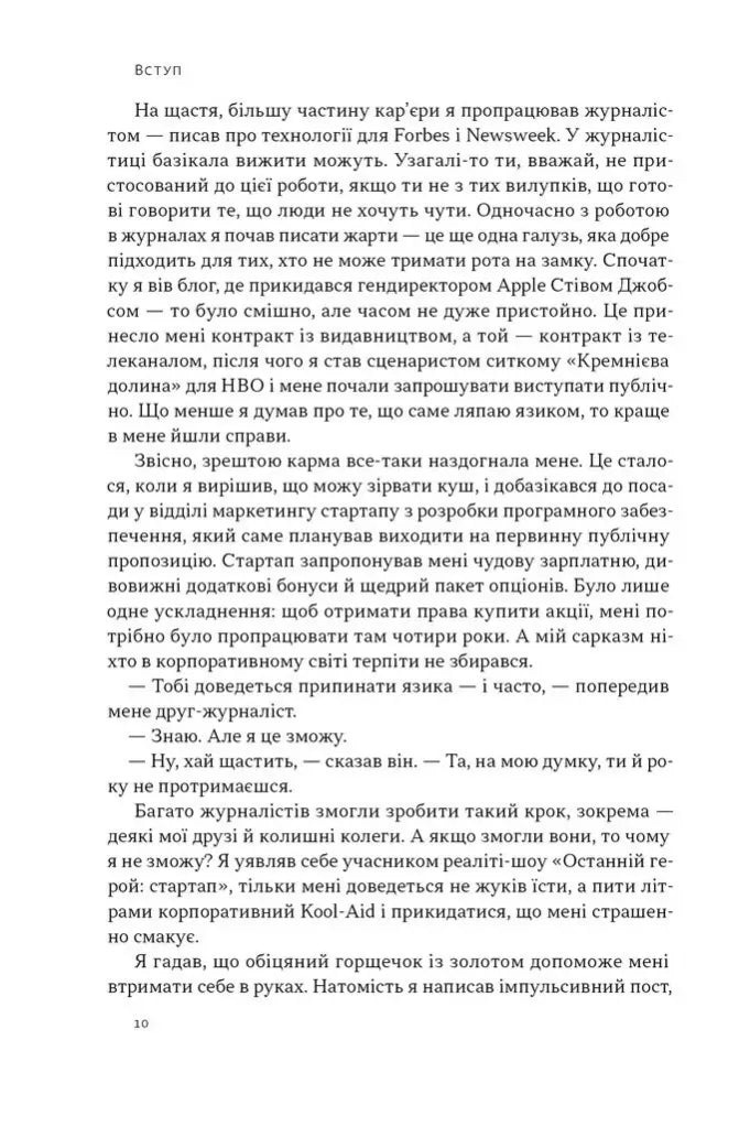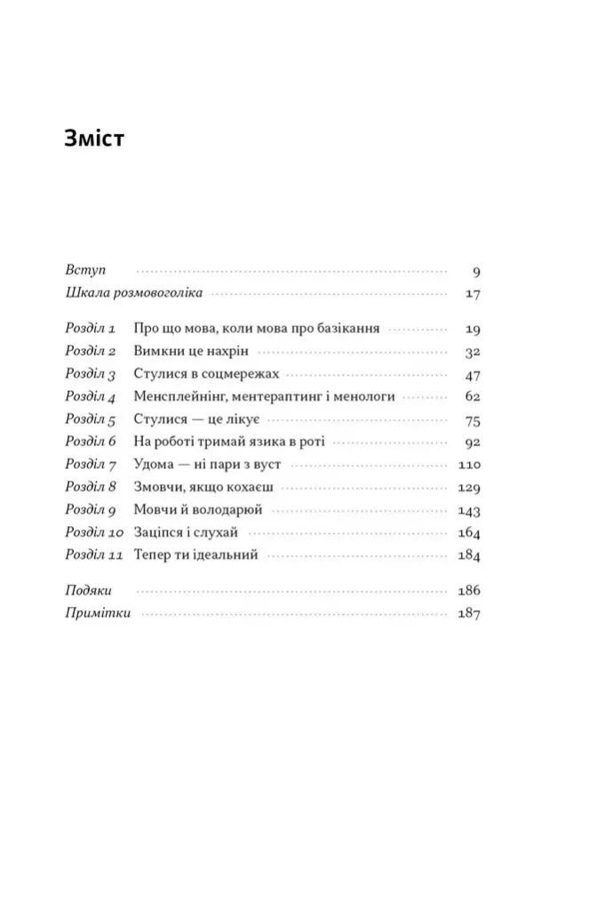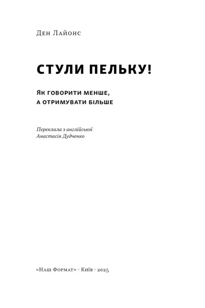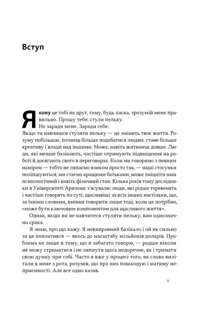 Світ заохочує нас говорити більше, голосніше, частіше. Нас привчають думати, що перемагають ті, за ким останнє слово. Згадайте, скільки часу та нервів ми витрачаємо, коли «в інтернеті хтось неправий». А що, як секрет успіху — в умінні змовчати? Ден Лайонс ділиться своїм досвідом і дослідженнями провідних експертів з комунікацій, нейробіологів, соціальних психологів, психіатрів та босів компаній Кремнієвої долини. Усе це — щоб переконливо довести: контроль над словами — сила. З гумором і спостережливістю він аналізує феномен надмірного базікання та навязливої потреби висловлюватися з приводу й без нього. Чому Байден виграв вибори, коли навчився припинати язика? Чому соцмережі перетворилися на «монологи Гамлета на метамфетаміні»? Як ви можете змінити вашу кар’єру, стосунки й добробут, опанувавши навичку «ні пари з вуст»? У цій книжці ви знайдете відповіді, як використовувати слова свідомо — і стати спокійнішими, продуктивнішими та впливовішими.