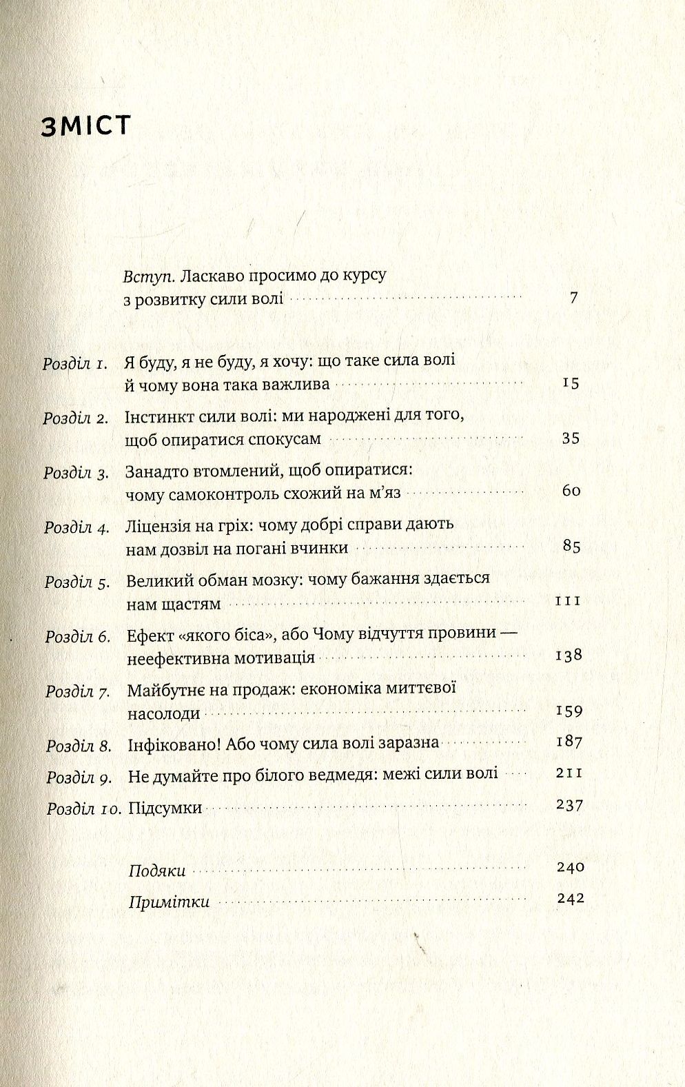 Мова, література, математика, фізика, хімія. А що було б, якби у школах та університетах нас вчили розвивати силу волі? Наскільки успішнішими ми могли б стати? Келлі Макґоніґал допомогла тисячам людей змінитися: кинути пити чи курити, пробігти марафон, зайнятися спортом, створити власний бізнес, налагодити стосунки в сім’ї тощо. Свою методику вона узагальнила в цій книжці.